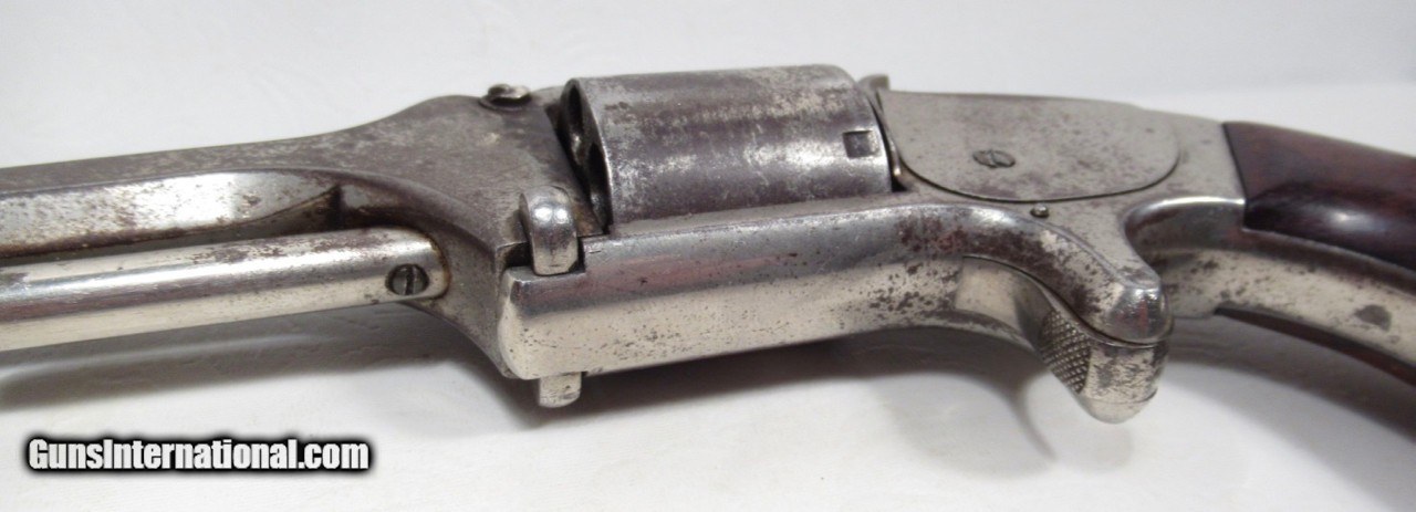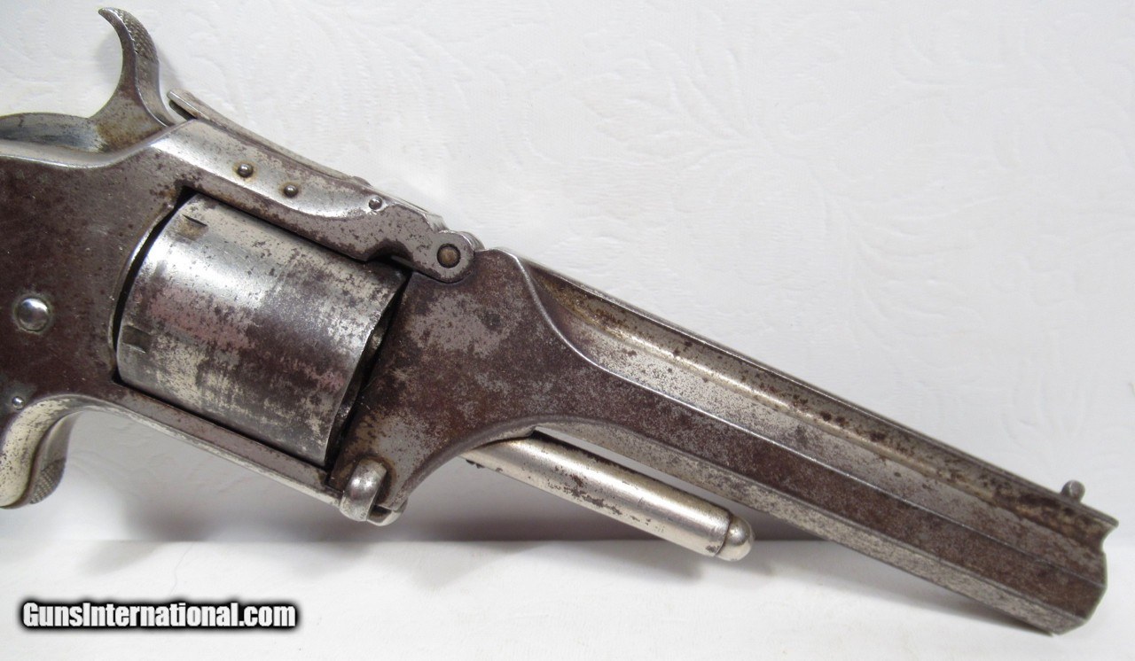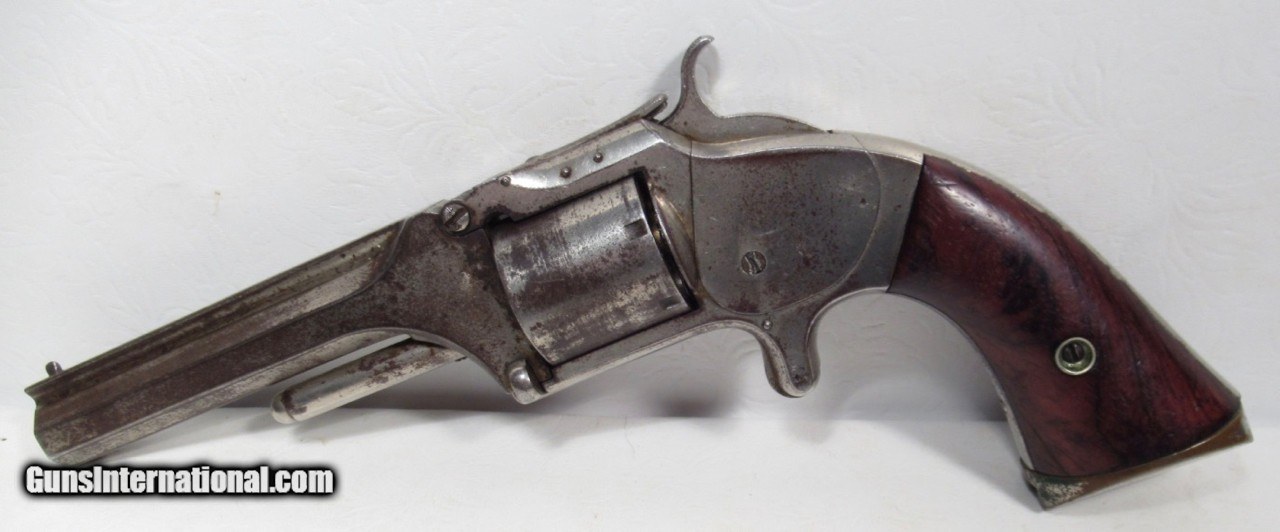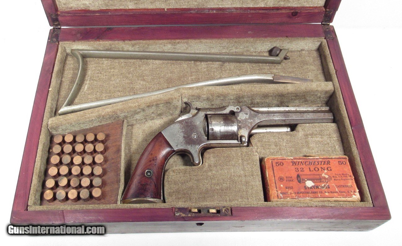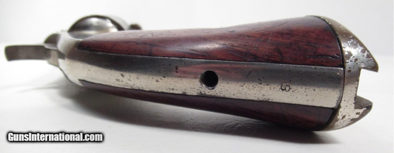 Description: Model Number Two Old Army Revolver AKA No.2 Old Army; Serial No. 73727; 32 R.F. Caliber With 4 ½” Barrel; Ultra Rare Cased With Shoulder Stock; 42 Original Winchester 32 Long Rim Fire Cartridges Included; Gun Shows Heavy Use and Appears to be Original Nickel Plated; Nice Original Grips; Good Action and Very Strong Bore with light to moderated frosting; NICE OLD Original Case – Very Rare; See All Photos for Condition; No Texts; Call (254)541-5765 or Email Only (collectingtexashotmail); PERSONAL PROPERTY of Harold Wieser; Price: $4,975 + $45 S&H Via USPS PRIORITY MAIL; Payment Address: Harold Wieser - 1466 U.S. Hwy 77 - Rosebud, TX 76570; SEND PAYMENTS VIA USPS PRIORITY MAIL; SOLD Antique: Yes Manufacturer: Smith & Wesson Model: No.2 Old Army Serial Number: 73727 |