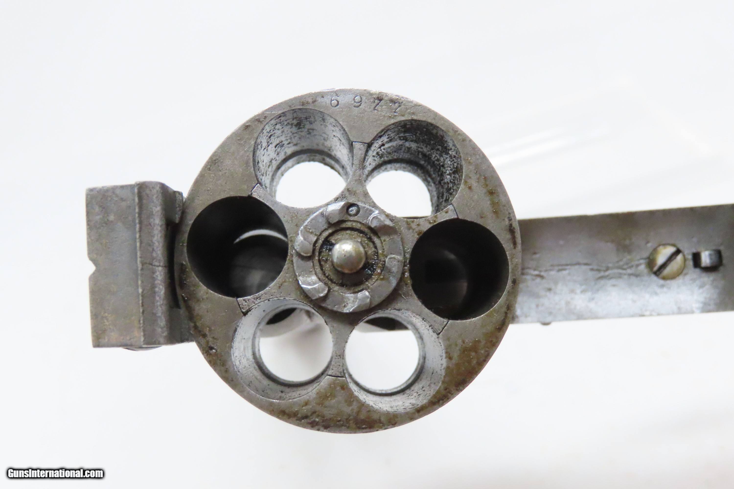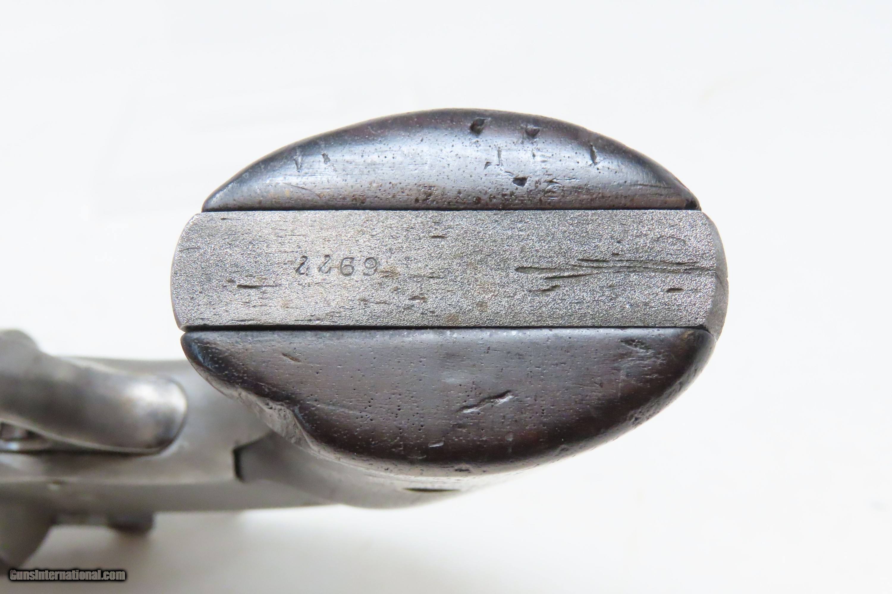 Description: RARE CIVILIAN Antique SMITH & WESSON 2nd Model SCHOFIELD Revolver 1 of Only 650 Made for the Commercial Market! Here we present an antique Smith & Wesson Second Model Civilian Schofield Single Action Revolver, manufactured circa 1877 in Springfield, Massachusetts. Approximately 650 revolvers were produced that did not pass US Ordnance inspection for a government contract out of a total of 5,934 Second Model Schofield’s manufactured. 1870 was the year the American government began pursuing metallic cartridge firearms with gusto and along with some single shot Remington Rolling Block pistols, metallic cartridge conversions of Remington’s New Model Army, and S&W’s Model No. 3. As Smith & Wesson owned the rights to the Rollin White Patent for bored through cylinder chambers, competition was naturally squashed on the concept until it expired in 1869. These guns were all issued and tested. The S&W gained an advocate in Major George W. Schofield, an officer in the 10th US Cavalry, which was one of the famed “Buffalo Soldiers” regiments. He found the revolvers to be promising and patented some improvements, the biggest of which was the frame-mounted latch that made it easier for the user to open the gun with the main hand keeping a master grip, whereupon the automatic ejector would empty the cylinder chambers and the revolver could be reloaded. This was particularly valuable to a horseman. He did what he could to influence the Army’s decision (likely including nepotism as his older brother General John McAllister Schofield was the head of the Army Ordnance Board at that time) to adopt these “Schofield” revolvers, as they came to be known, and the Army did purchase them in limited numbers. However, the Colt was seen as a bit simpler and more robust and in 1873 it was adopted and issued en masse. Many Schofield revolvers were issued to the 4th Cavalry which saw service in the Geronimo Campaign, along with the famous 9th and 10th U.S. Cavalry comprised of the “Buffalo Soldiers” stationed in the American Southwest. People such as the James Brothers, Cole Younger, U.S. Marshall Bill Tilghman and Chief Scout for Custer “Lonesome Charley” Reynolds were known to carry a Schofield revolver. After these left service in the Army many of them were acquired by the Wells Fargo Express Company and issued to their employees to combat bandits and the like. The overall condition is good. The action is strong. The bore is in good condition with nice rifling. The numbers match. The grips show use and the right panel has a chip; otherwise solid. A nice piece! Own the original! This is a legitimate antique and not a reproduction. Barrel is 7 inches. Caliber: .45 Schofield (also known as .45 S&W) Overall condition as seen in photos. Very Fast. Very Safe. FREE SHIPPING WORLDWIDE. Delivered directly to your door by express mail! Guaranteed AUTHENTIC & Includes CERTIFICATE OF AUTHENTICITY. ancestryguns #233323 SOLD Antique: Yes |