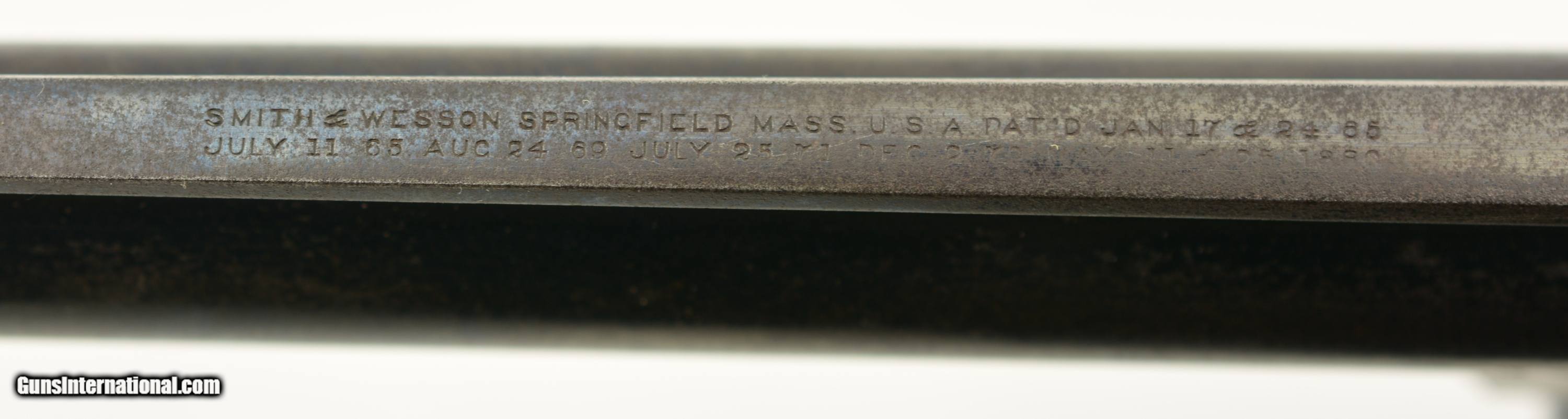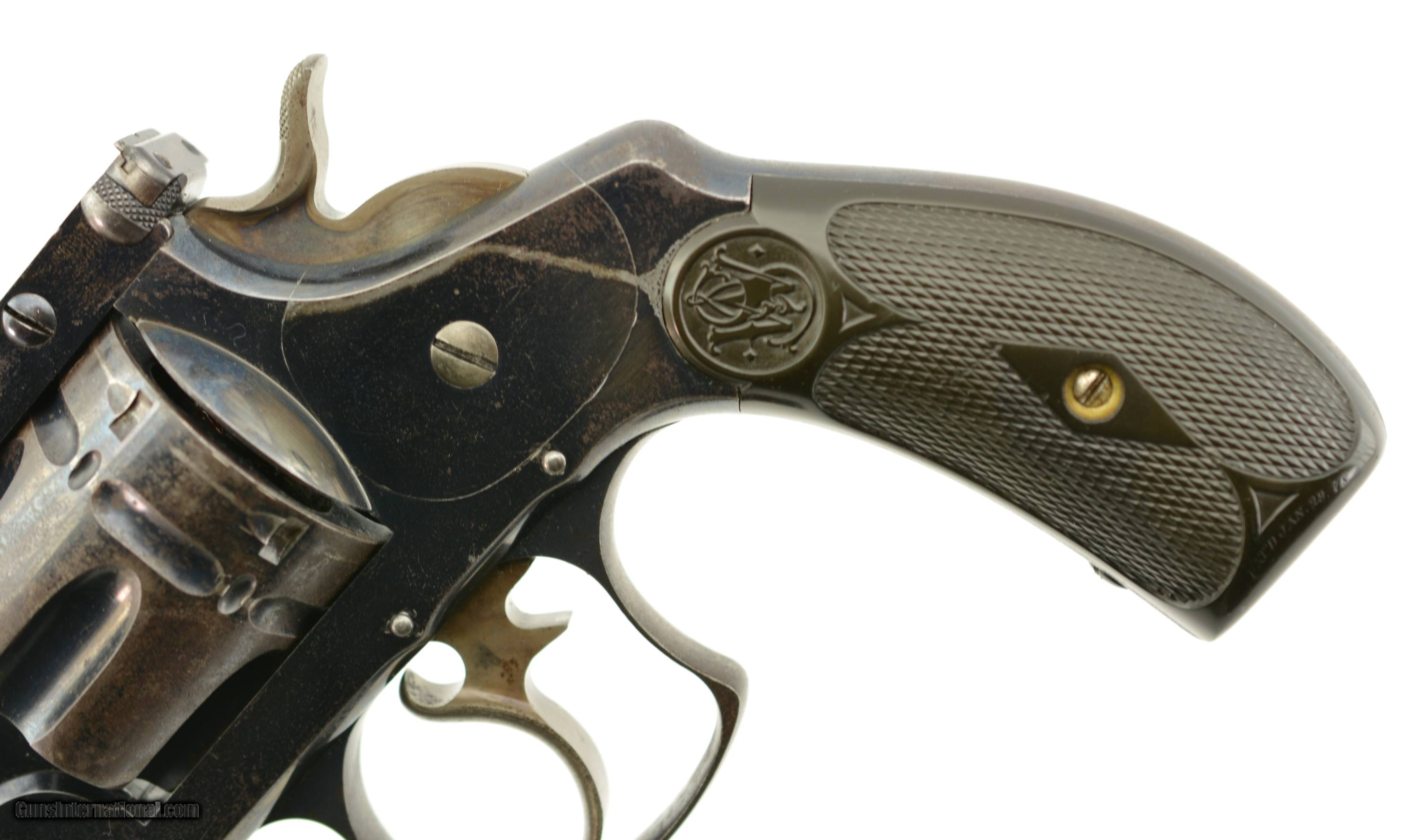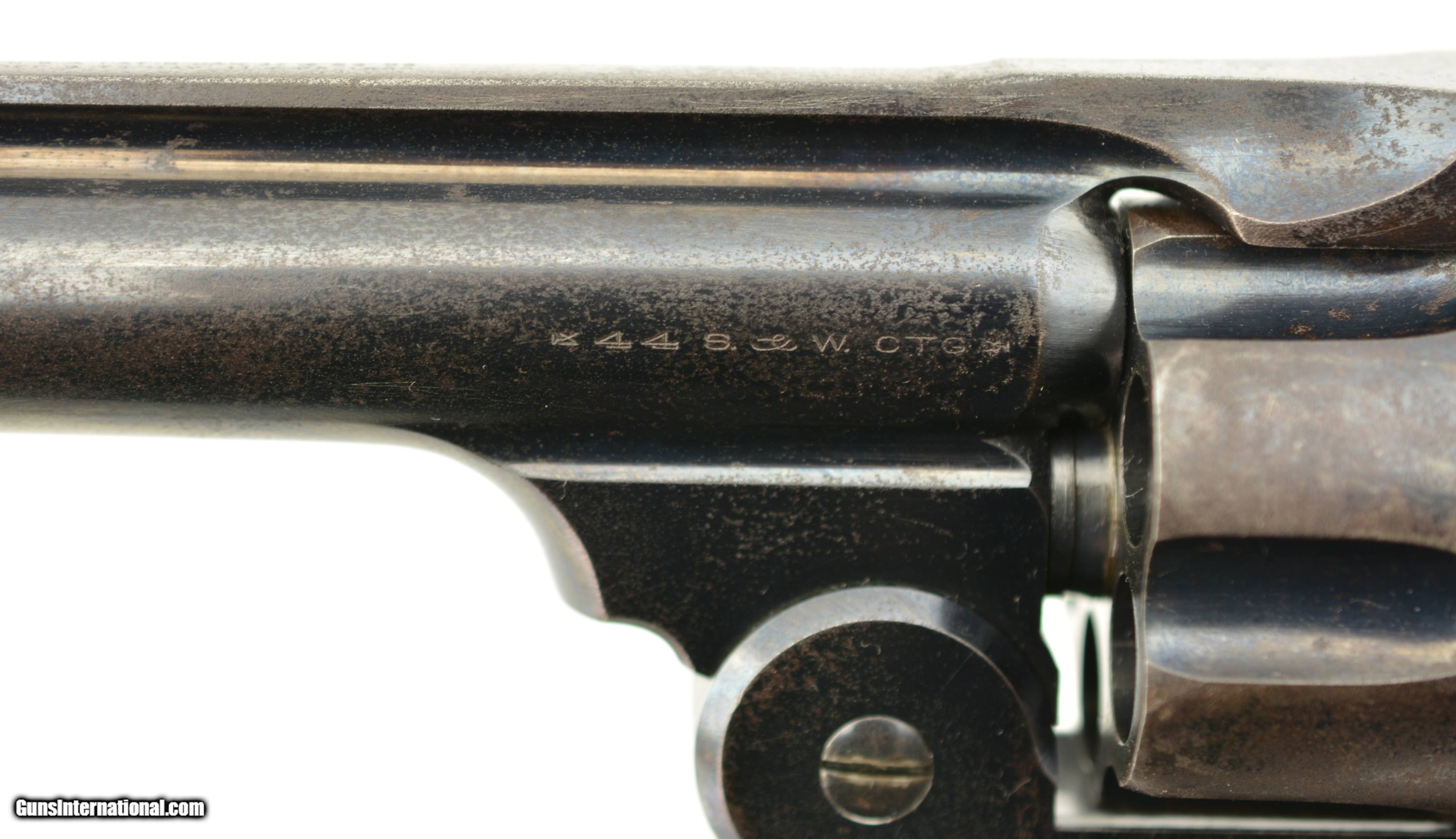 Description: Serial #44341, .44 Russian, 6 1/2" barrel with an excellent, bright bore. This is a good looking revolver that has matching numbers on the frame, barrel, and cylinder. The metal has retained 70-75% of the original blue finish with the balanced aged to a mellow plum-brown patina, and some silvering along the high and exposed edges. The hammer and trigger retain about 30-40% of the original color case-hardening with the balance worn bright, and the checkered hard rubber grips, numbered to the gun on the interior, are in excellent condition with only minor wear and trace flattening of the points. The original target sights are still in place, barrel lock-up is still tight, and the revolver is fully functional in both single and double-action. Furthermore, the revolver is accompanied by a 2020 dated S&W factory letter that lists a shipping date of October 17, 1902, to Schoverling, Daly & Gale Co., New York, NY. This is a desirable top-break S&W DA target model, and is in fine-near excellent condition. Antique SOLD Antique: Yes Manufacturer: S&W Model: 44 DA Serial Number: 44341 Caliber Info: .44 Russian Gauge Info: .44 Russian |
