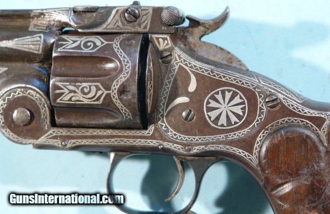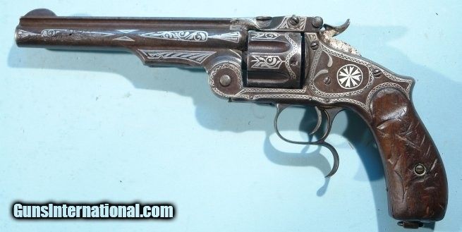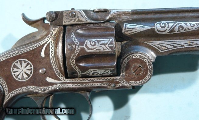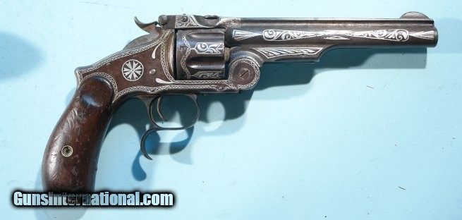 RARE SMITH & WESSON NEW MODEL NO. 3 RUSSIAN SILVER NIELLO INLAID .44 CAL. REVOLVER CA. 1877.