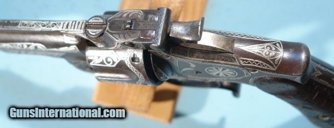 Description: RARE SMITH & WESSON NEW MODEL NO. 3 RUSSIAN SILVER NIELLO INLAID .44 CAL. REVOLVER CA. 1877. .44 Russian caliber with 6 ½” barrel with Cyrillic barrel address. Inlaid in the manner of arms decorated in the Ottoman Balkans and Turkey but found in Turkey in the 1960’s. All original and complete in working order except not safe to fire because of small hairline split on the left side of the barrel 1 ½” from the muzzle which is barely noticeable. Working order. Rare and from the period of the Russo-Turkish wars. SOLD Antique: Yes Handgun Caliber: .44 S&W Russian |