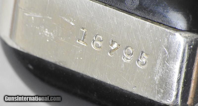 Description: This is serial number 18798 and was made after 1881. The mechanical function is very good crisp and tight. The bore is nice bright and shiny with slight traces of old corrosion. It is all matching serial numbers and the grip checkering is sharp. I would consider trades for pre 1899 ANTIQUE PISTOLS and rifles on any of my items.. WHAT DO YOU HAVE TO TRADE? Ask about our 30-90 day lay-away program. We accept Bank Check, Money order, Personal checks or wire transfer. SOLD Antique: Yes Manufacturer: Smith & Wesson Model: Single Action Second Model Revolver Serial Number: 18798 |