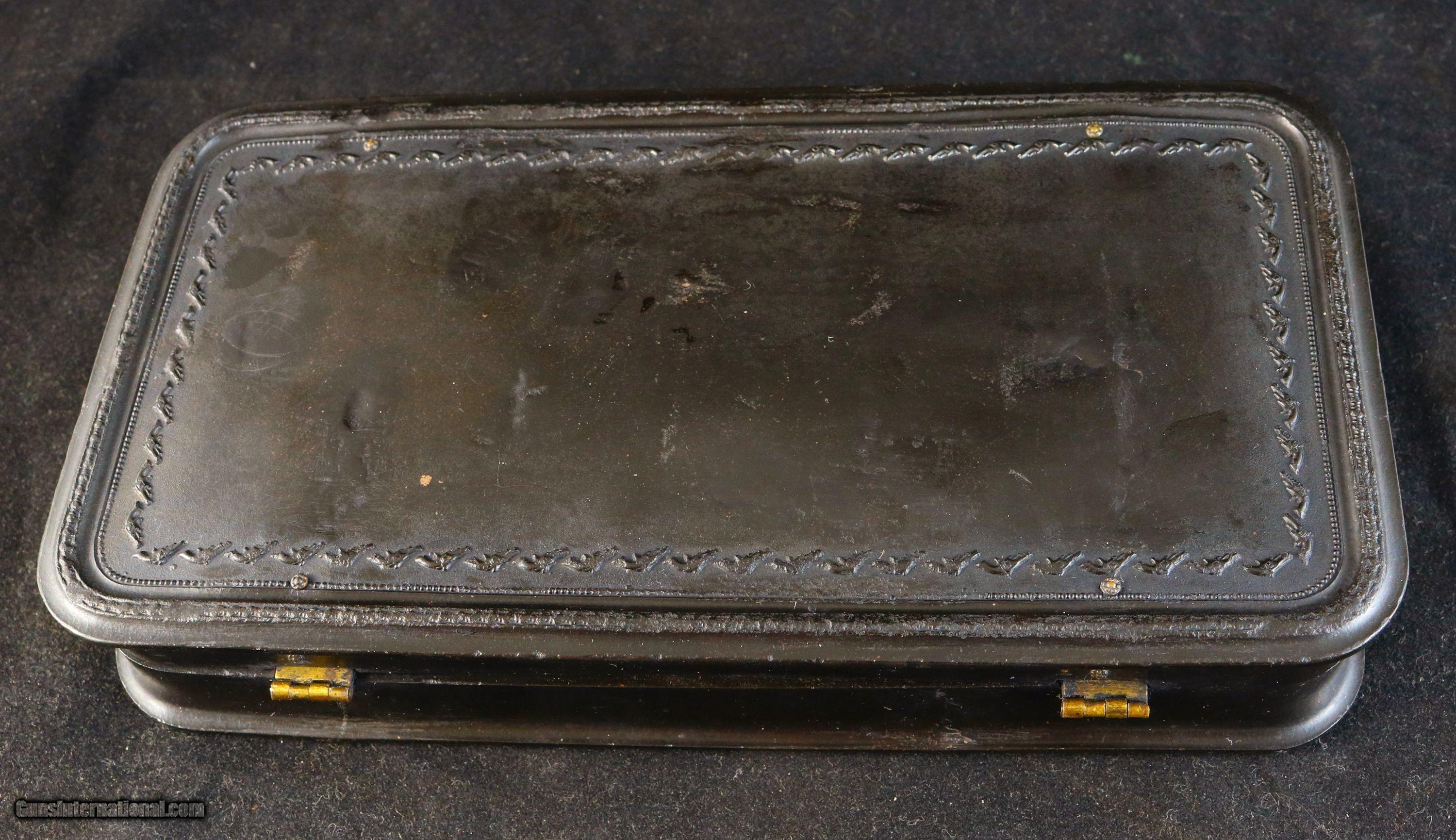 Description: Smith & Wesson MODEL No.1 2ND ISSUE, with a Gutta-Percha Case. This Cased, tip-up .22 caliber rimfire is complete with an Original Gutta Percha "Flag Case". It's easy to become confused by the nearly identical model names of the 22's, the 32's, the 38 tip-ups and top-breaks. This is a Model No.1 2nd. issue... Both the revolver and the case are in nice condition. Very interesting and perfect for display. Check out this price. >>> $1450. SOLD Antique: Yes |