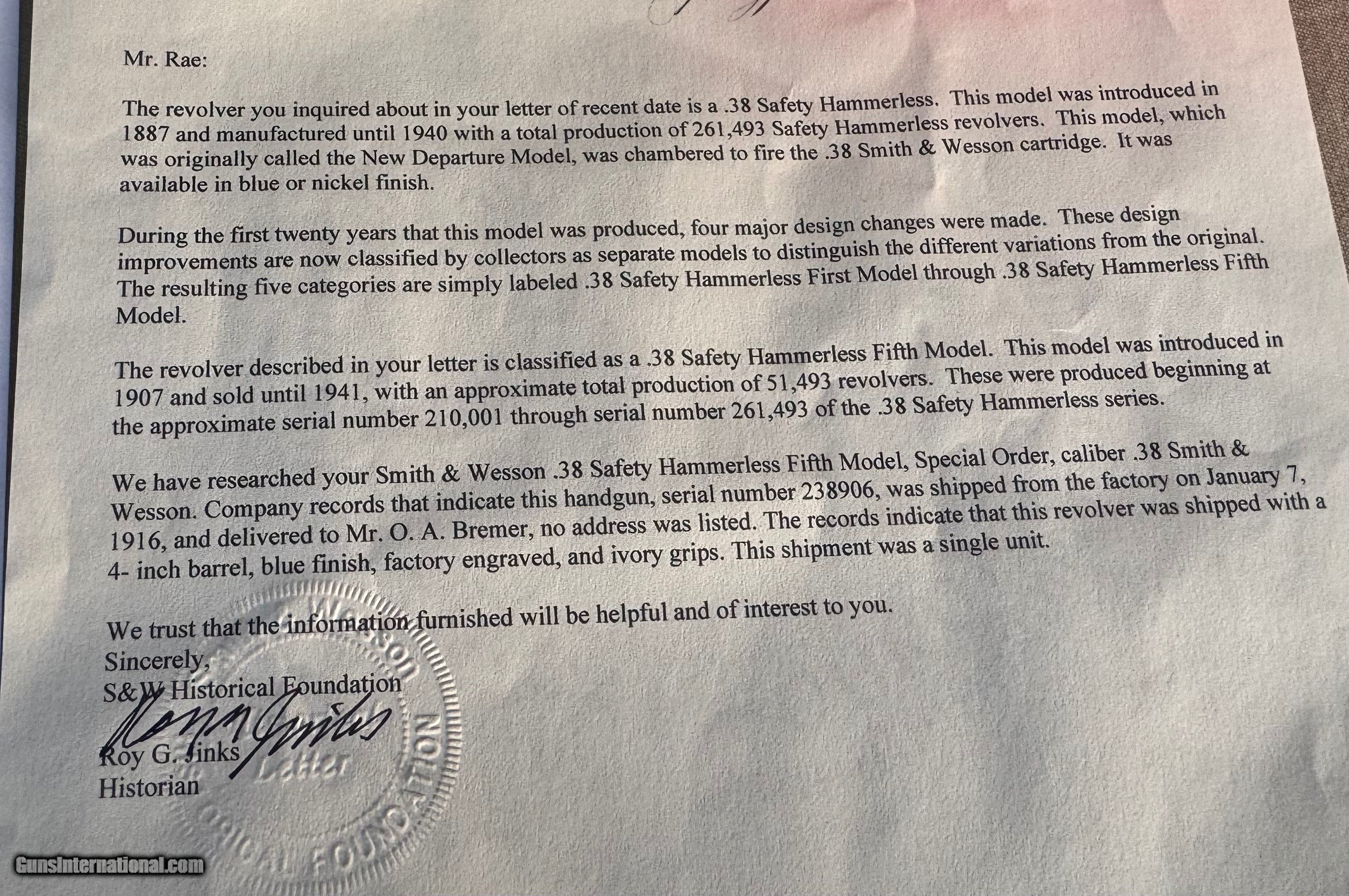 S&W “NEW 38 DEPARTURE” Factory Engraved w/ Box and Factory Letter