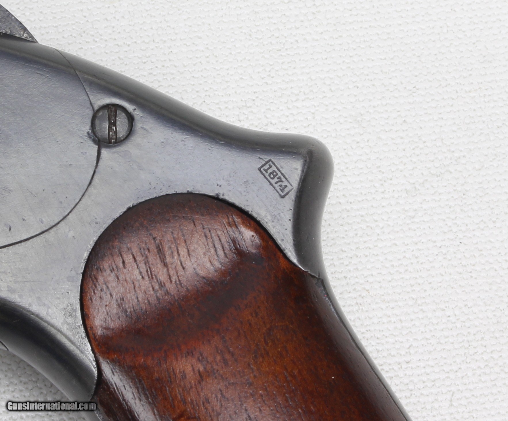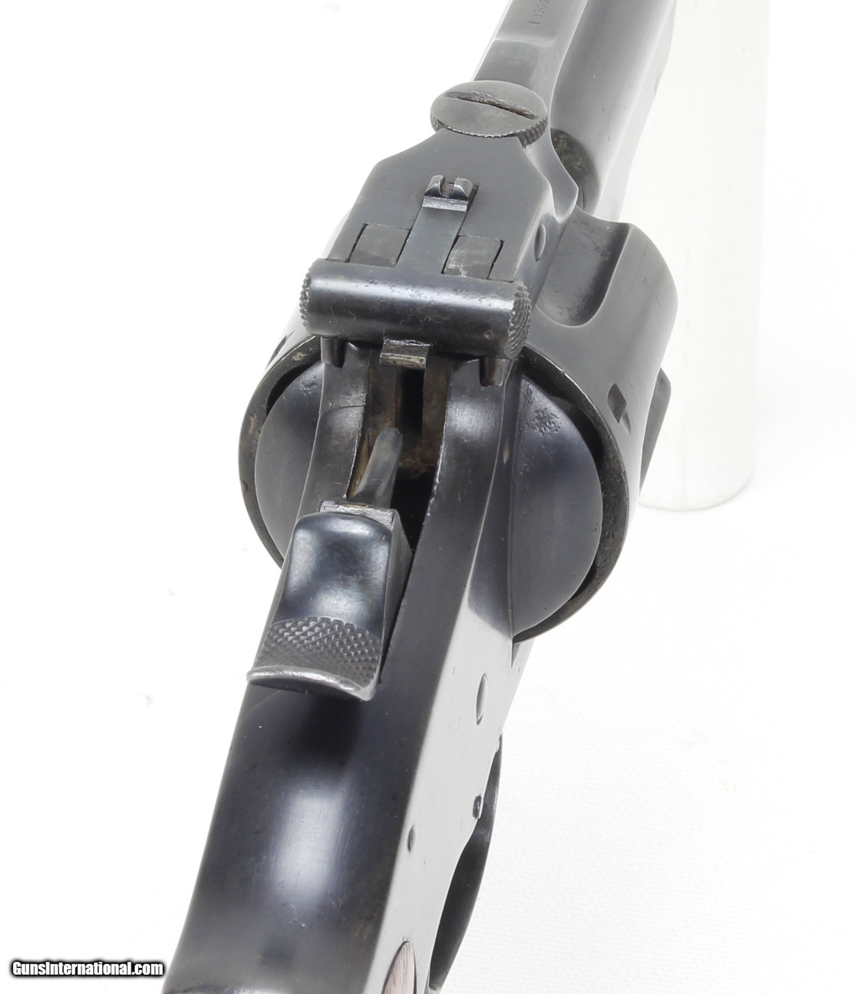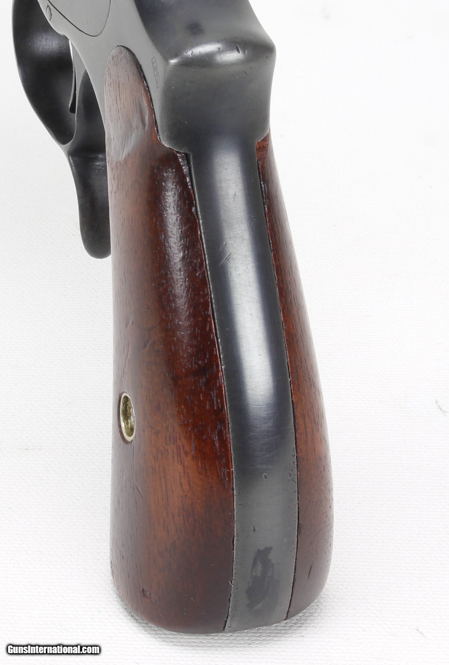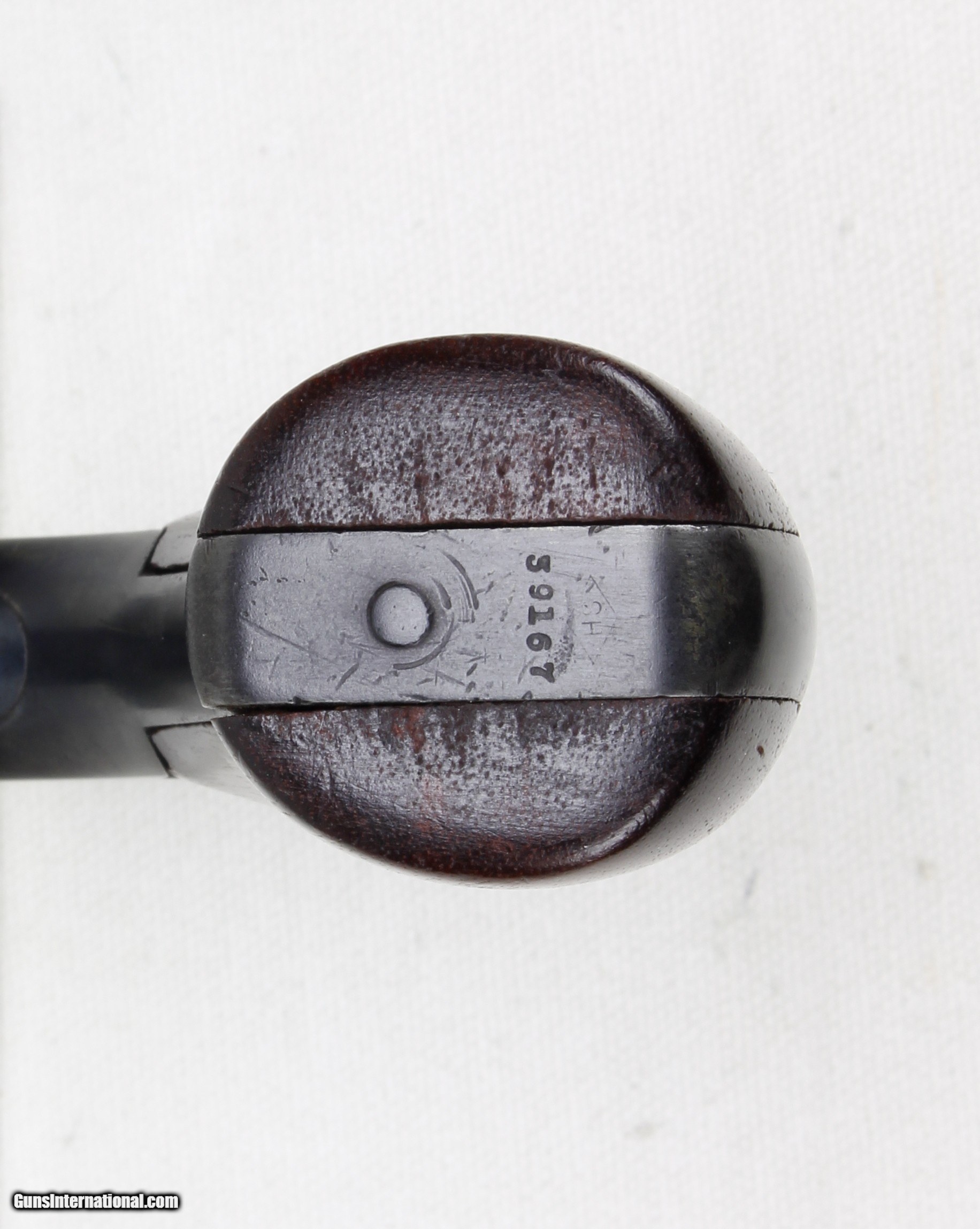 Description: S&W No. 3 Russian 3rd Model in .44 Russian. SN #39167. Mfg. 1874-1878. 6 1/2" barrel. Bore is very good for it's age. Metal has been re-blued. Wood grips are in very good condition. Commonly called "New Model Russian". Shorter extractor housing. Marked 1874 in a square box on left side over grip frame. The cylinders look to have been worked on at some point, maybe reamed and honed. This is an antique and requires no FFL to purchase. SOLD Curio/Relic: Yes Antique: Yes Manufacturer: Smith & Wesson Model: No.3 New Model Russian Serial Number: 39167 Caliber Info: .44 Russian Bore: VG Condition: VG Barrels: 6 1/2 Finish: Blue |