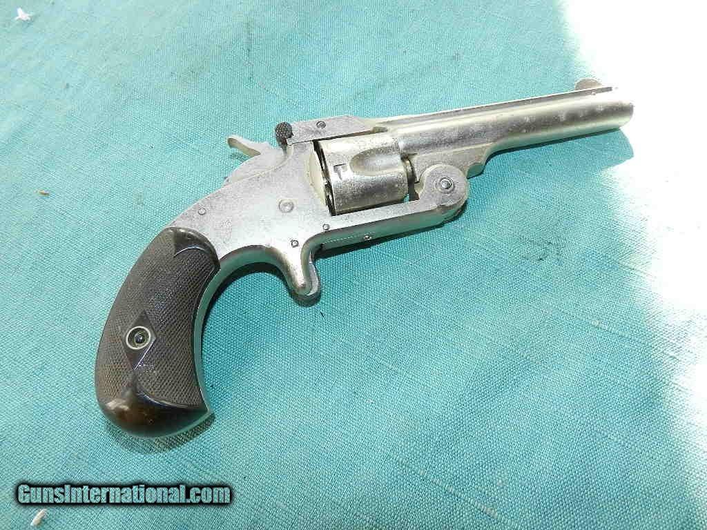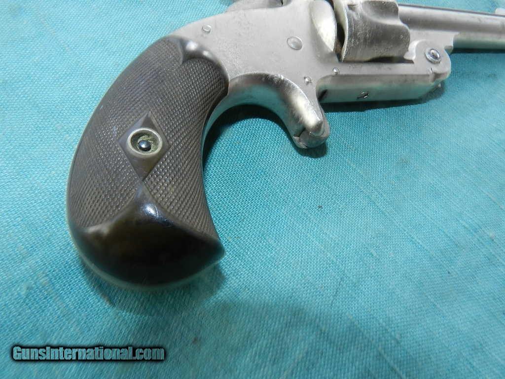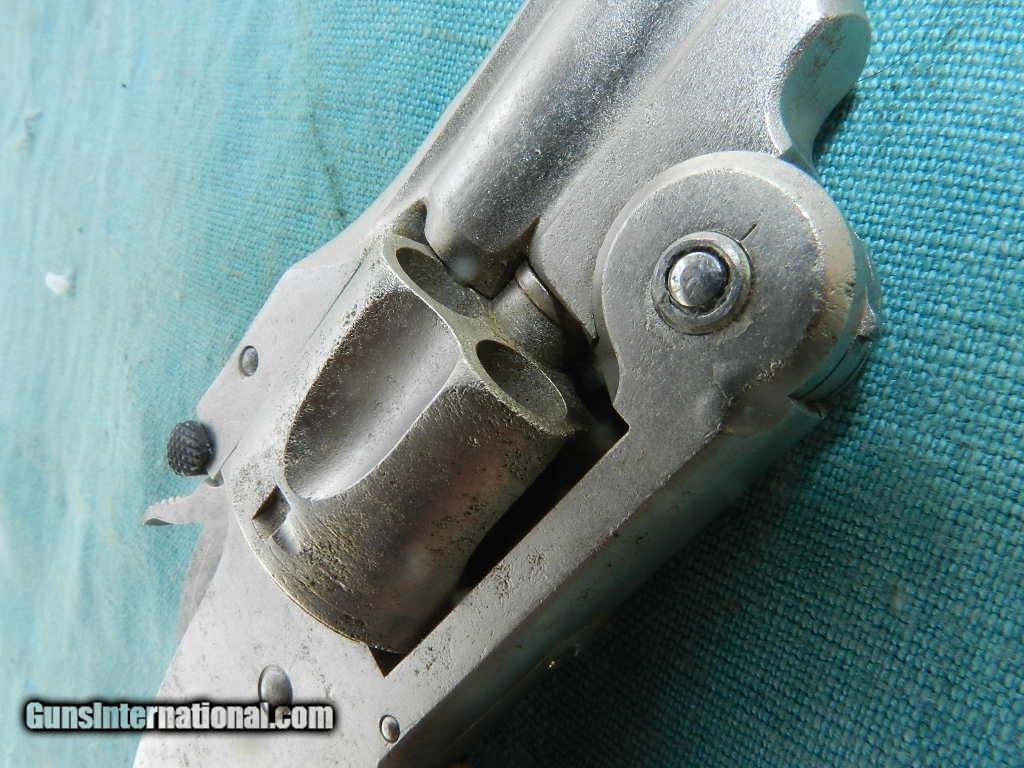 Description: A interesting S&W transition .32 spur trigger revolver with SN 529, exterior in soft nickle, and some pitting on the cylinder , posssilby refinish log ago? Very good later second issue black hard rubber grips, last paten date on the barrel is 1871! Good 3 1/4" barrel with rifling, but patches of corrosion and some areas of pits .Indexes good and lock up not sure. Gun functions good. Interesting model 1 1/2 transition model. Check my inventory of rare grips, unusual gun parts, barrels and holsters. Shipping may be higher than stated as shippers raise their prices twice year without notice! When buying a gun always have it examined by a competent gunsmith before shooting. To buy a gun from me you must get a direct email for me, with details, and shipping cost. We don’t have a web site .I prefer money orders or a check. Item ships when funds come in. If you can only pay with a card let me know. I try to keep guns affordable, which means I make less money than most dealers. You won’t get altitude sickness, or nose bleed, with my prices! I consistently have the best selection of older guns If you attempt to buy, you must still contact us for details . Best to email to buy. Sometimes a local person can stop buy and purchase before the gun is removed. Sometimes not home to get calls. Some guns are required shipment to a gun dealer near you for a transfer to you when it arrives. Otherwise many older or black powder guns ship to your door. With the widest selection of older guns at great prices, We don’t have a store, and sell on the internet only. I’m easy to get along with. Thank You. SOLD Antique: Yes |
