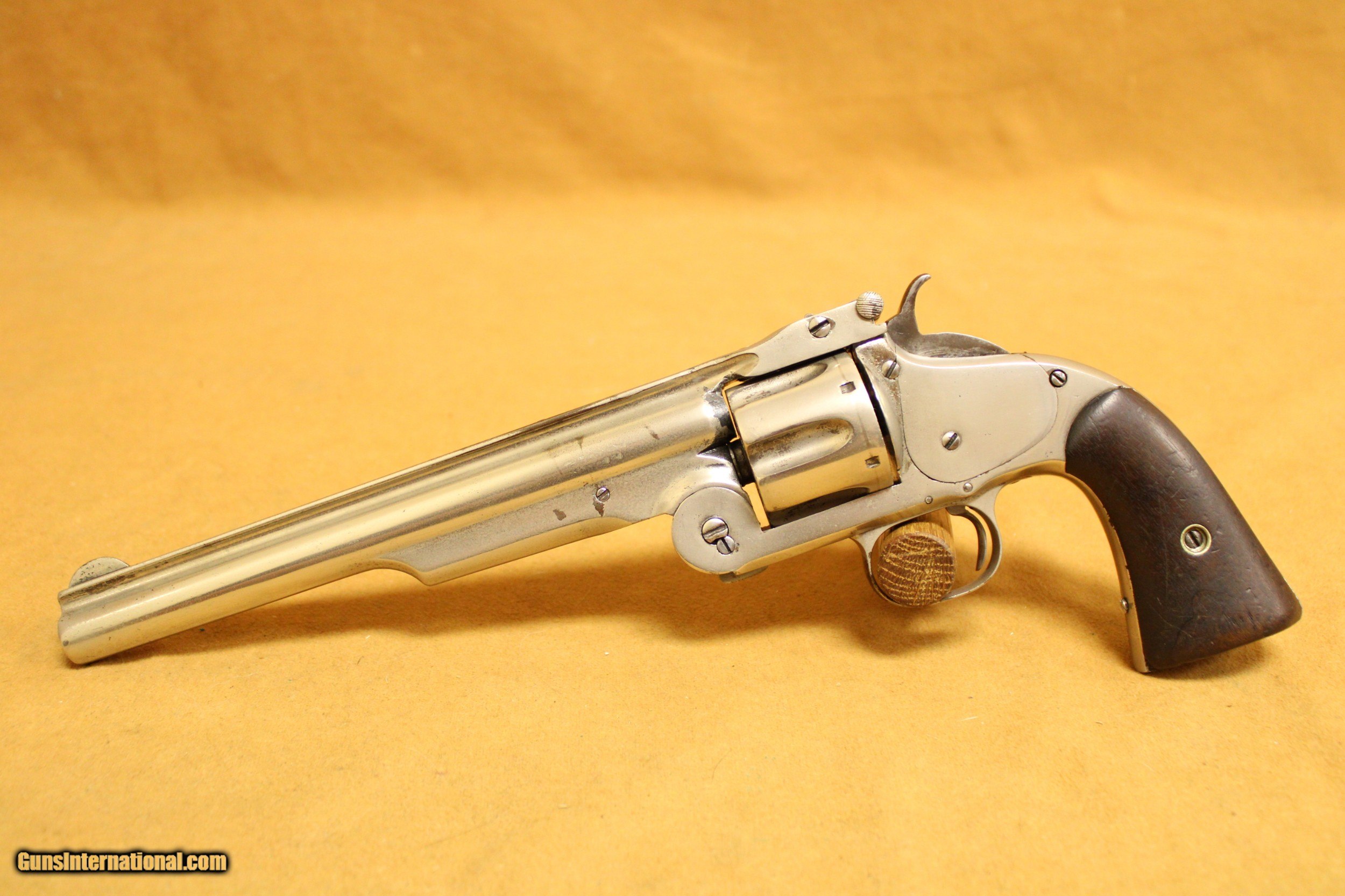 Description: This is a nice Smith & Wesson 2nd Model American revolver that was made in the early 1870's. This gun is in very fine condition with 80%+ of the old nickel intact. The barrel is 7” and appears to be original to the gun and has a great bore. The grips are wood, have an original finish, and are numbered to the frame. The cylinder and latch are matching. Overall this is a very good example and has a really great Old West appearance! All items are also available for sale in our brick & mortar store and are subject to prior sale. Think long, think wrong. Payment On firearms, we typically only accept credit cards or money orders/cashier's checks.