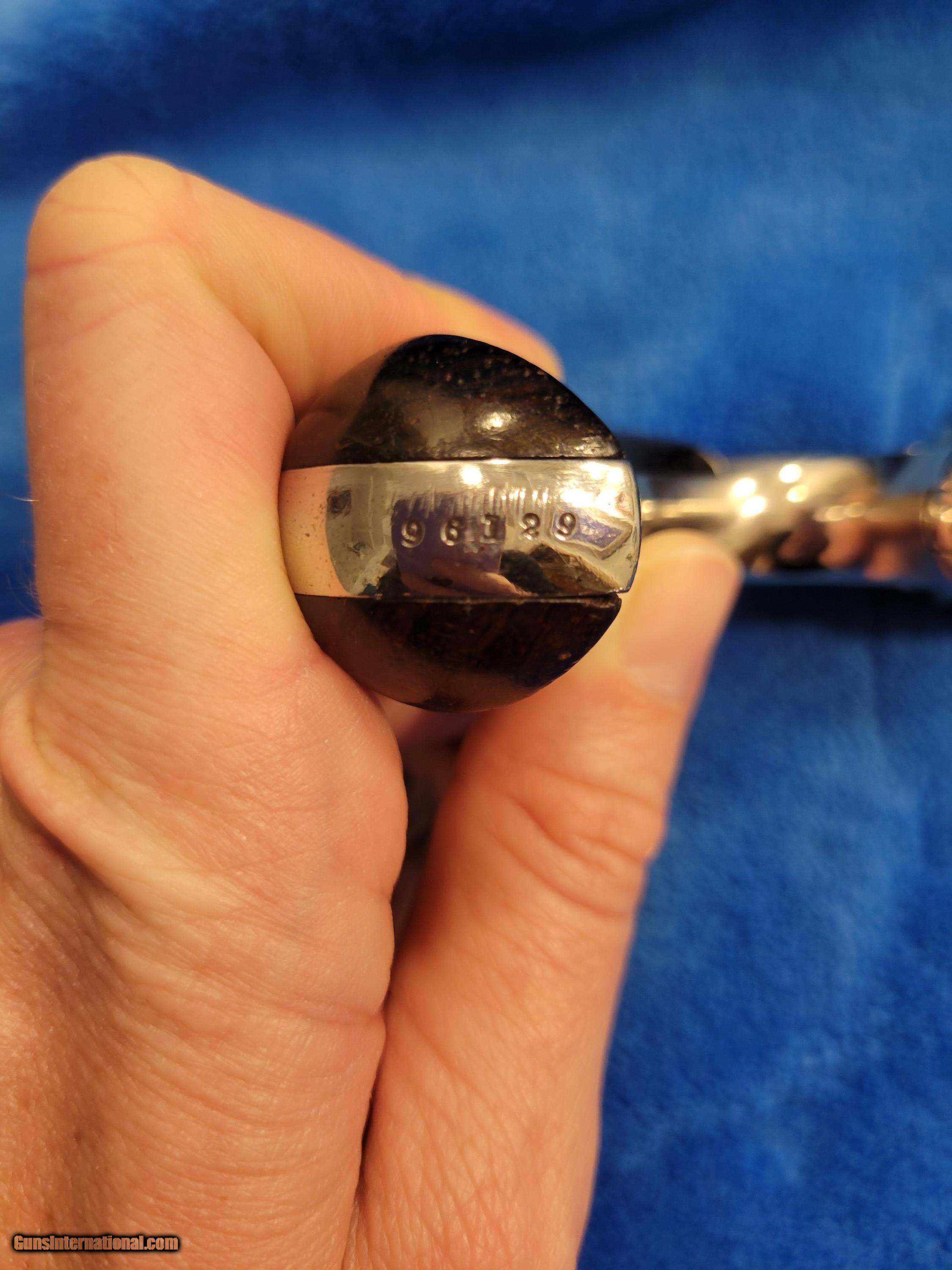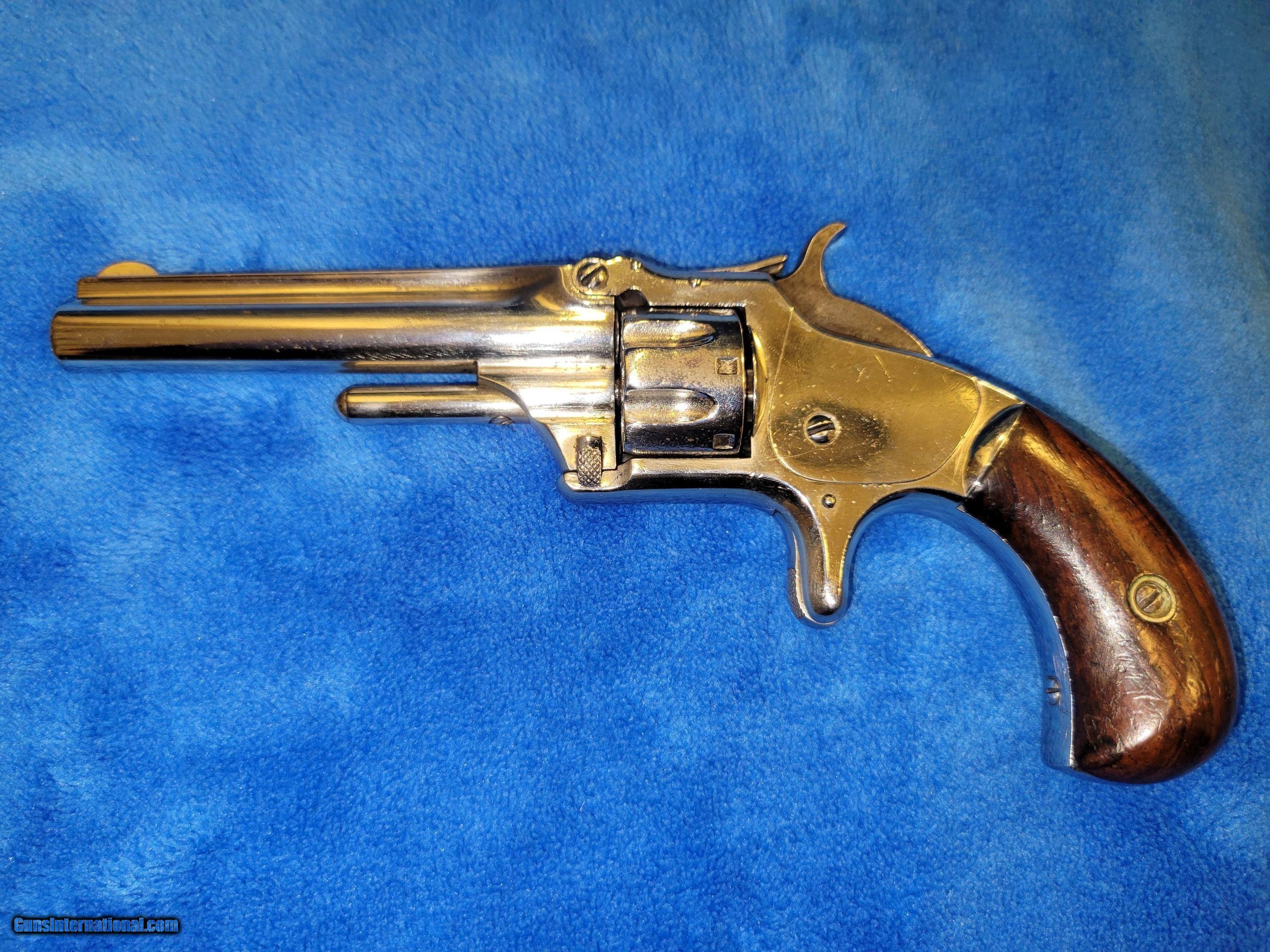 Description: This is a fine example of an antique first model 3rd issue smith.in near overall excellent condition. Approximately 98%+ Nickle finish . remaining on barrel and frame. Bore is bright and shiney with sharp lands and grooves. Original rosewood grips with serial number stamped inside on grip. Mechnically IT is perfect. comes with a brand new locking spring (needs to be installed).this is a little "Gem" of collectors quality, at a reasonable price. Liquidating some items due Health. Happy to answer any questions. Offers..accepted SOLD Antique: Yes |