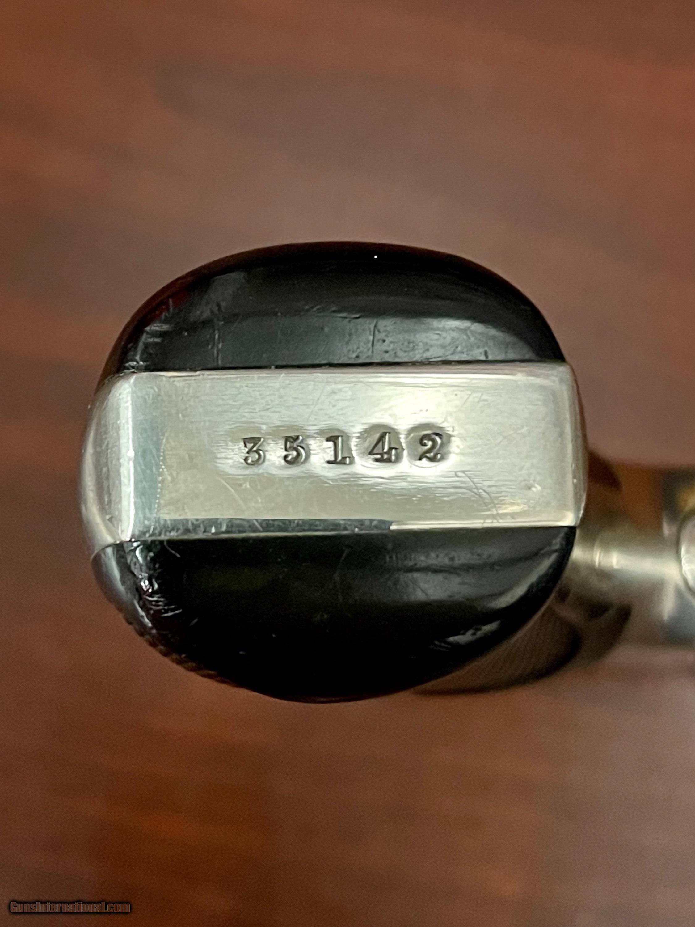 Description: Smith & Wesson DA First Model .44 S&W Russian Top Break Revolver, Nickel 6 1/2” Smith & Wesson’s .44 Double Action First Model revolver seems to be one of that company’s more neglected designs. It tends to be overlooked as it came between the vaunted No. 3 SA and various Hand Ejector Models. The primary chambering was .44 Russian, of which 53,590 were made between 1881 and 1913. Some 15,340 “Frontier” models were also produced, as was a .38-40 Win. Those guns were numbered in individual ranges and are basically considered separate models. All frames were made prior to 1899. Following the lines of smaller and slightly earlier S&W .32 and .38 top-breaks, the First Model DA incorporated an excellent self-cocking mechanism that was as good as many British and Continental designs. It was also head and shoulders above Colt’s more popular Model 1877 “Lightning” and Model 1878 “Frontier” models, a happenstance that must have been more than frustrating to the folks at Smith. Smith & Wesson’s First Model DA incorporated the company’s familiar curved grip frame, flanked by either hard rubber or checkered walnut stock panels. The revolver was available in blue and nickel-plated finishes, and barrels were 4, 5, 6, 6½ and 8 inches (rare) in length, with 5 inches being the most common. First Model DA .44s employed the usual S&W top-break ejection system. The revolver could be fired double- or single-action, though it had no safety position, and the hammer did not rebound after the trigger was released, resulting in a potentially dangerous setup if the gun were dropped. Standard sights on the First Model DA .44 were similar to those on the No. 3, a rounded, fixed-blade front and miniscule notch rear, milled out of the fore-part of the frame latch. Some guns were fitted with target sights, but they are not the norm and bring premium prices when encountered. Even though the .44 Double Action was not one of S&W’s most popular products, it still had a following. In fact, Texas gunfighter and all-around bad guy John Wesley Hardin was carrying a .44 S&W Frontier when he was killed in the Acme Saloon by Constable John Selman in El Paso in 1895. Ironically, when Selman was killed a year later by George Scarborough, also in El Paso, he was toting a .44 New Model. The .44 Russian First Model DA shown here is in mechanically perfect condition with what appears to be an excellent nickel refinish job but we cannot say for certain whether it was refinished. We have also included 18 rounds of Russian .44 ammo to get you started! Own the original! This is a legitimate antique and not a reproduction. ****WE ARE ALWAYS BUYING AND ARE VERY EXPERIENCED IN ESTATE SALES TOO. LET US KNOW HOW WE CAN HELP!**** PAYMENT: -Payment must be recieved within 10 days of purchase. 3% additional charge for credit card processing. SHIPPING & HANDLING: -$30 for handguns and $45 for long guns SHIPPING FIREARMS: -Firearms shipped to FFL dealer only -We will ship upon receipt of payment and signed legible copy of dealer's FFL via Fax, Mail or E-mail. SALES TAX: -Florida residents add 7.5% sales tax. PRODUCT: -We operate a gun shop which means that every item is for sale in our store and it may have already been sold when you contact us. NEW GUNS: -On new Firearms we may use file photos instead of the actual gun. CONTACT: -Contact me with any and all questions. We want you to be happy with your purchase. PHONE #: (904) 271-5270 STORE HOURS: Mon-Fri: 11p-6pm Sat: 9a-3p BUYER: -It is Buyer's responsibility to ensure that the weapon is LEGAL to own in your city/state. SOLD Handgun Caliber: .44 S&W Russian Manufacturer: Smith and Wesson |