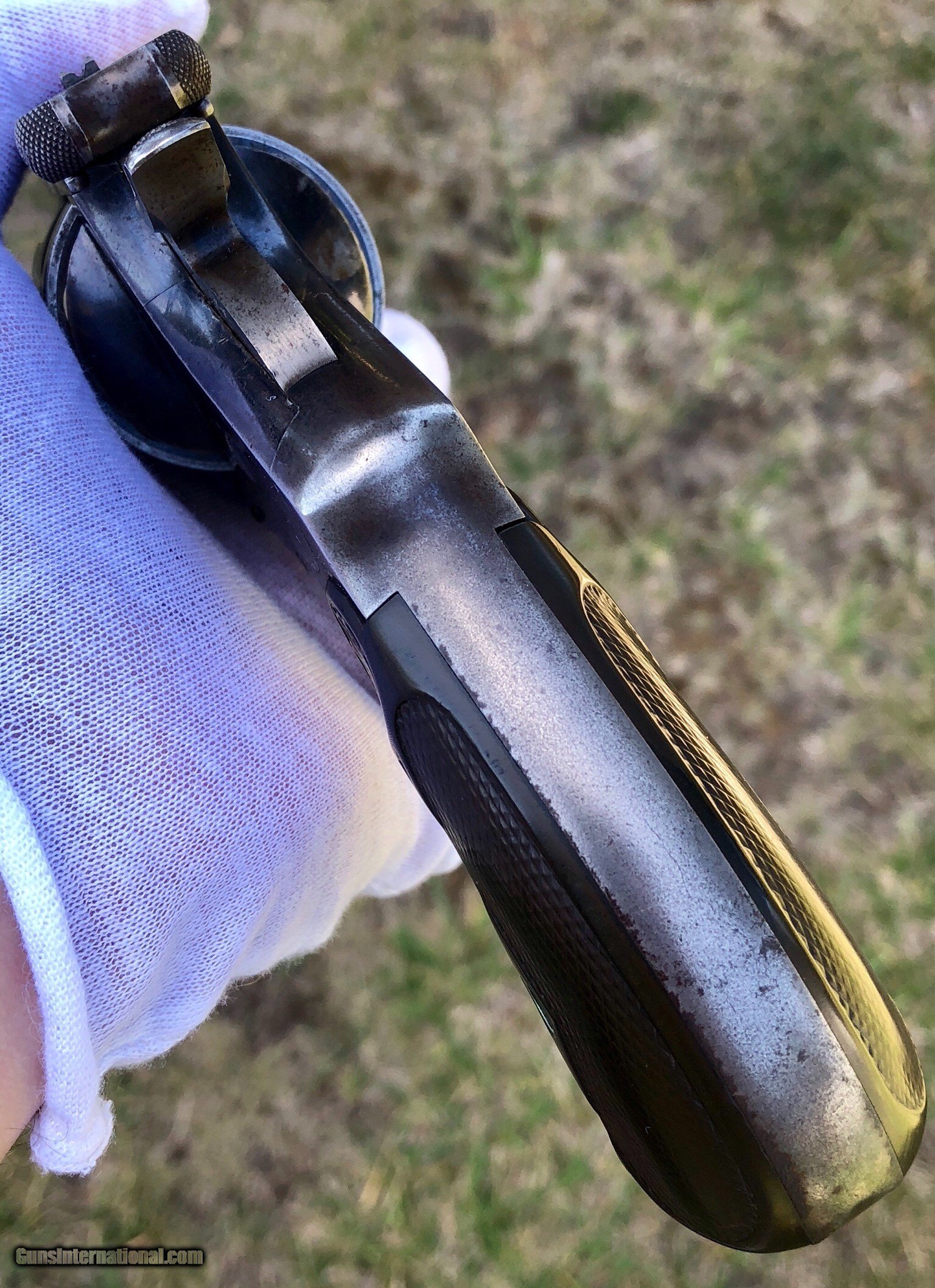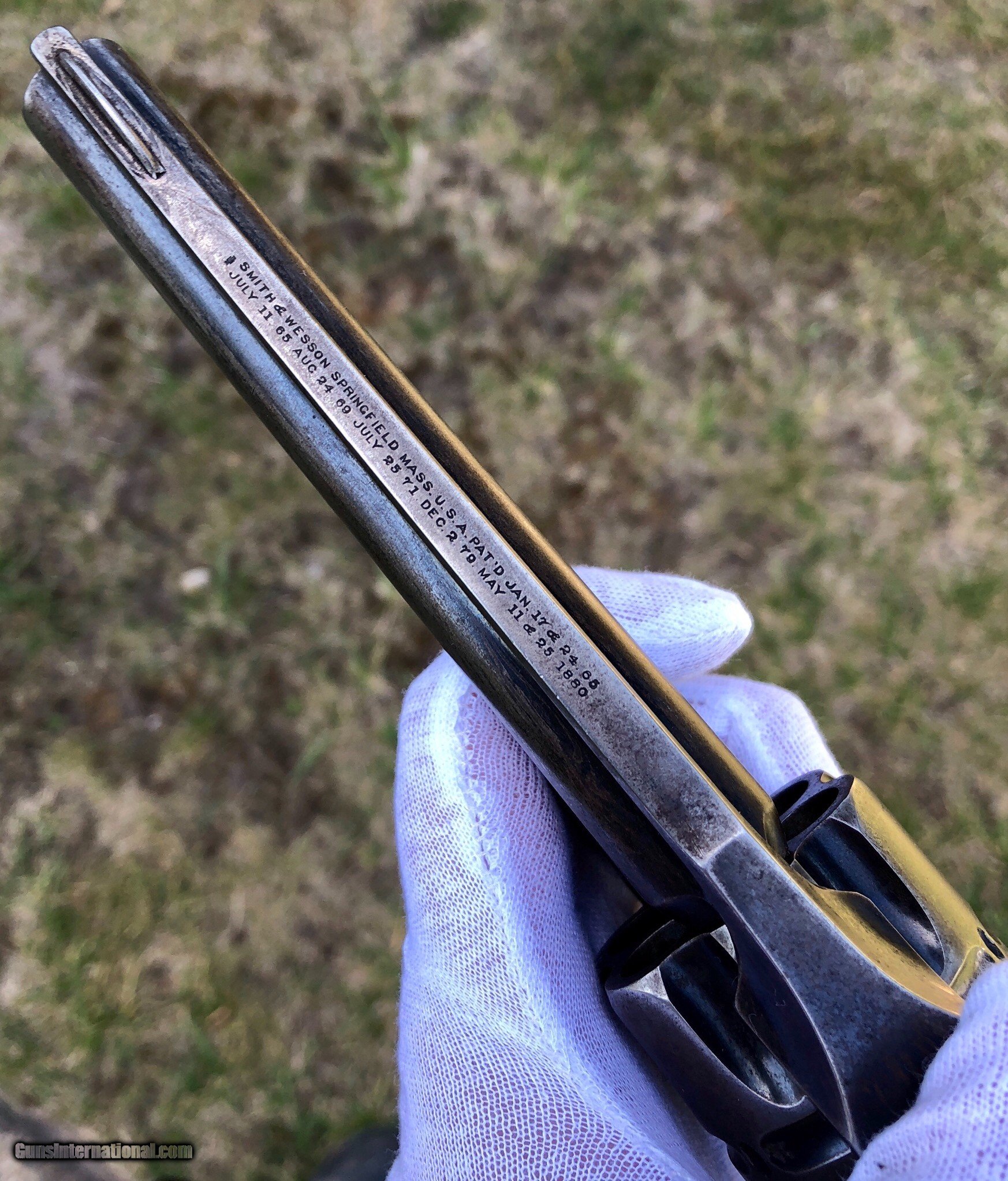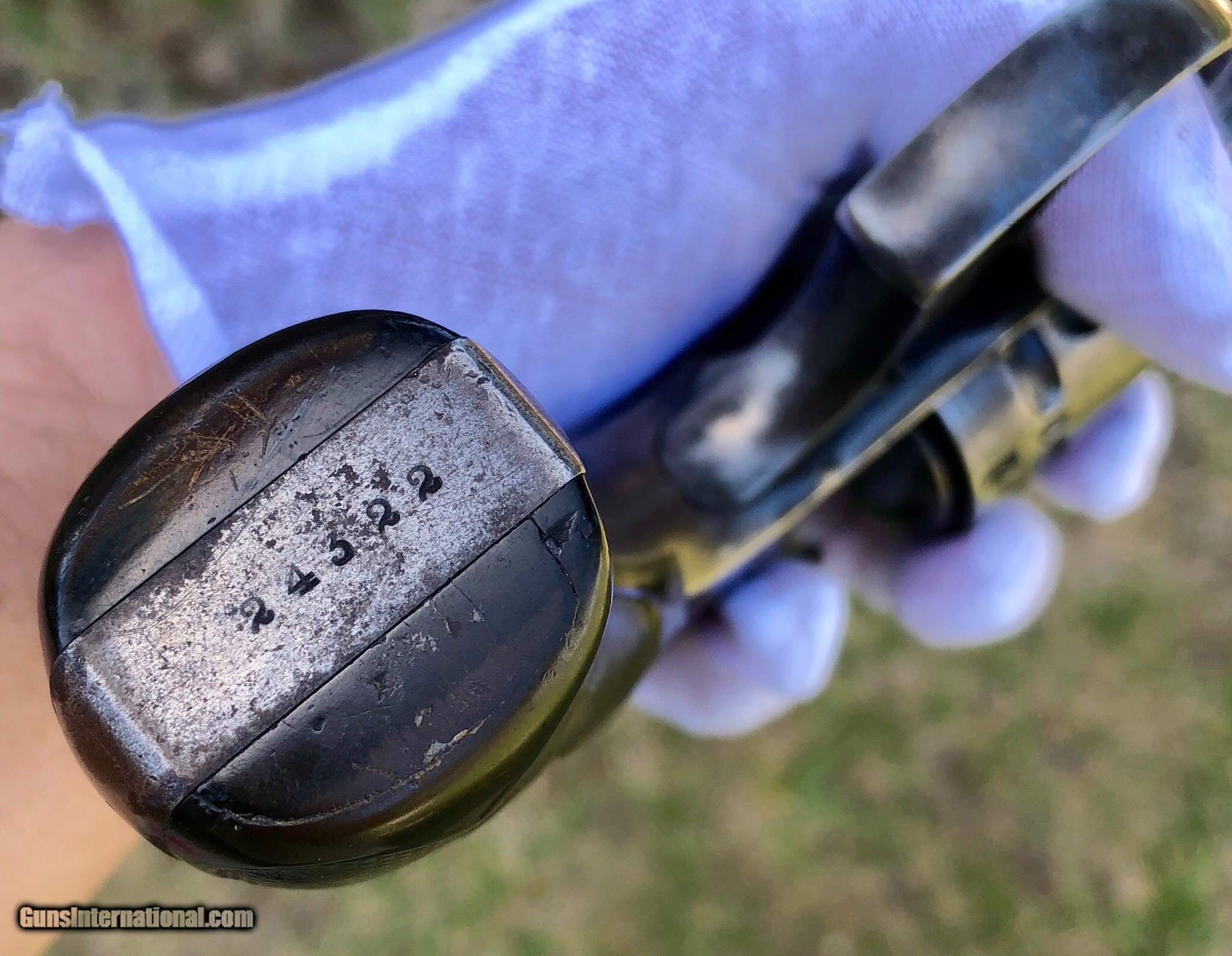 Description: This Smith & Wesson Double Action Revolver shows nice honest usage during its period of popularity, This example has been there and done that but it was never abused, whoever owned it certainly took great care of it. The bore is in great condition and rate a solid 8.5-9 out of 10, Mechanically this appears to function as it should in single and double action. The hammer and trigger have strong remnants of the color case hardened finish. The grips are in very good condition with no cracks or chips, This is priced extremely fair and reasonable as this Smith is worth every bit of $2,000-2,500. Shipping is $25 plus actual insurance. Thank you and if any questions feel free to email, call or text anytime! Asking: $1,550 Sale Pending! SOLD Antique: Yes |