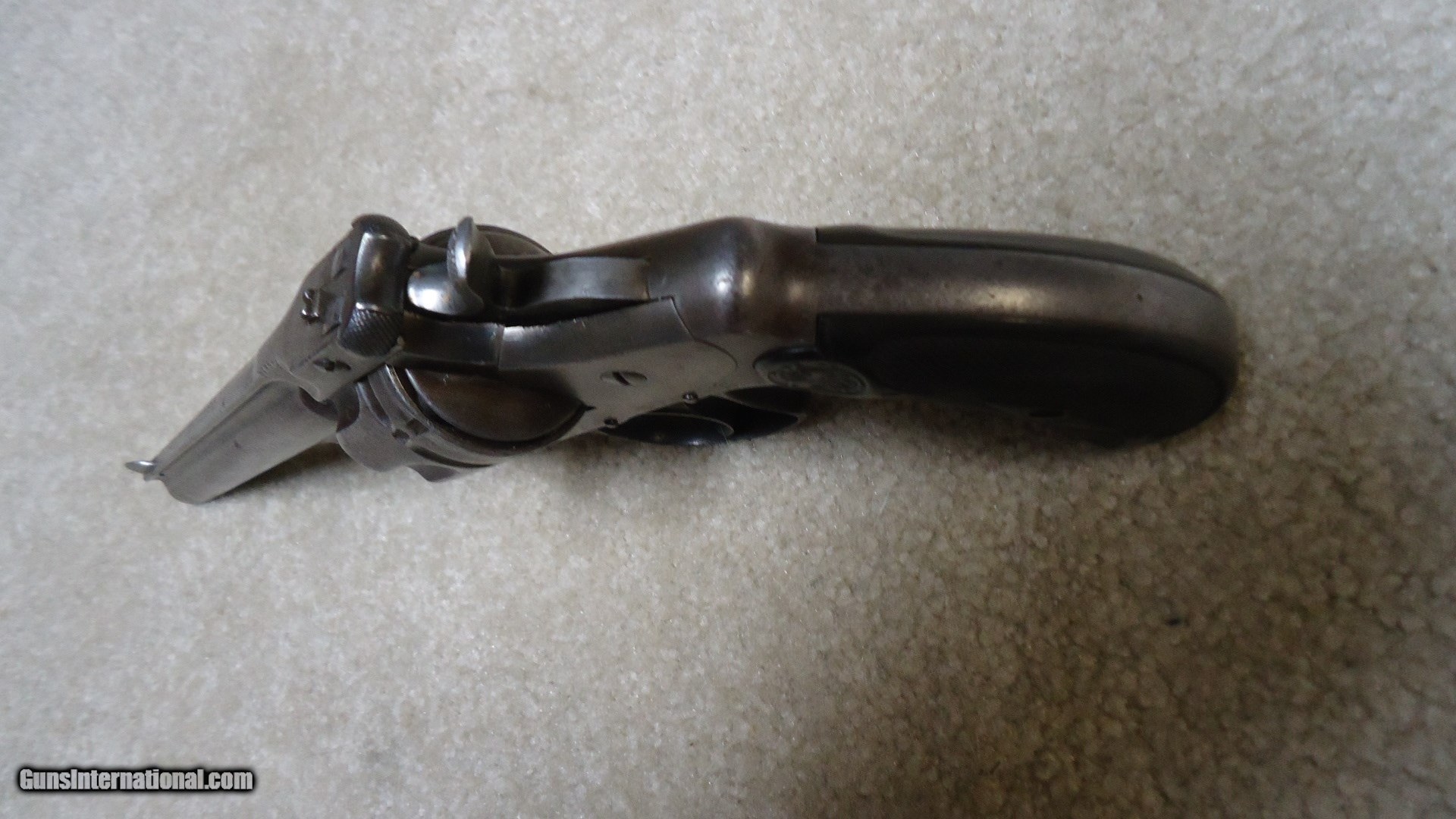 Description: FRONTIER .44-40 DOUBLE ACTION TOP BREAK, 6 ½” BARREL, #9XXX. These big revolvers were made with 1/8” longer cylinders and frames than the standard .44 Russian caliber double actions. They were also serial numbered in their own series with only 15,340 made between 1886-1913 (all frames for this model were made before 1898 and all are therefore antique and no FFL is required for transfer). This example came out of Helena, Montana and no doubt has a great history in it! Overall an uncleaned gray/brown metal with some very aged blue in the most protected small areas. All numbers match on the butt, cylinder, barrel latch and barrel. Unaltered front sight and fine mechanics. Grips show normal wear with the right grip showing more wear- typical of guns worn in holsters with the right grip exposed. There is a small bit of added hard rubber grip material added to the lower edge of the right grip (must have been a shallow chip there that did not go all the way through) that is so well done and blends so well that I owed this revolver for some time before I ever noticed it! Fine correct markings and fine bore. The 6 ½” length was the longest offered on this model- most that I have seen seem to be the 5” length. I think that had I been in Montana in the 1890s I probably would have chosen one of these as my main holster gun…until the Colt New Service arrived on the scene! SOLD Antique: Yes Manufacturer: SMITH & WESSON Model: .44-40 DOUBLE ACTION FRONTIER MODEL Serial Number: 9XXX Caliber Info: .44-40 Condition: VG Barrels: 6 1/2 |