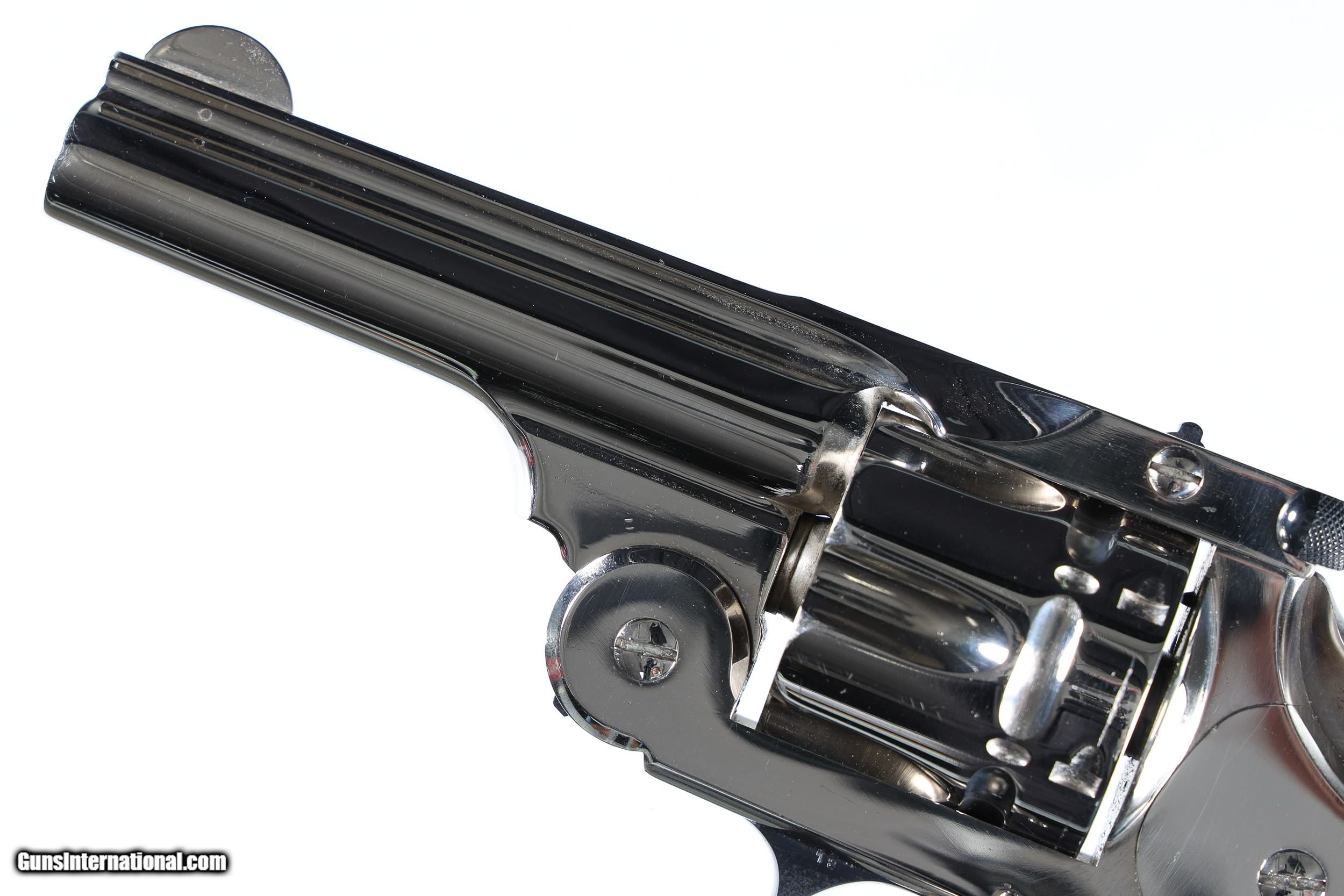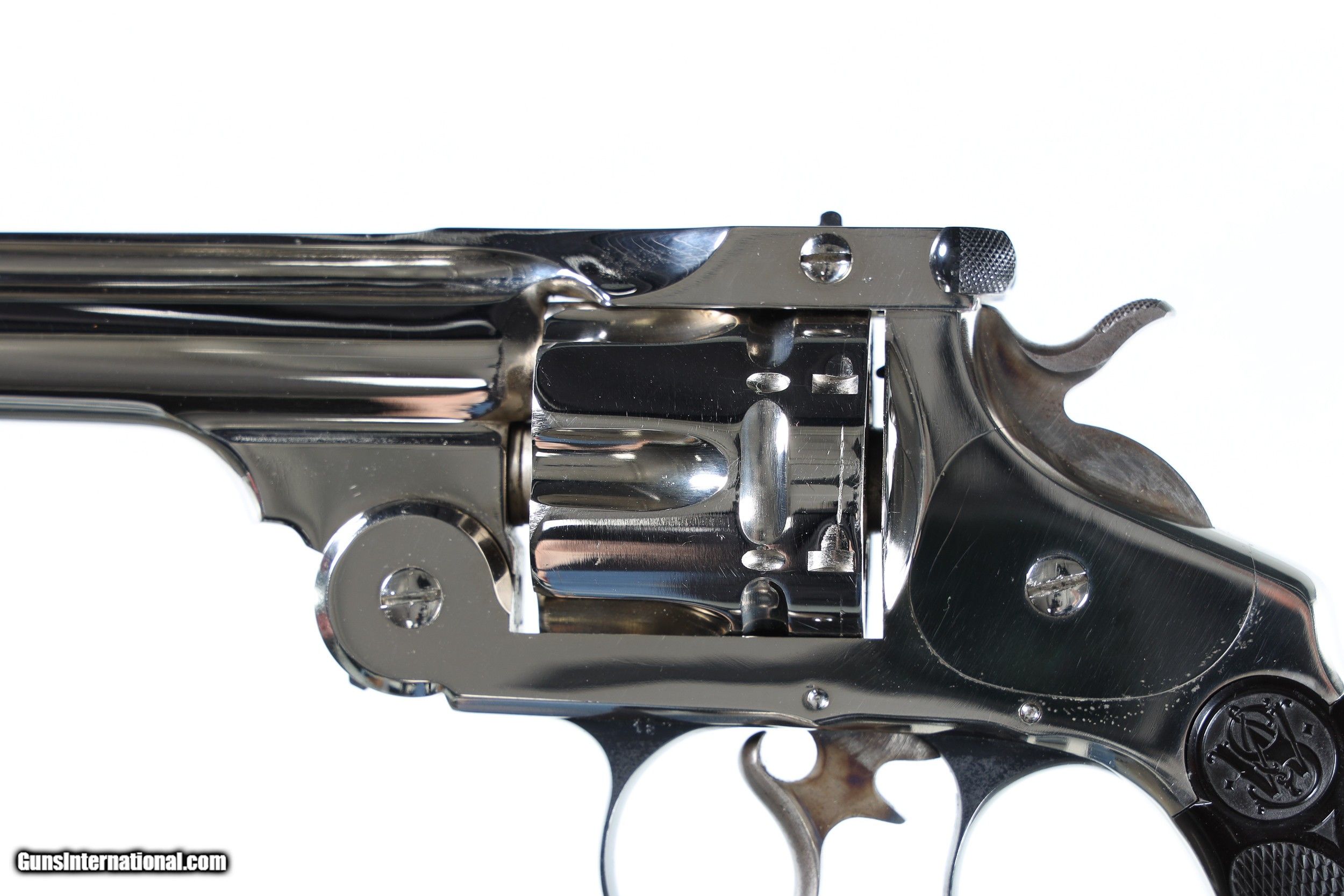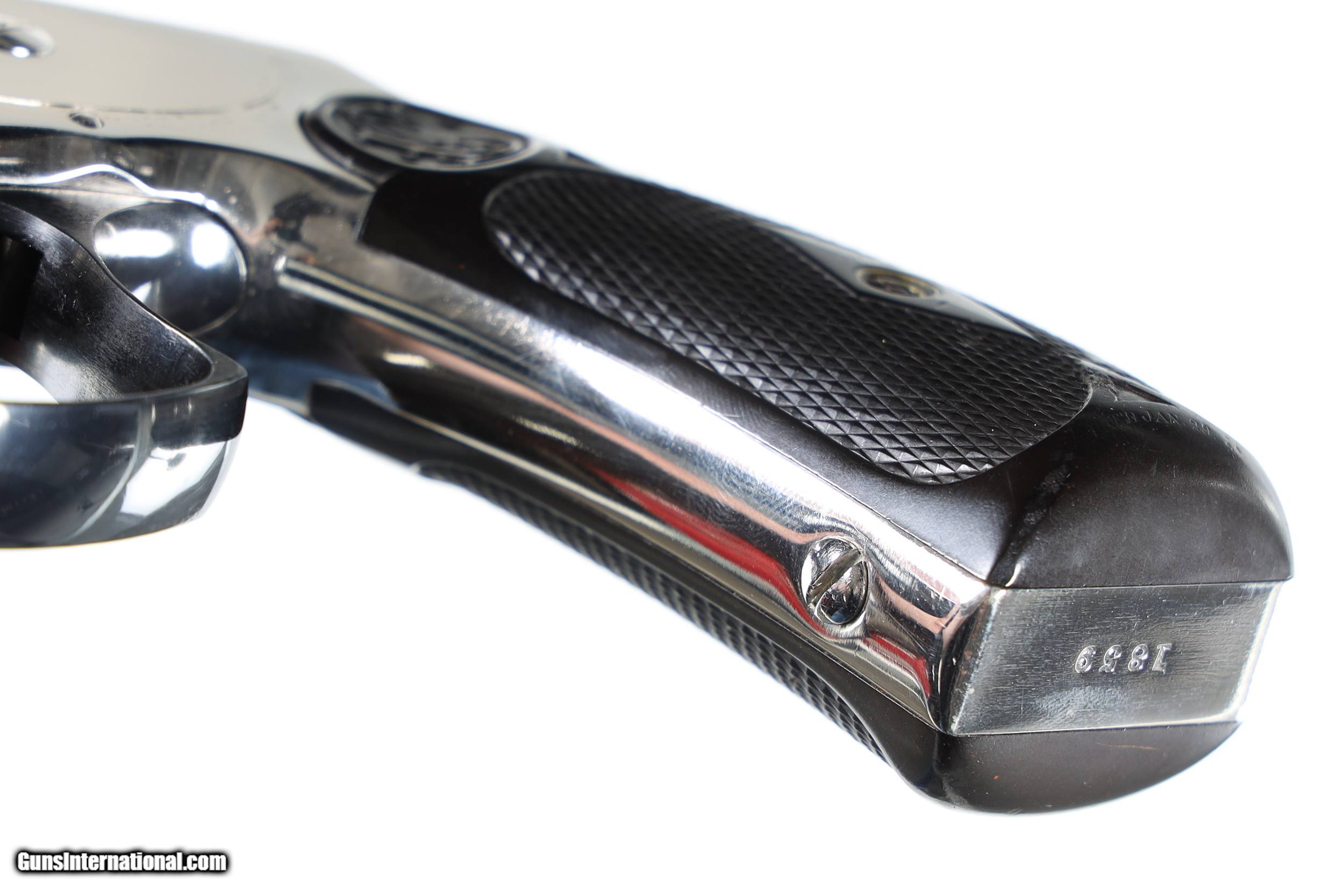 Description: Excellent plus overall condition, factory refinished. S&W factory rework star on cylinder and factory March 1979 (3 79) return date and "R-N" refinish marks on grip frame. Mfd 1886-1898 Cataloged until 1913 • Free Shipping, No Credit Card Fees. • Lay-a-way available for this firearm. • 1/3 Down, a 1/3 in 30 Days 1/3 in 60 Days. SOLD Antique: Yes Manufacturer: Smith & Wesson Model: Frontier Serial Number: 1859 Barrel Length: 4 |