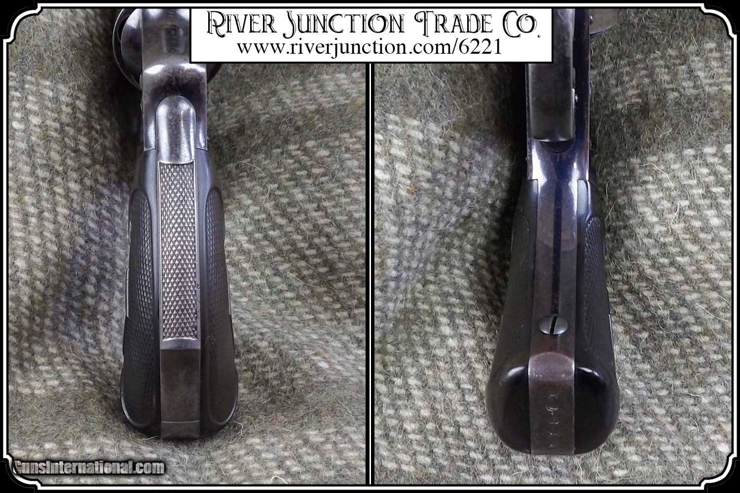 Description: Smith & Wesson 1st model hammerless safty model (A.K.A. NEW DEPATURE OR LEMON SQUEEZER) Revolver, .32 cal. center fire. All original in very good condition with all numbers matching. 3 inch barrel with excellent bore and perfect grips and mechanics. A true pocket hideaway revolver AN ANTIQUE, IT CAN BE SENT DIRECTLY TO YOU. Payment: Item, can be ordered on line with a credit card or paypal on our sight. Just Google (riverjunction) and type in the River Junction Trade Co. item number (6221) in the search box. Before you checkout you will see shipping cost and total. OR If you prefer: Pay by cash, postal money order, cashiers check, personal & business checks. We wait for checks to clear. We always answer questions and entertain offers. Have questions? Call me 563-880-4588. Jim SOLD Antique: Yes |