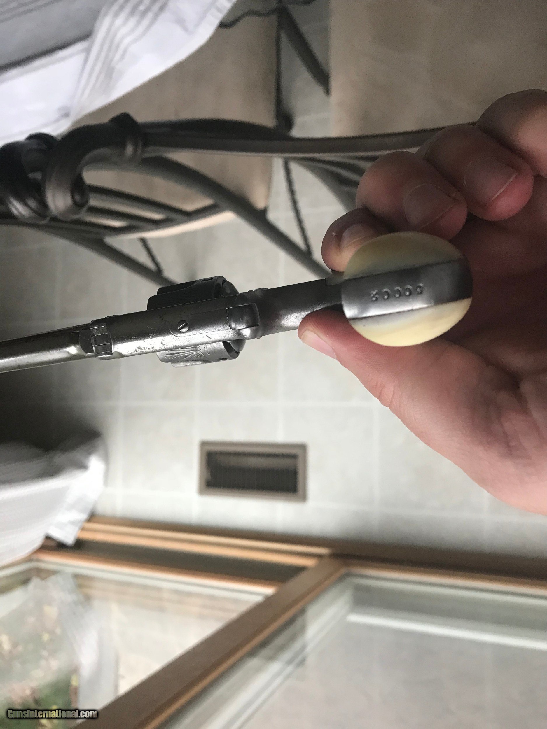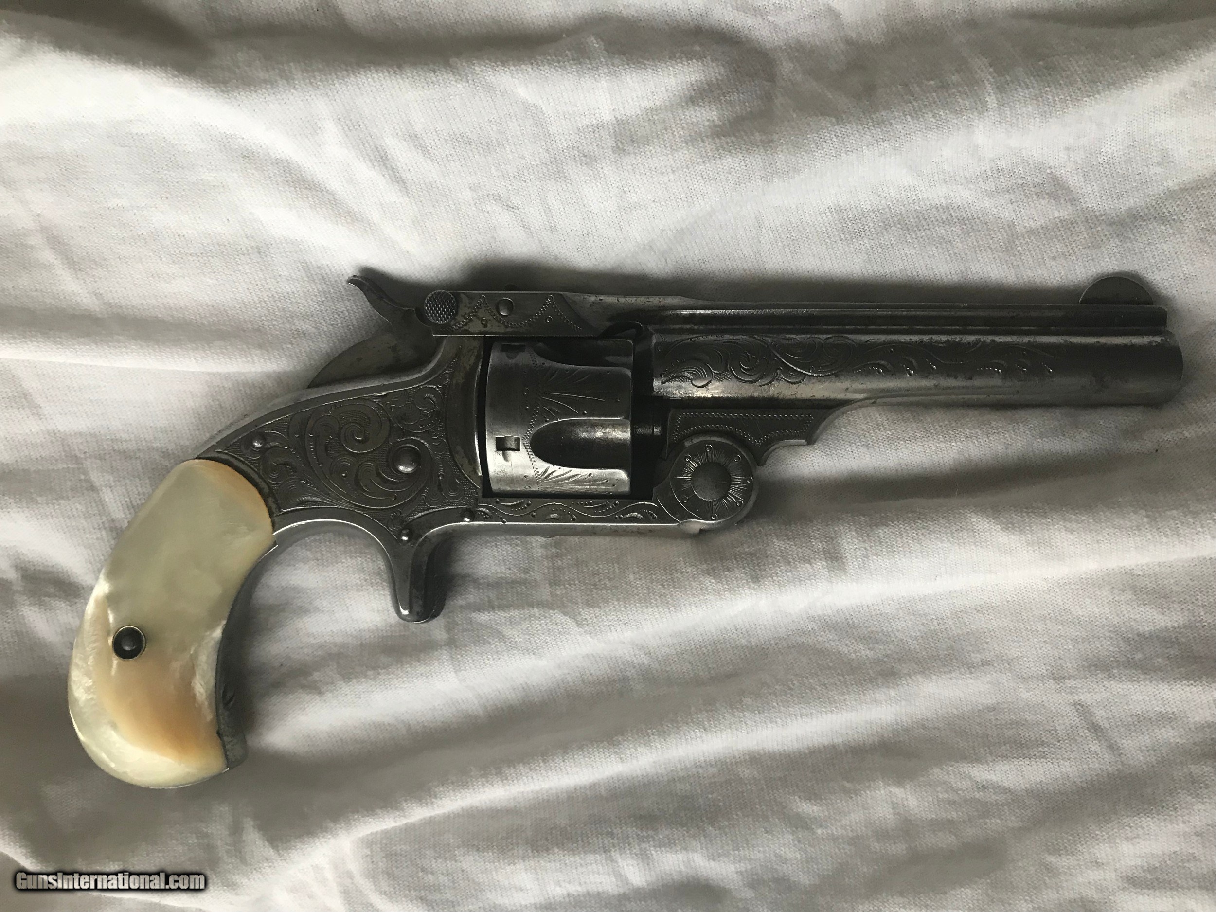 Description: Smith & Wesson Model 1 1/2 32 Caliber Factory Engraved Nickel Plated Revolver Serial No. 50002 in very good condition. Finish has dulled in some areas. Bore is excellent and action including ejector is strong. Shipping is $25. 3 day return policy. SOLD Antique: Yes |