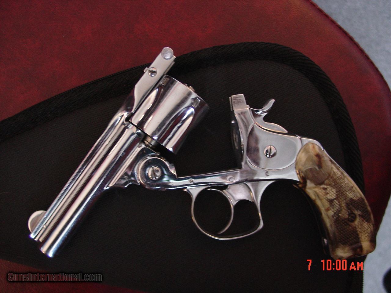 Smith & Wesson Model 3 top break,double action,38S&W,3 1/4",refinished nickel,5 shot,custom grips, circa 1884-1895,minor scratches,recurved guard