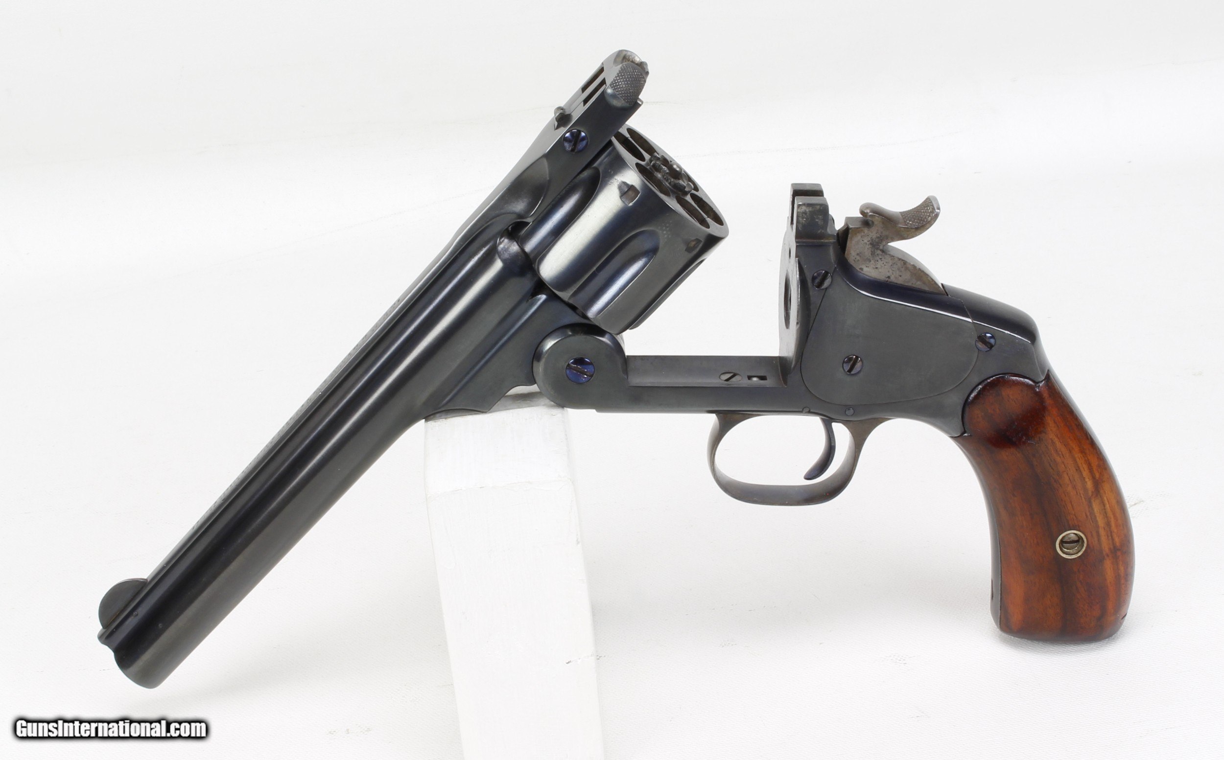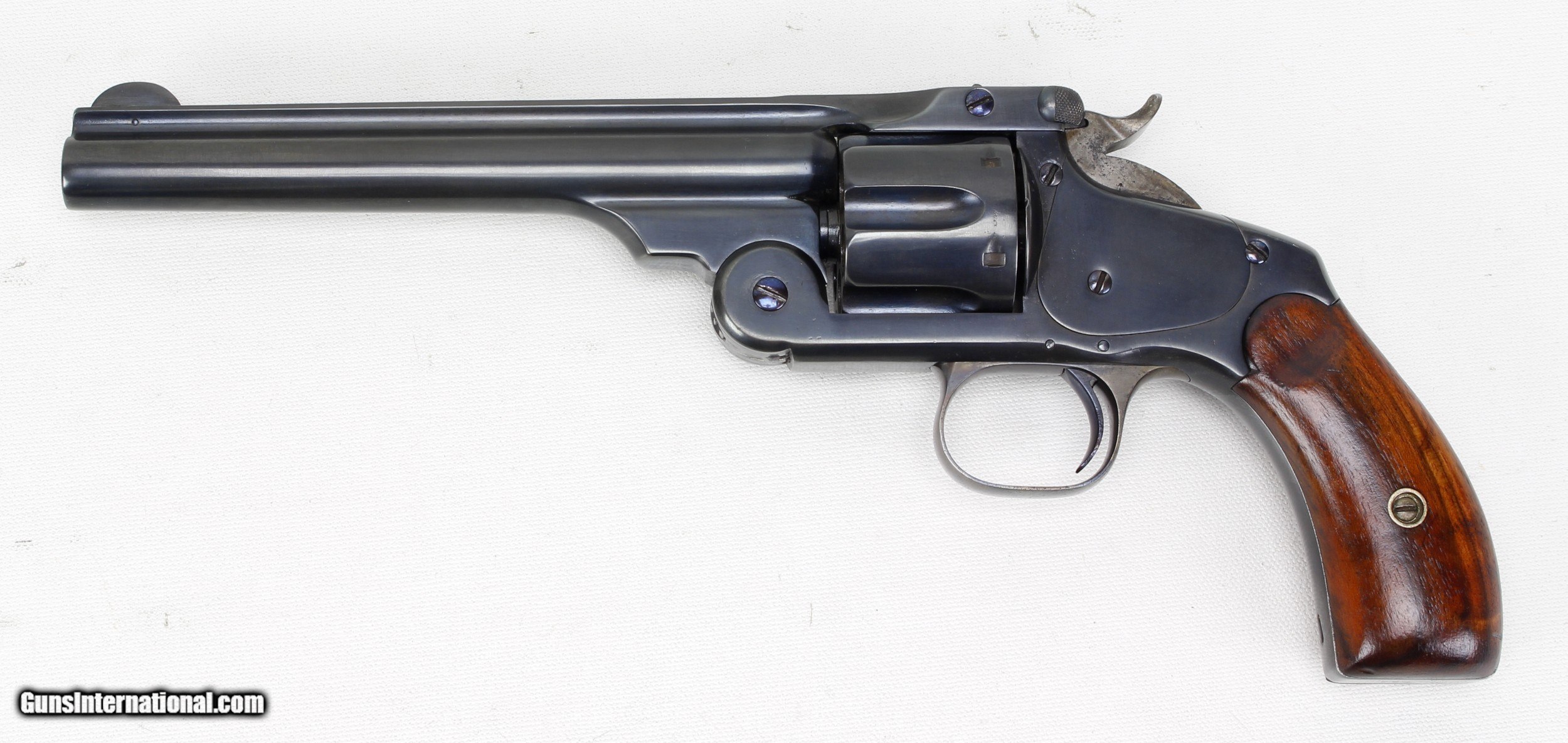 Description: SMITH & WESSON, NEW MODEL #3, 44 Russian, 6 1/2" Barrel, "Early Model has Slightly Longer Ejector Housing & Tool Gear Extraction Cam." 1 7/16" Cylinder, Excellent Mechanically, Very Good Bore. Original Wooden Grips. SN#693, MFG: 1879. Gun has been Re-Blued. Refer to Pages 102 & 103 of Standard Catalog of Smith & Wesson. Ships to Lower 48 W/Insurance: $65.00 Price Reduced 3/3/20 Ships Direct to Buyer, Antique Firearm SOLD Antique: Yes |