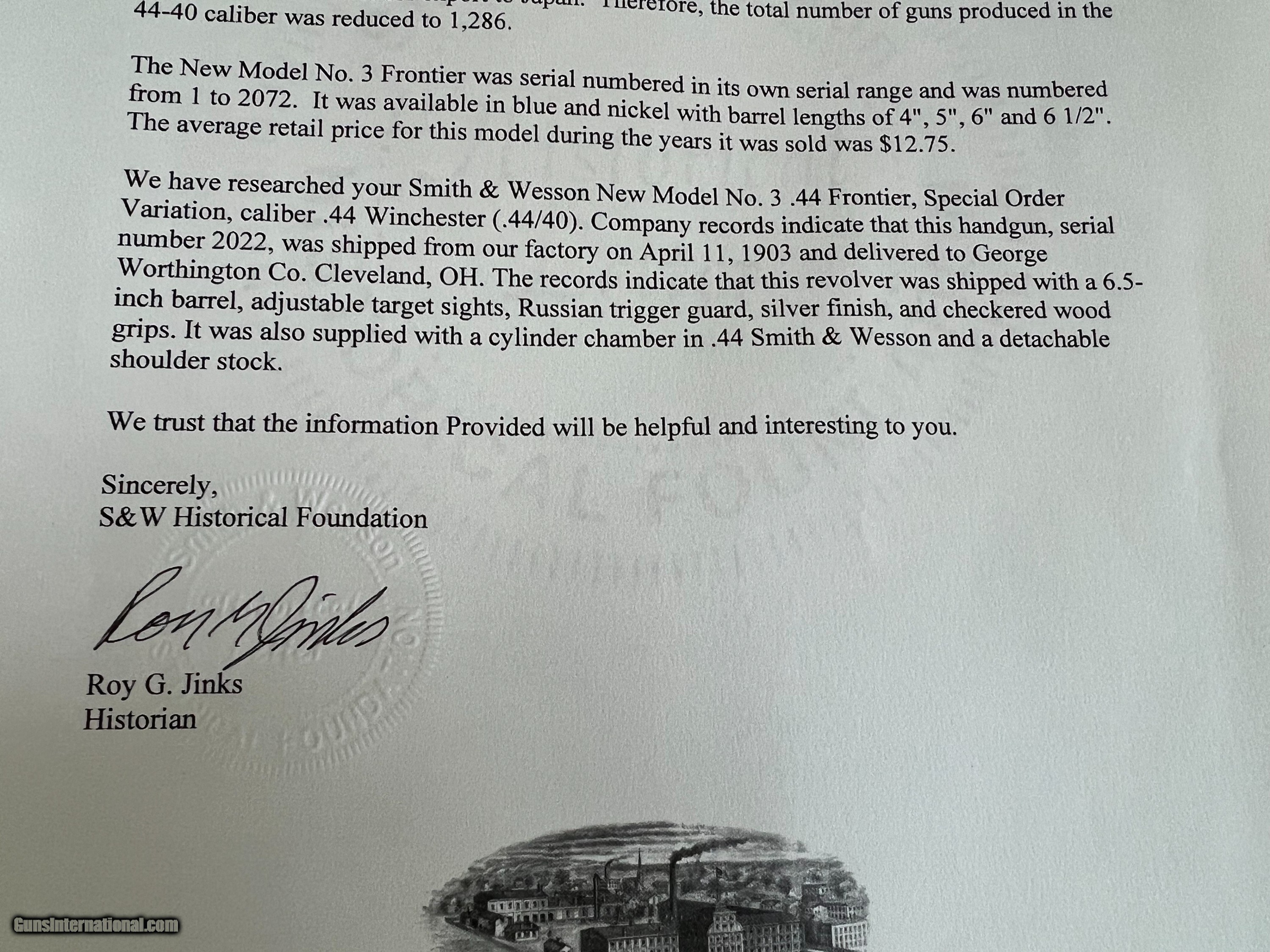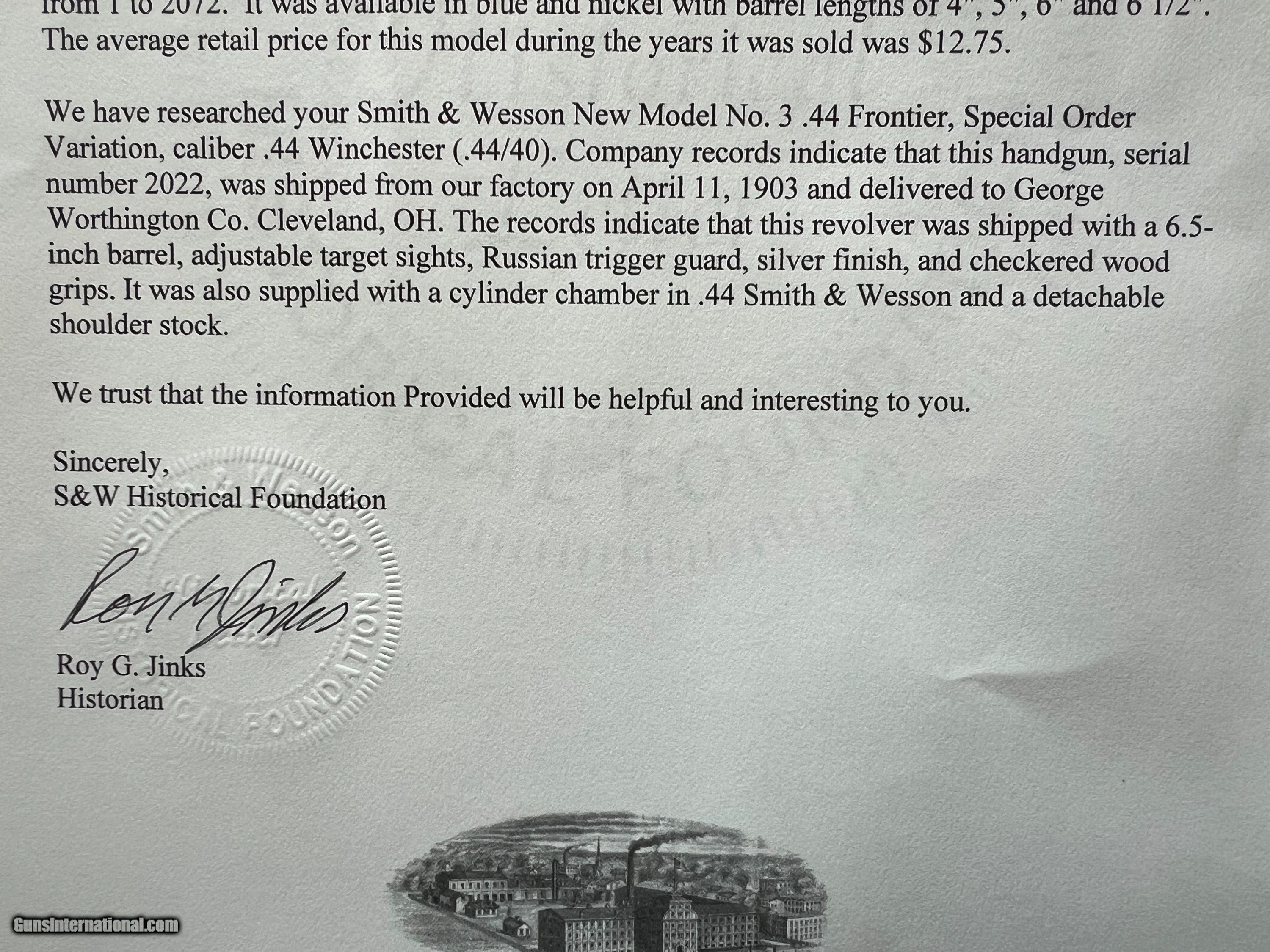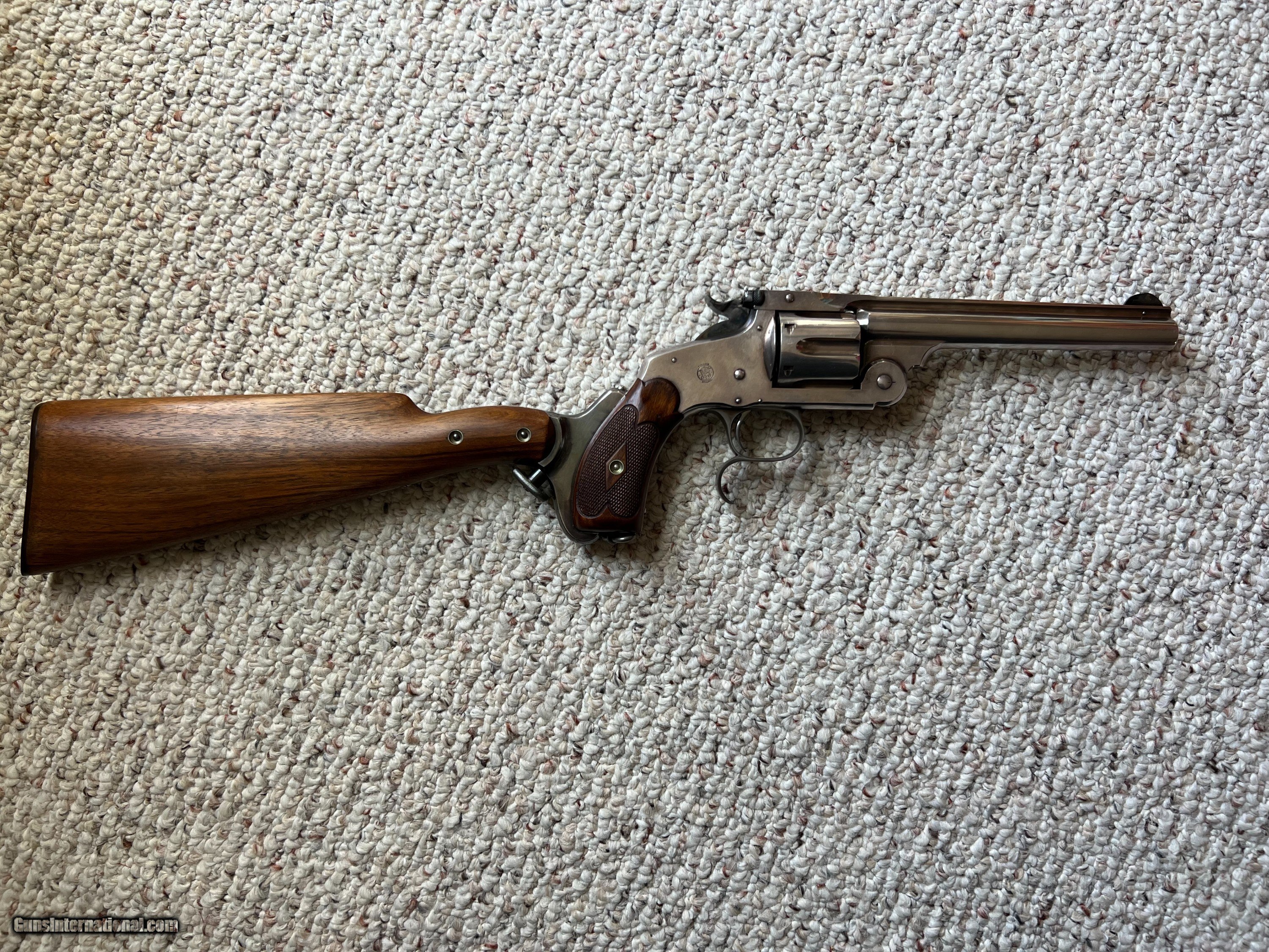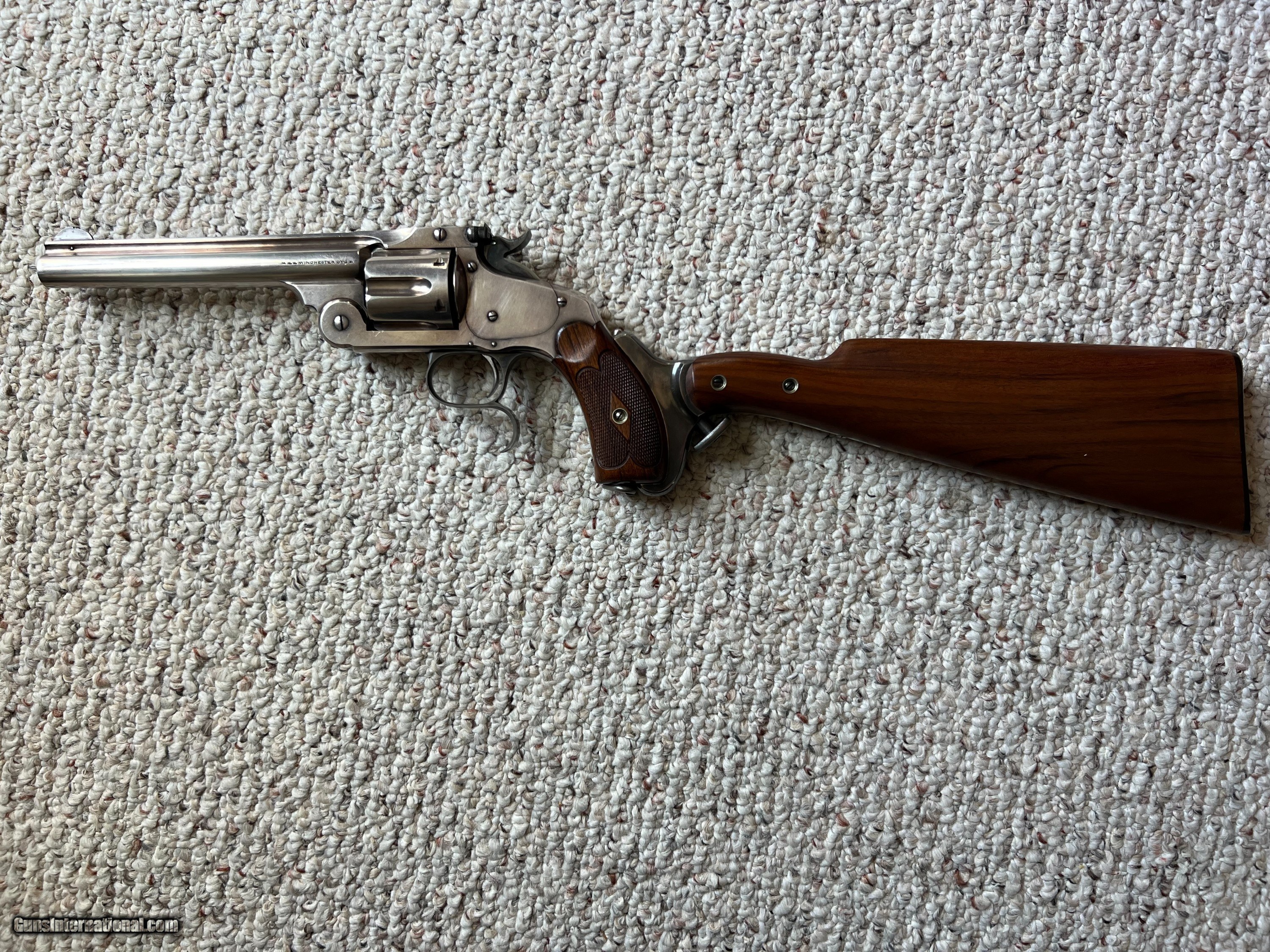 Smith & Wesson New Model 3 Frontier Factory Silver Plated with Shoulder Stock 44-40 and extra 44 Russian cylinder