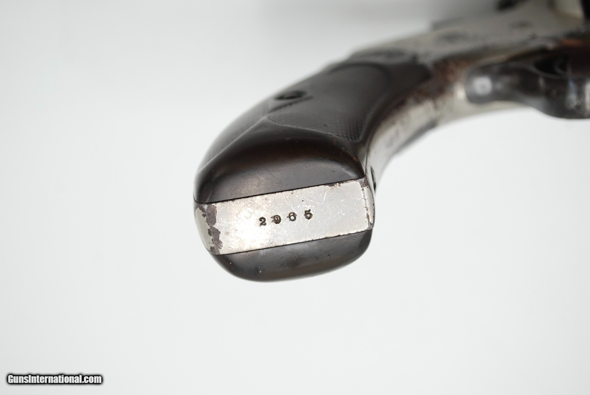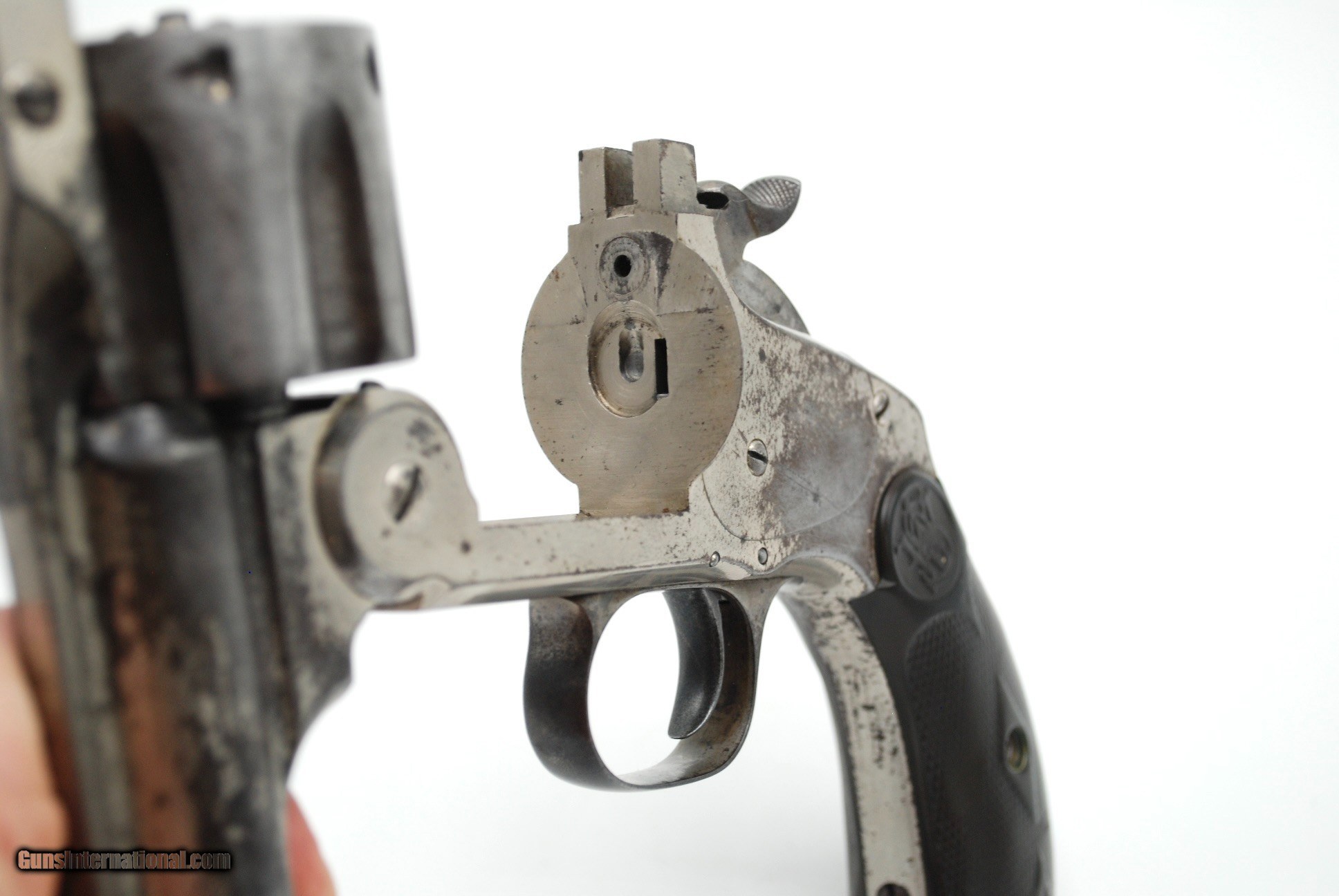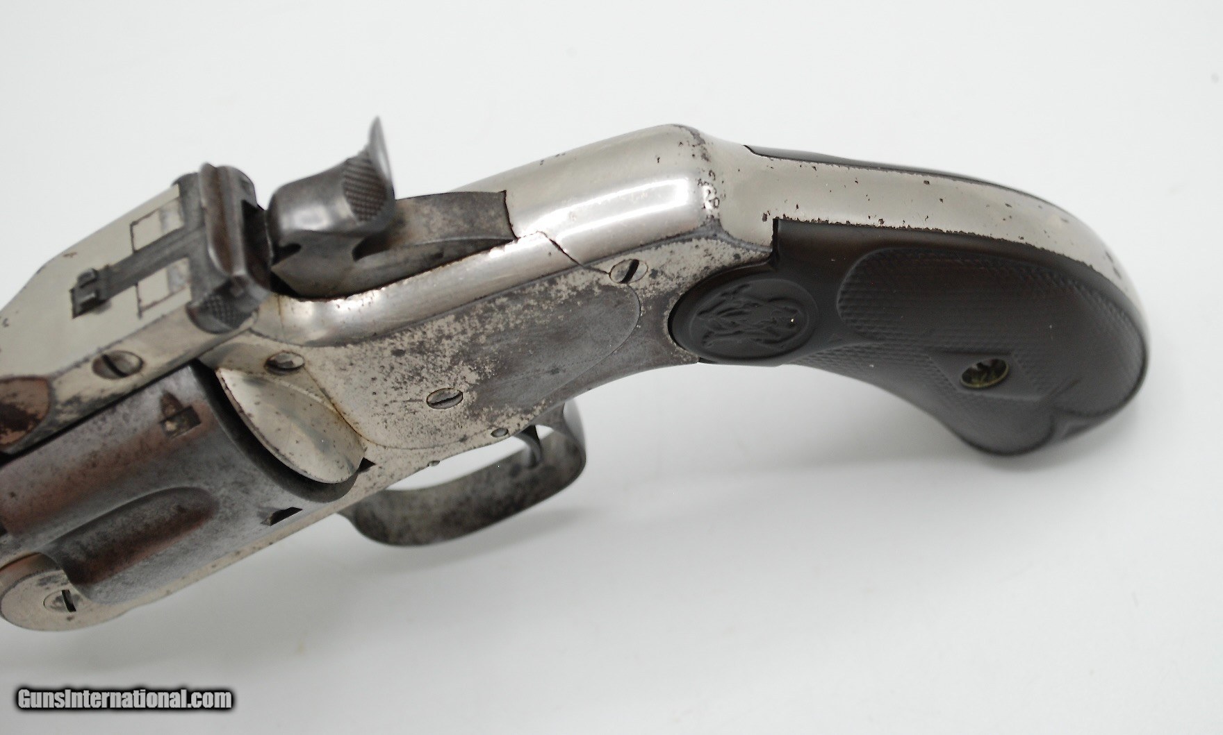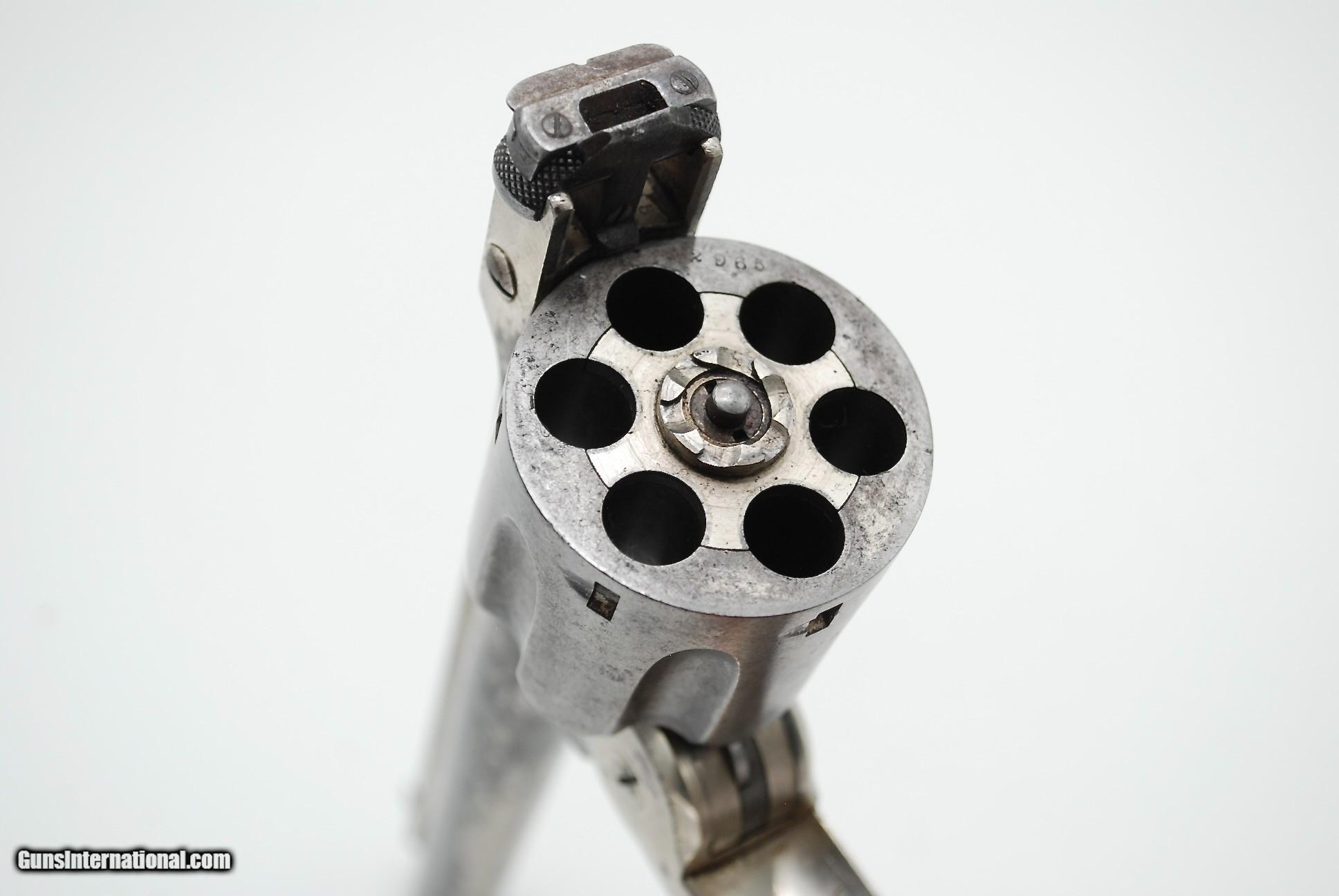 Description: This gun is all original and correct, with matching serial numbers. A total of about 6000 of these were made, this is mid production, made early 1890s. The gun is completely untouched and retains about 70% original nickel, it will look better if you polish the balance to white but I didnt want to mess with it. Action is crisp and tight, with safety and full cock notches working, with good lockup and clean bore that shows strong rifling. No license needed to buy except NJ and NYC residents. SOLD Antique: Yes |