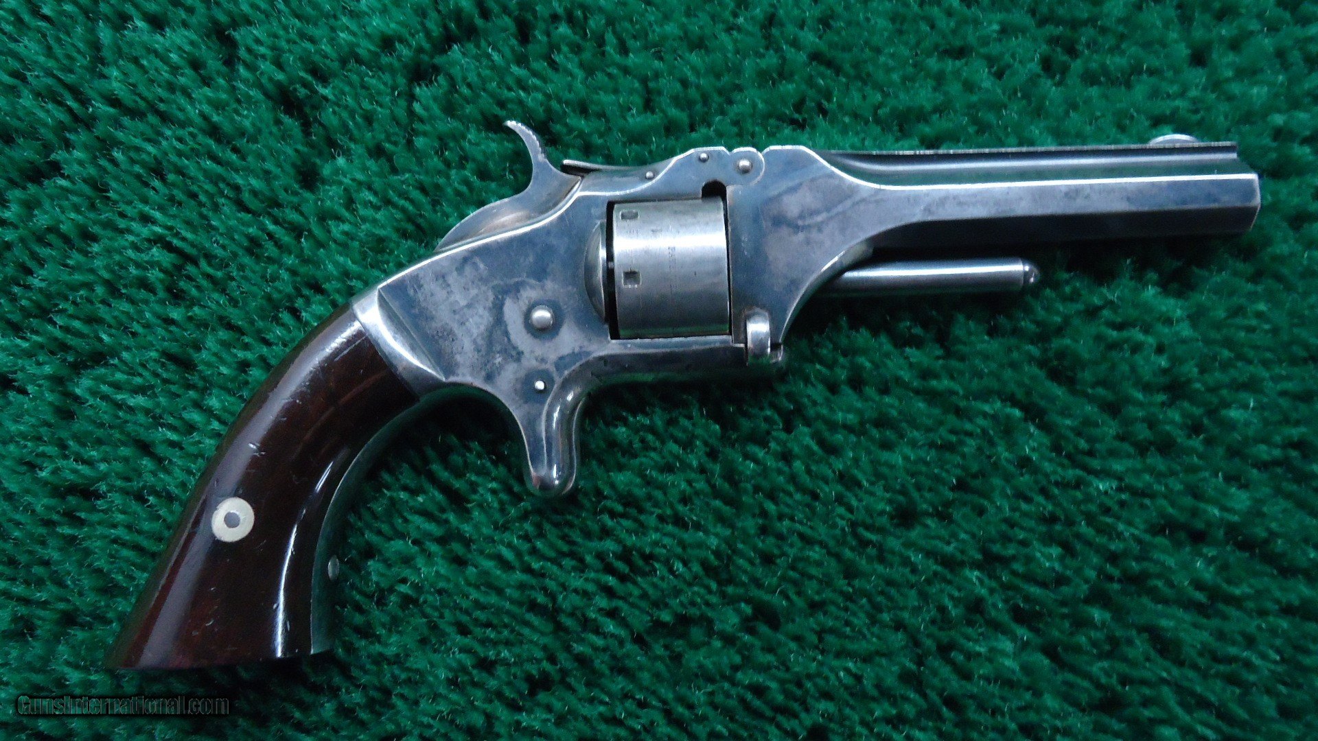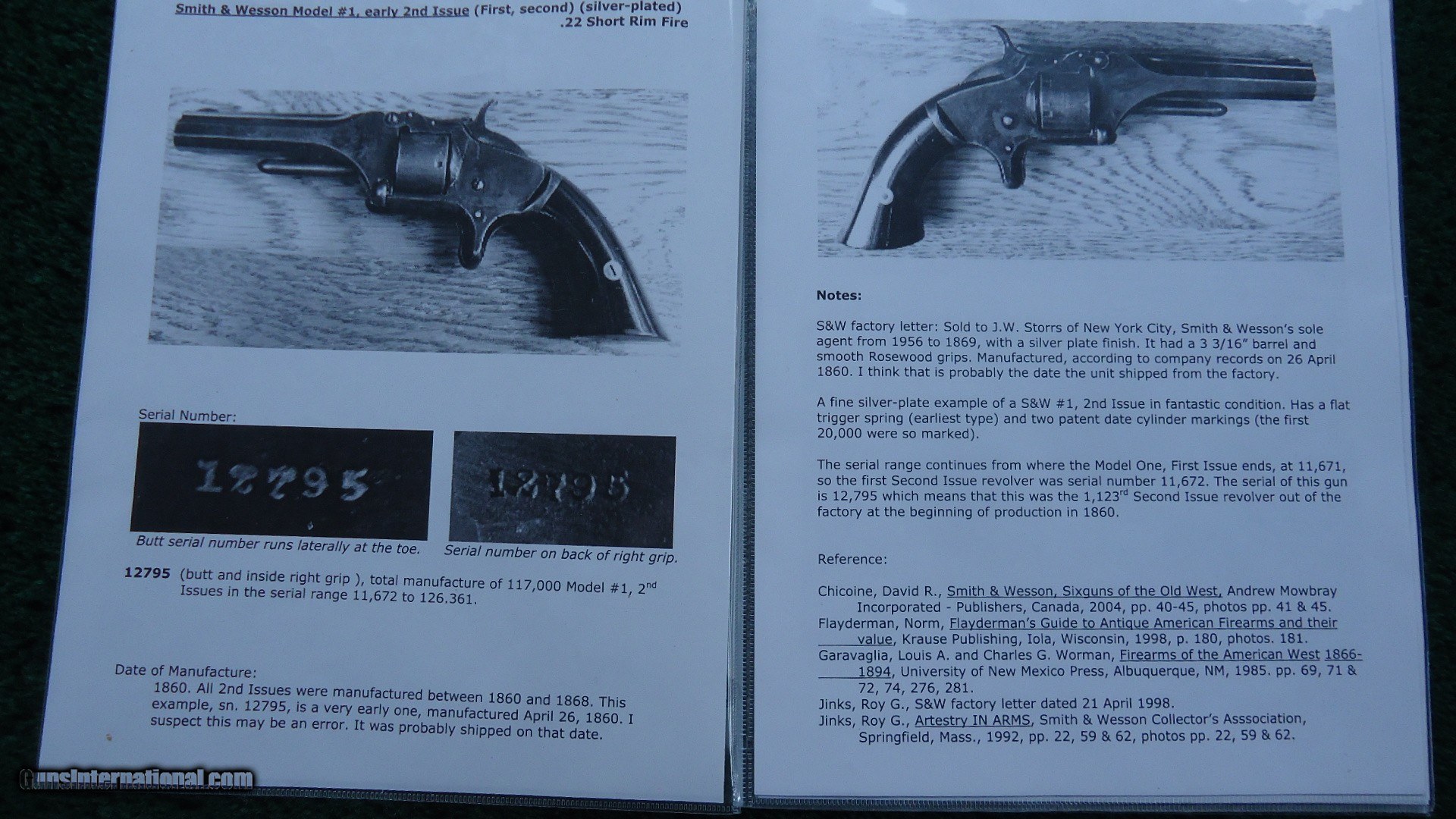 Description: 7 shot revolver features a 3-3/16 inch solid rib barrel chambered in 22 Short RF. Silver plate finish on the frame, cylinder and barrel is in good condition. A few areas show some wear. Good markings. Rosewood grips are in very good condition with most varnish remaining. Matching numbers on the butt and inside the right grip. This Smith & Wesson comes with a Factory Letter as well as other documentation showing features. A very nice S & W No. 1. Leroy Merz Antique Firearms specializes in antique and vintage Winchesters and other fine American firearms. Since 1965 Mr. Merz has taken part in the world of firearms and has been a contributor to many well known reference books. We have hundreds of additional guns in every price range at our home online. Search for Merz Antiques in google. SOLD Antique: Yes Handgun Caliber: .22 Short |