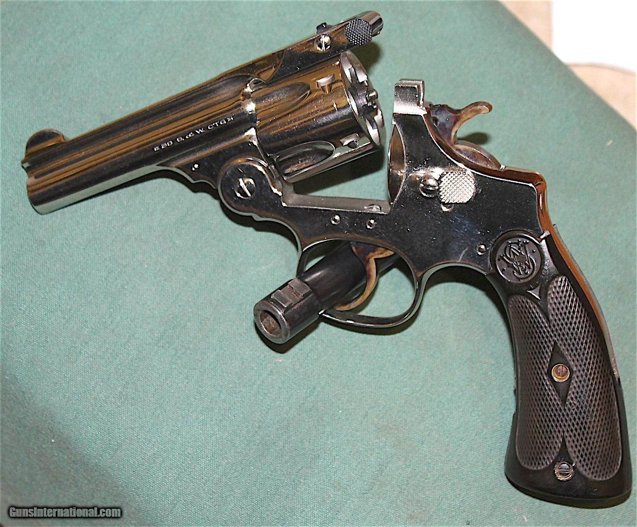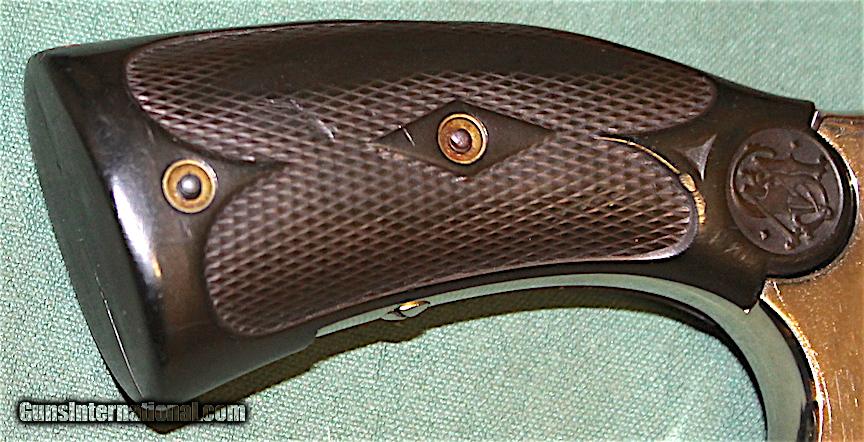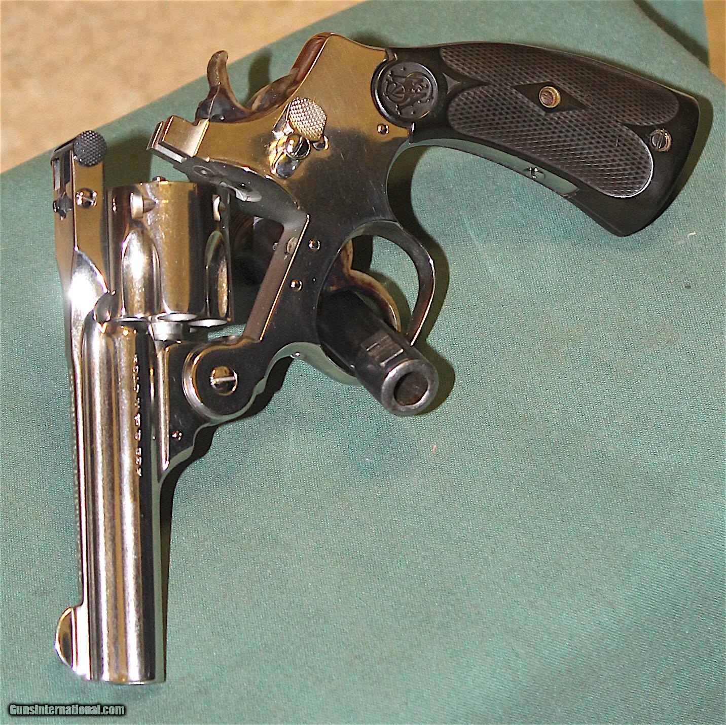 SMITH & WESSON--PREFECTED--.38 FIVE SHOT-- DOUBLE LOCKED TOP BREAK--NICKEL -- TARGET 2 SCREW GRIPS--MADE 1909 --