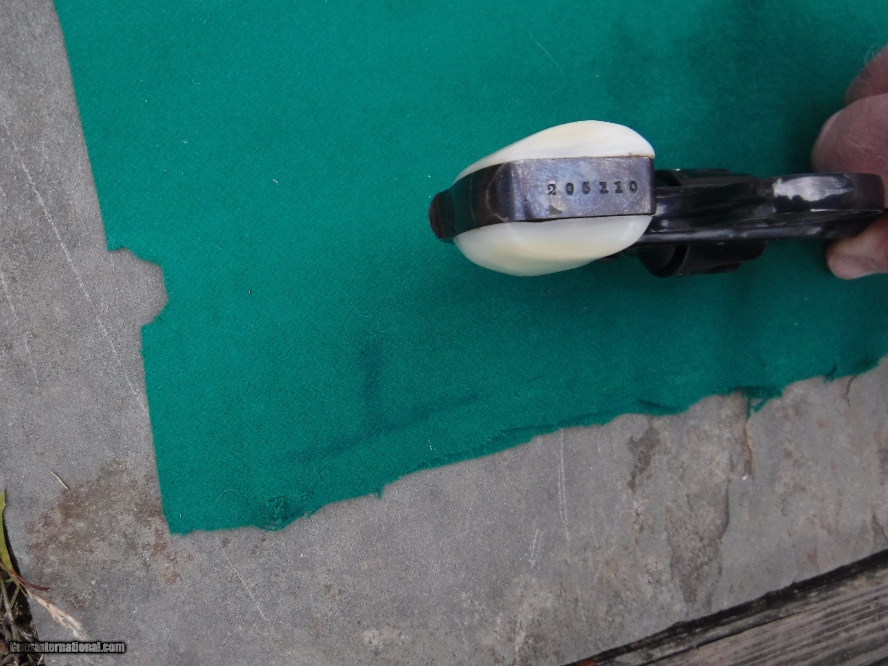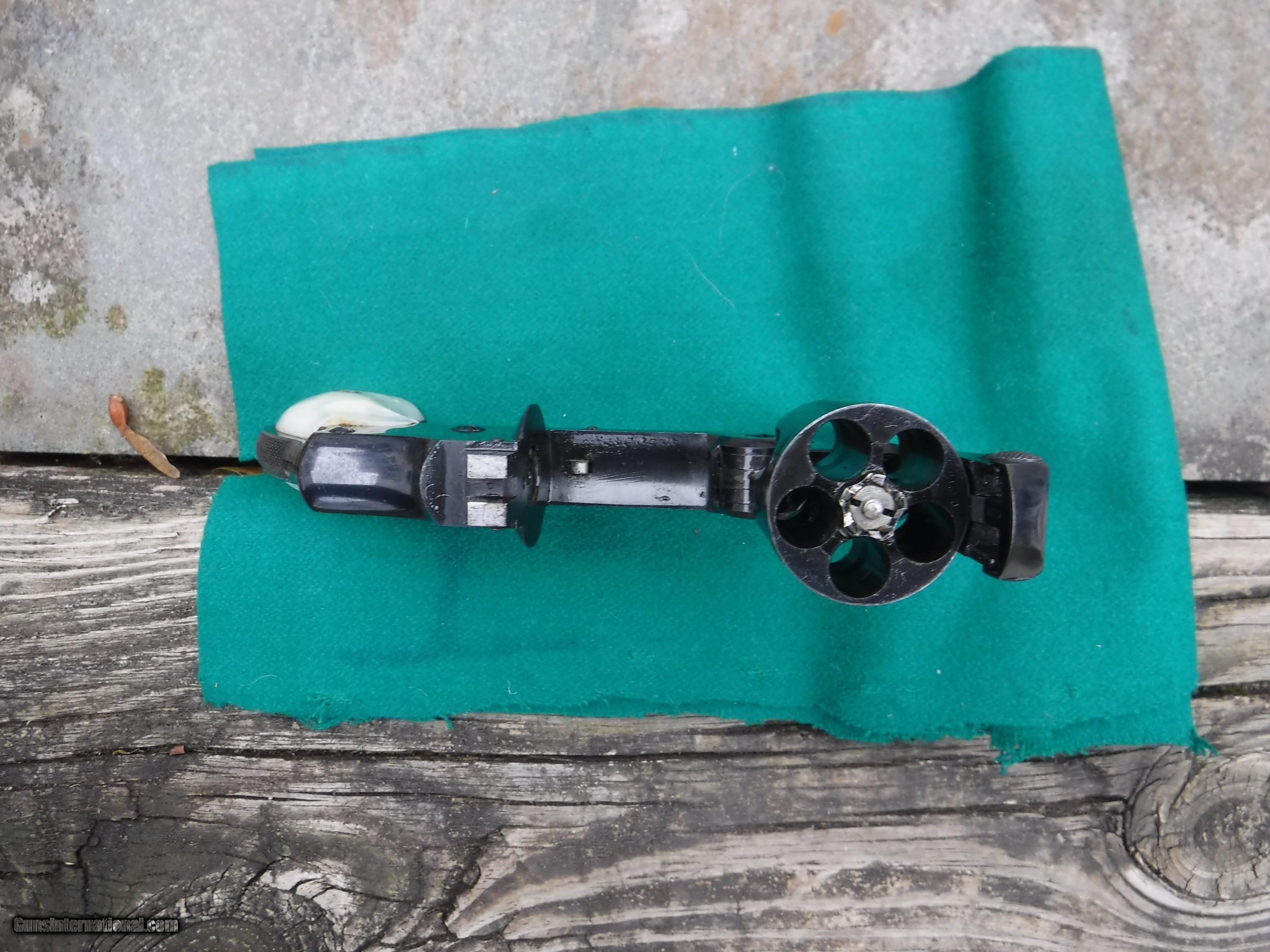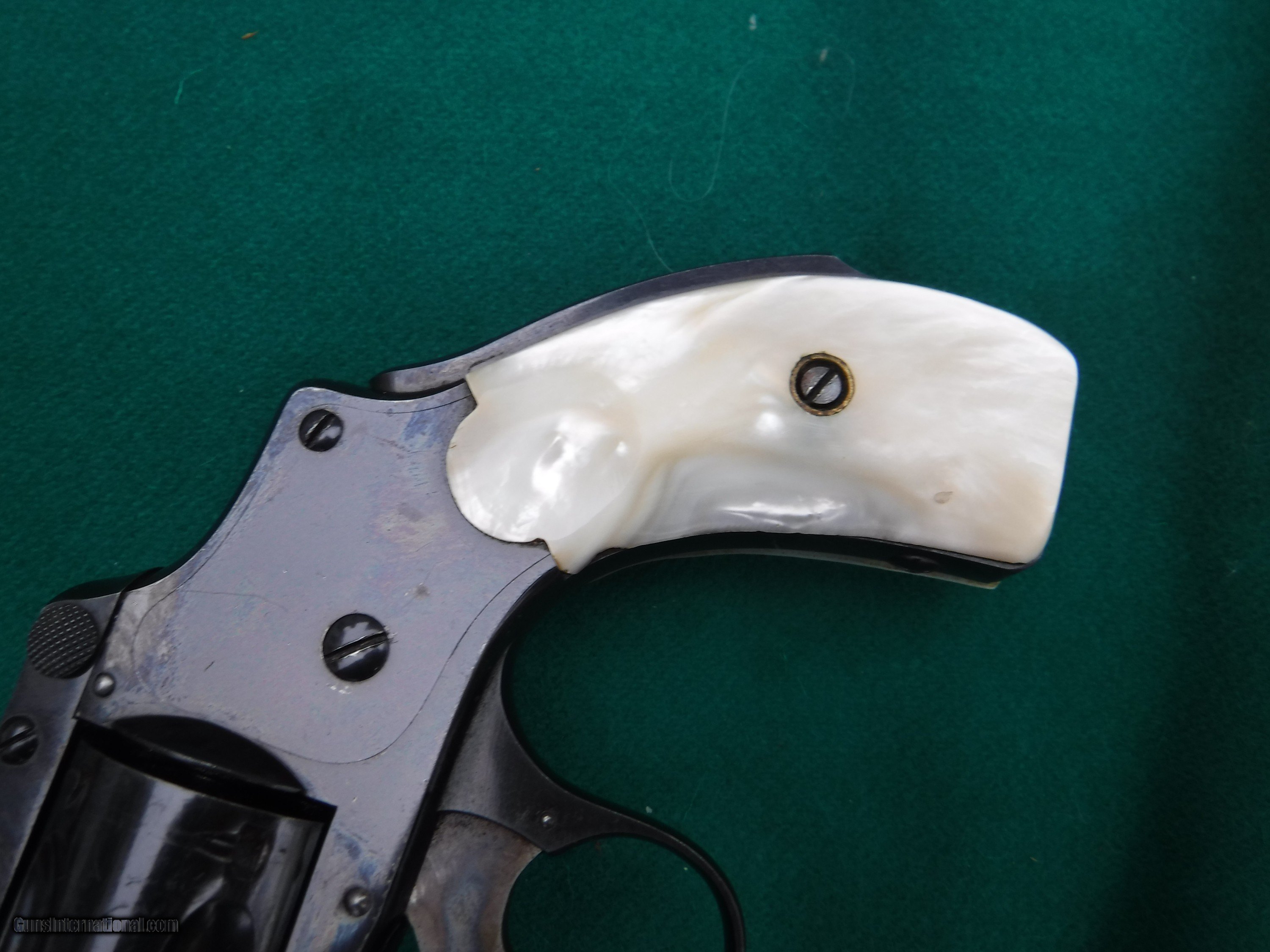 Description: Smith & Wesson Saftey Hammerless - 32 s & w cartridge - 3 inch barrel - blued - top break 5 shot revolver - Mother Of Pearl grips - case harened trigger very very minor cylinder drag - blue is 80% missing some on right side of frame. Price: $495.00 Contact Seller |