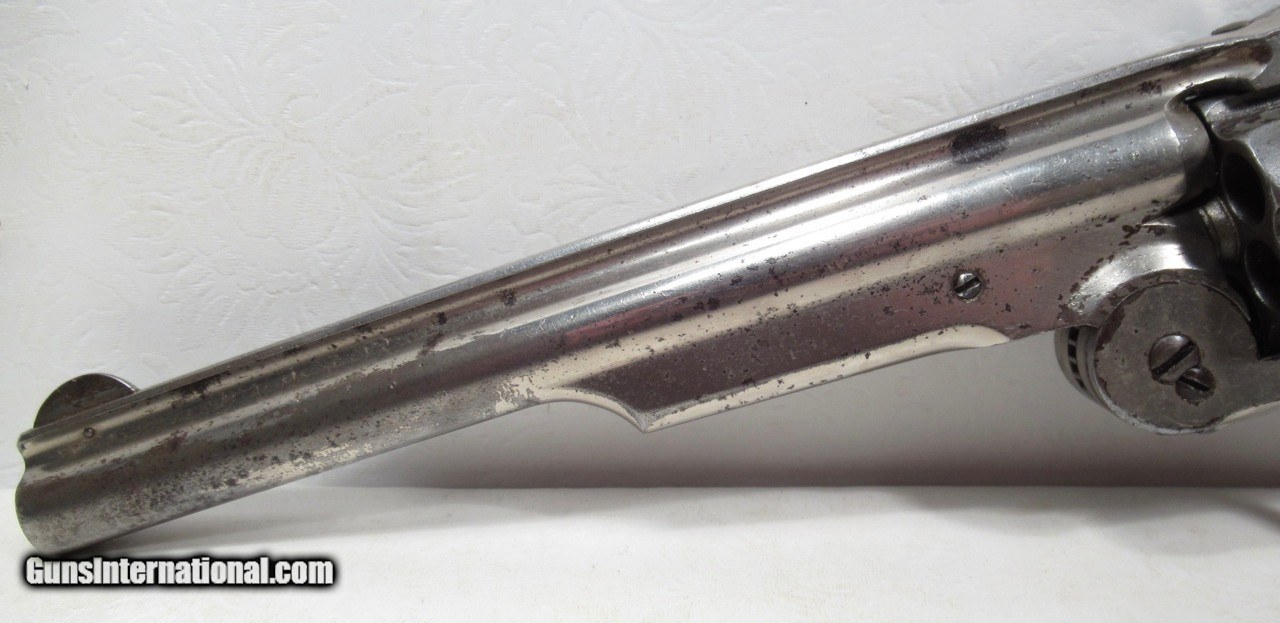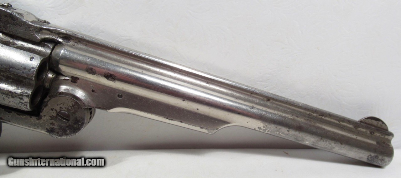 Description: Smith & Wesson Second Model American AKA Model No. 3 - 2nd Model Single Action; Serial No. 28594; Made 1872 – 1874; .44 American Caliber with 8” Barrel; Factory Nickel Finish with Lots of Factory Nickel Present; Good Original Grips Which Are Numbered to Revolver; Nice Tight Action; Good Function; Very Strong Bore with only light frosting; Way Above Average Condition for 147+ Year-Old Western Hog Leg; See All Photos for Condition; No Texts; Call (254)541-5765 or Email Only; PERSONAL PROPERTY of Harold Wieser; Price: $1,975 + $45 S&H Via USPS PRIORITY MAIL; Payment Address: Harold Wieser - 1466 U.S. Hwy 77 - Rosebud, TX 76570; SEND PAYMENTS VIA USPS PRIORITY MAIL; BEWARE of SCAMS!!! – DO NOT SEND MONEY or CORRESPONDENTS ELECTRONICALLY UNLESS YOU HAVE SPOKEN to HAROLD WIESER FIRST! 254-541-5765 SOLD Antique: Yes Manufacturer: Smith & Wesson Model: No.3 Second Serial Number: 28594 |