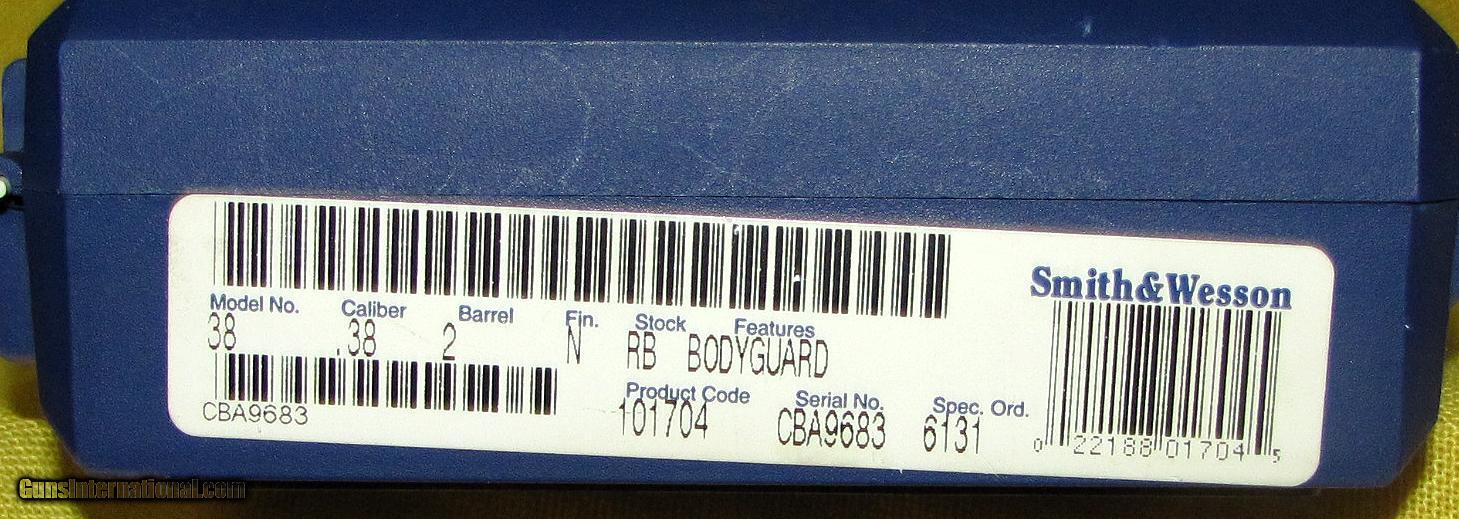 Description: S&W model 38-2 BODYGUARD (AIRWEIGHT) in .38 SPECIAL CAL., with 2" barrel. Color SILVER. S&W MODEL 38-2 BODYGUARD AIRWEIGHT, SHROUDED HAMMER, APPEARS UNFIRED IN ORIGINAL FACTORY HARD CASE WITH MANUAL AND PAPERS. OUR NEW STOCK # D29300 Condition AS NEW . Serial number CBA9683. SOLD |