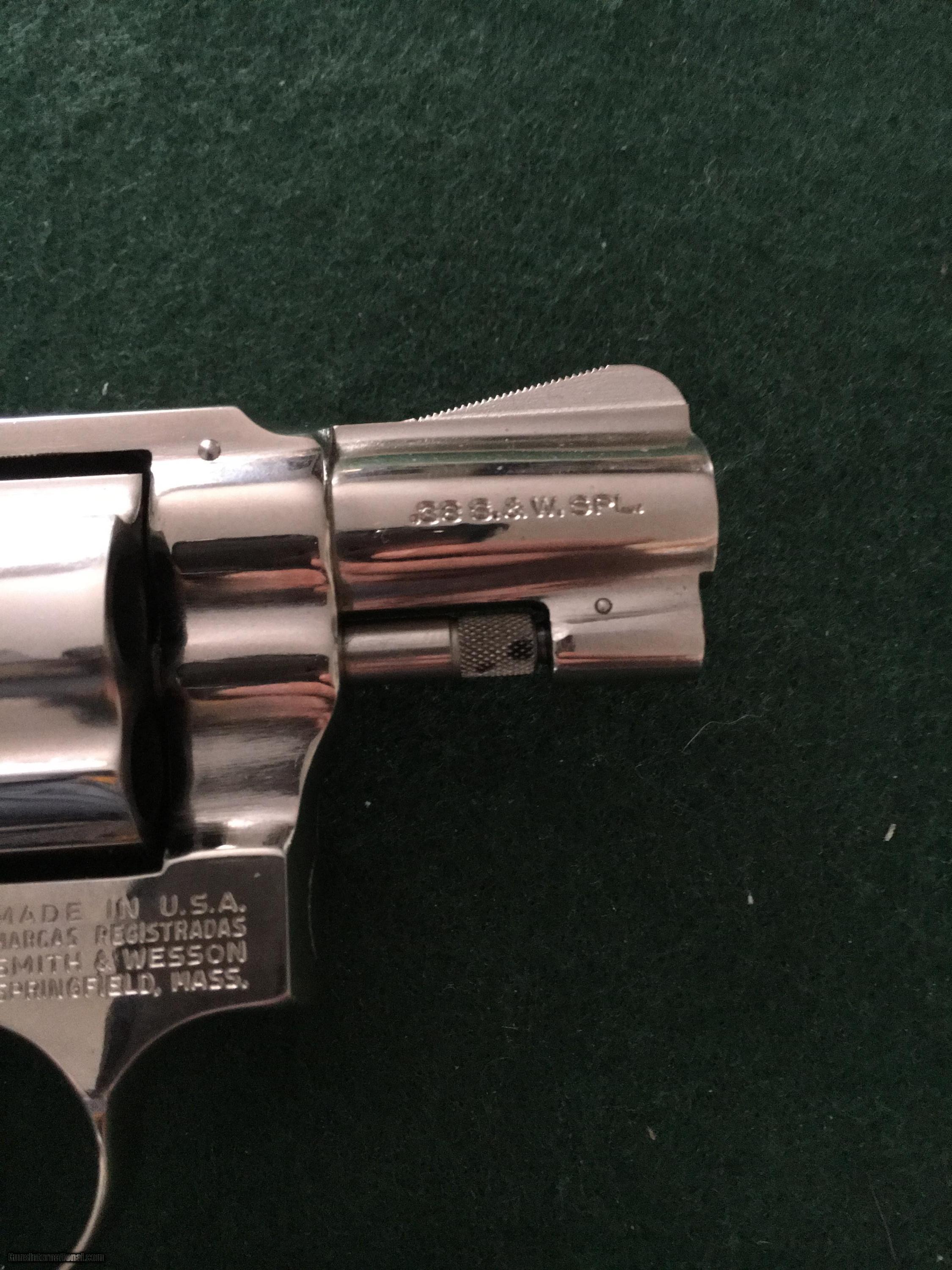 Description: 1-203-880-4549 For OFFERS or questions. Please contact us to negotiate a price. Hometown FFL Monroe, CT 06468 Much nicer looking in person. Pictures are not the best quality. Smith and Wesson Model 49 .38 spl serial # j8XXXXX Original numbered box. Extra set of black rubber grips. Papers, cleaning tool in wrapper, and extra black grips. No scratches, pitting, rust. Action tight, lines up right and barrel has nice grooves. Barrel has no pitting, rust or blemishes. It needs to be cleaned up to make it shine more than it does now. Pictures are not the best. Shipping $25 USPS Insurance extra. Accept check/charge/money order. Add 2.5% for charge use. SOLD |