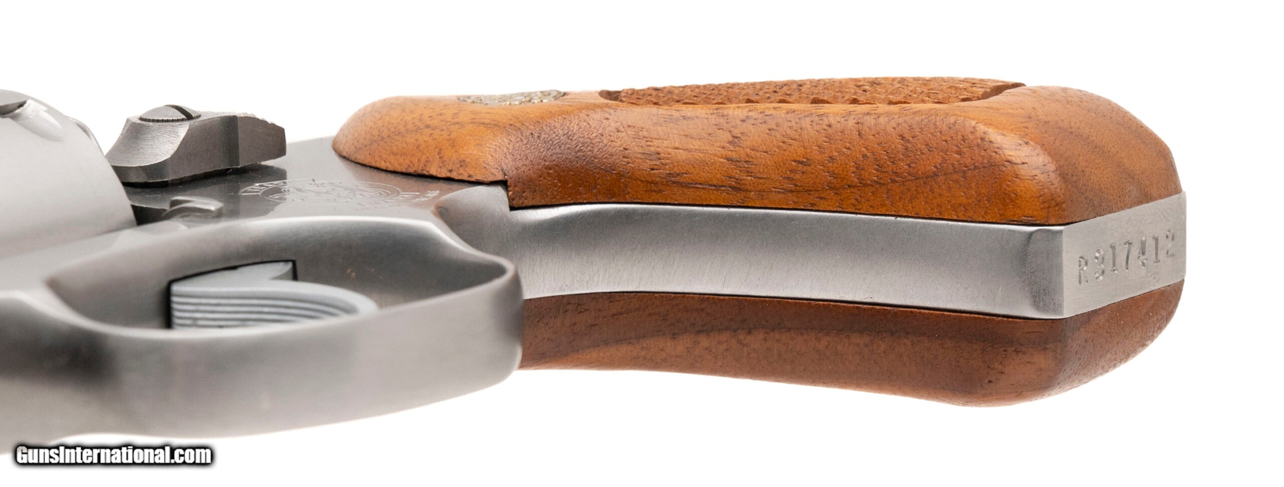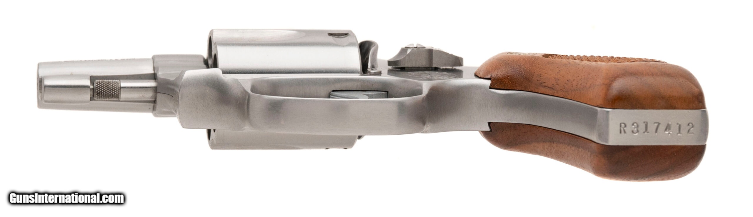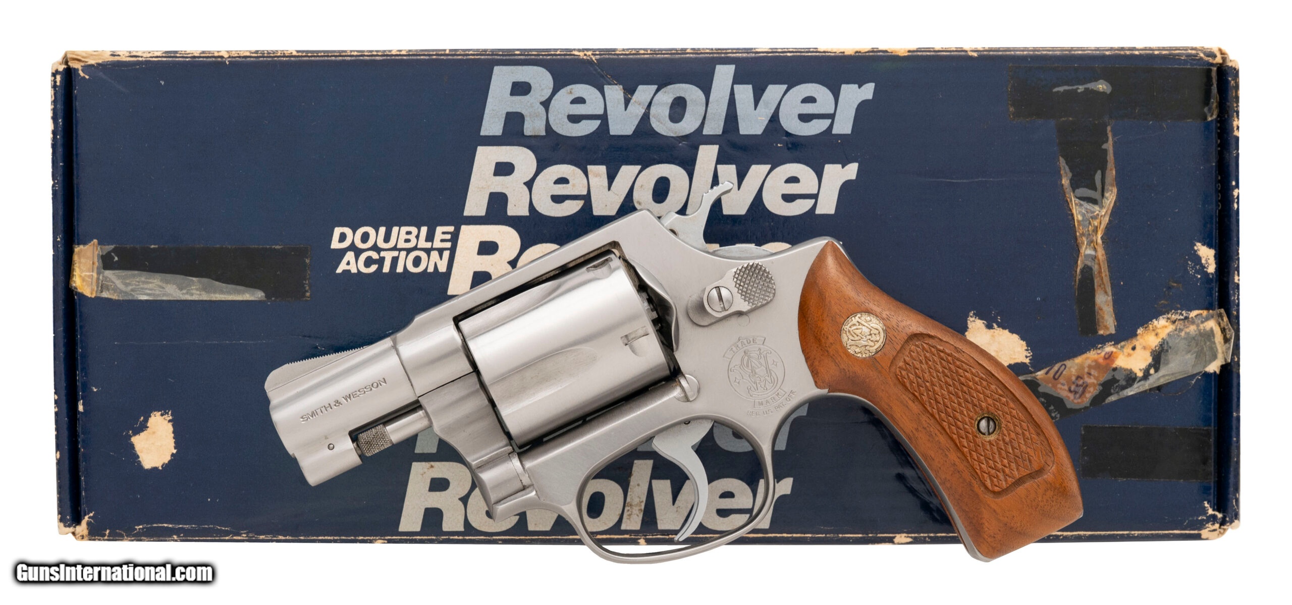 Description: "SN: R317412. 1970s Vintage, .38 Special with a 2"" pinned barrel. Stainless J-frame snubnose revolver with checkered wood grips. Overall condition is very good. Comes with box, papers, and tools. SOLD |