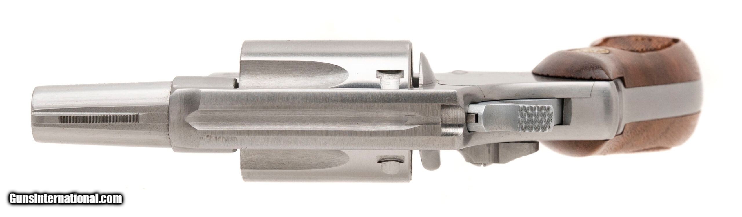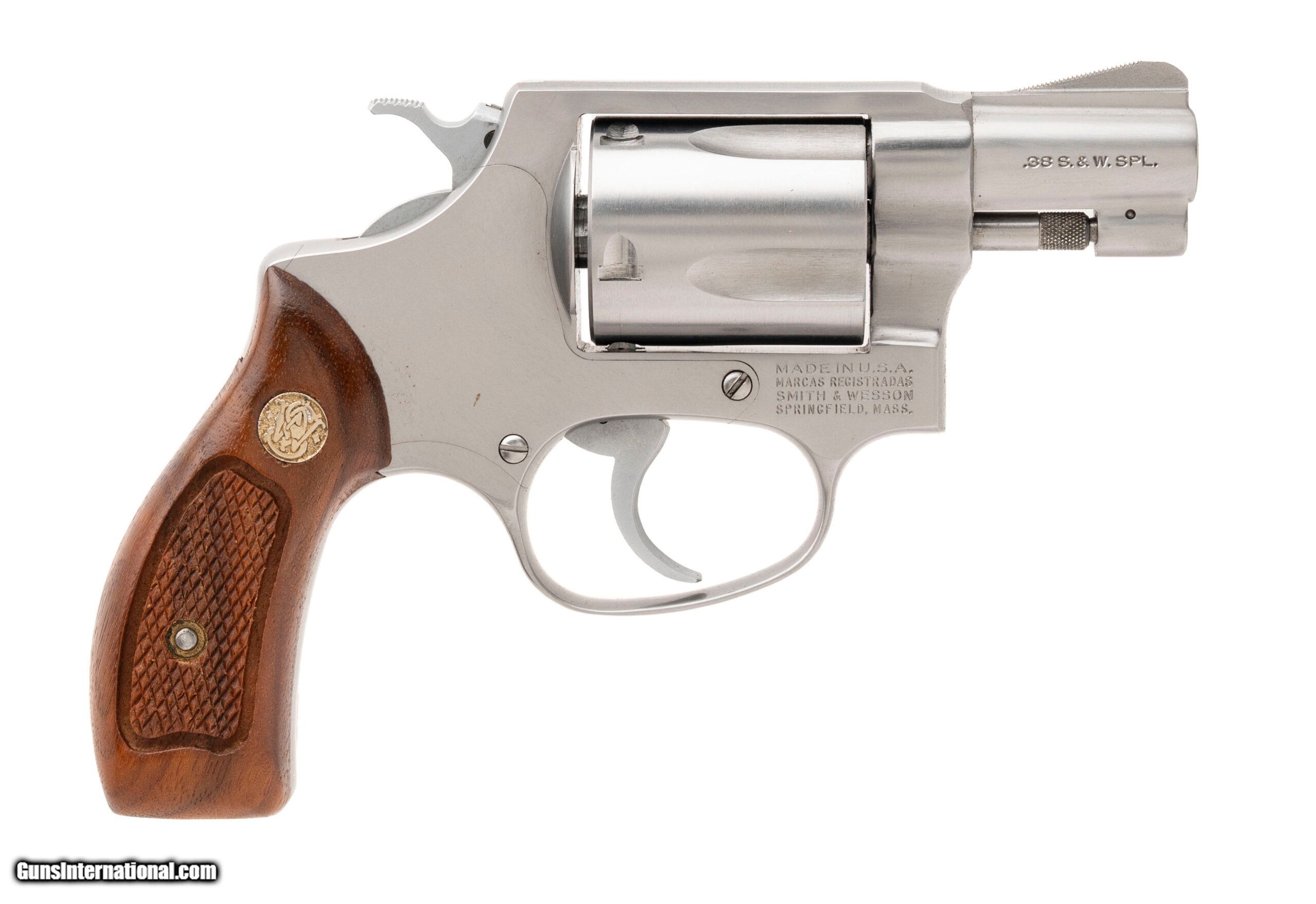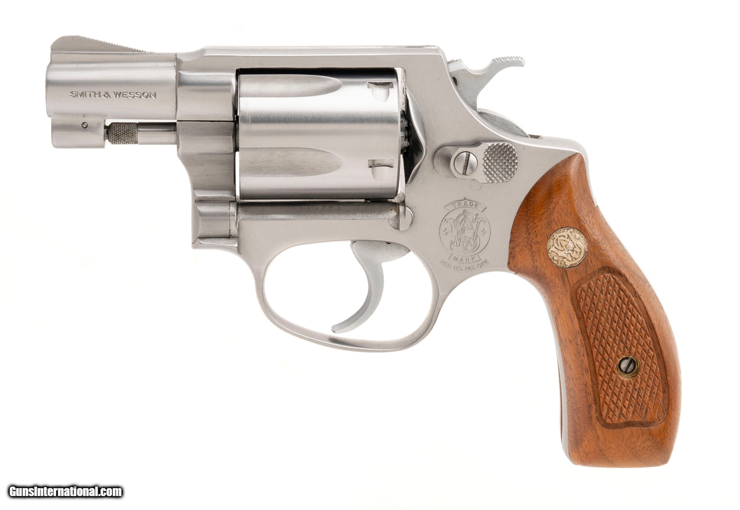 Description: "SN: R317412. 1970s Vintage, .38 Special with a 2"" pinned barrel. Stainless J-frame snubnose revolver with checkered wood grips. Overall condition is very good. Comes with box, papers, and tools. SOLD |