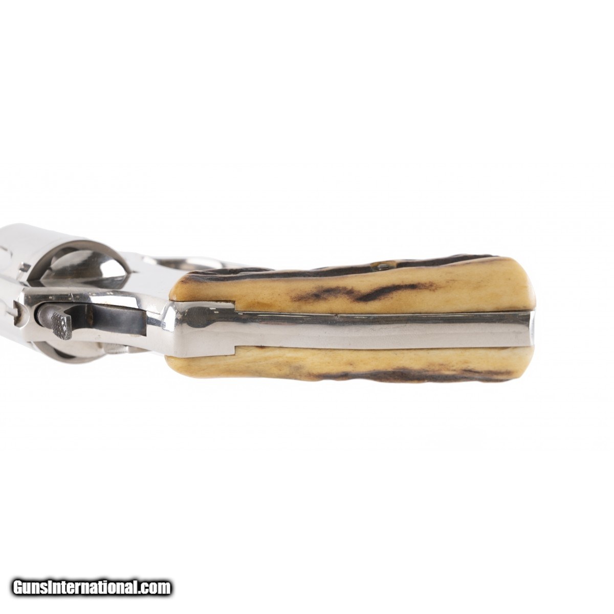 3"" nickel pre-model 36 Chiefs Special with square butt grip. 1950's vintage, in very good condition. Has a neat set of old stag grips. A scarce variation.