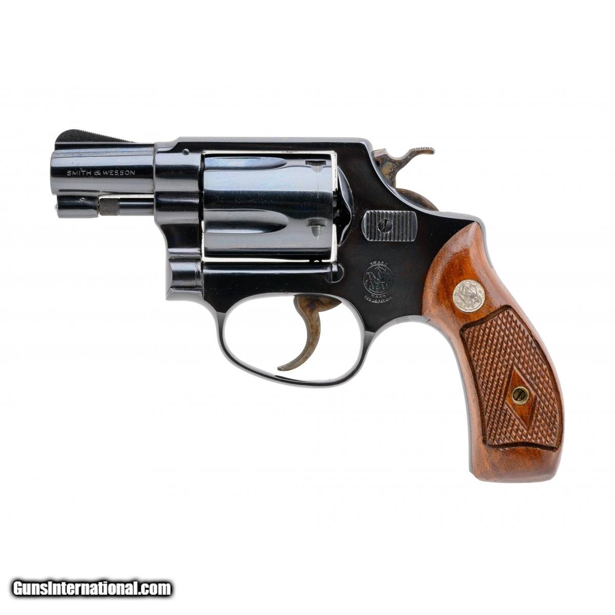 Description: " SN: 109422. Made around 1956, 38 Special with a 2"" barrel. Bore is excellent. Pre-model 36 snubnose revolver with blue finish and diamond checkered grips. Excellent condition overall. SOLD |