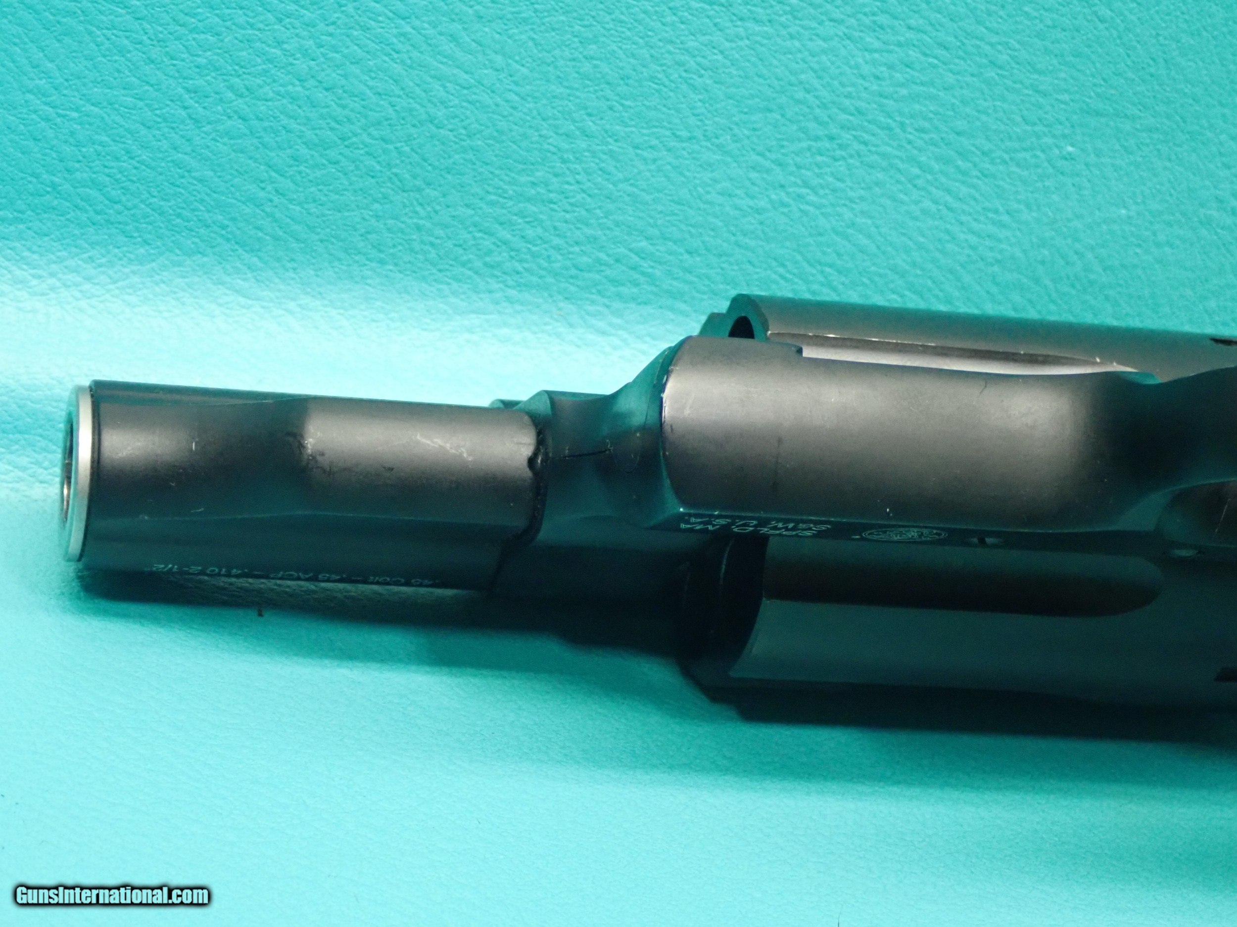 Description: Smith and Wesson Governor .45 Colt-.45acp- .410 gauge 2 1/2" 2 3/4" barrel revolver. The revolver features 6 shot capacity, tritium drift adjustable night sight, notch cut rear sight, black PVD coating, aluminum scandium alloy frame, and ball detent locking lug. The revolver is in good working order with proper timing and lockup. The finish is in nice shape with sign of light use/wear. The cylinder has shiny bore with smooth ejection. The barrel has sharp rifling with a shiny bore. Awesome home defense revolver! Please refer to the photos for the overall condition. FFL is required. Shipping $25.00 SOLD Handgun Caliber: .45 Colt, .45 ACP (.45 Auto), .410 Manufacturer: Smith and Wesson Model: Governor Serial Number: DDH2567 |