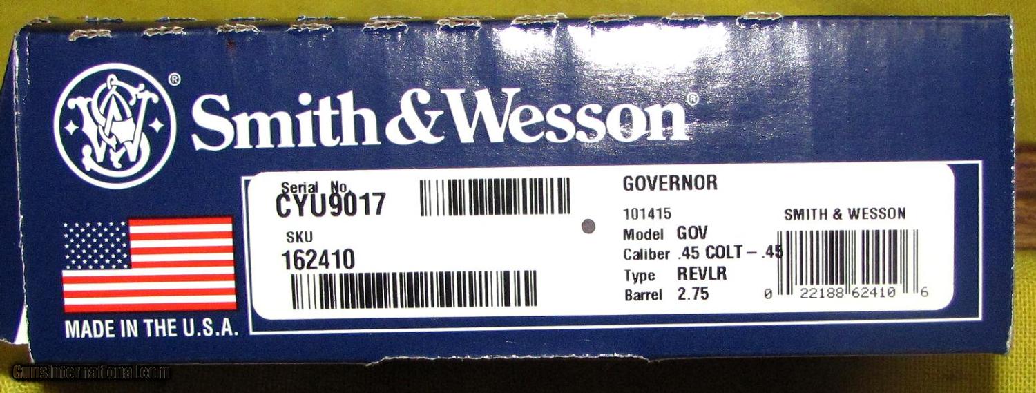 Description: S&W model GOVERNOR in .45 LONG COLT/ .410 with 2 3/4" barrel. Color BLUE. NEW S&W GOVERNOR, TAKES .45 LONG COLT AND 2 ¾” .410 SHOTGUN SHELLS, COMES WITH HALF MOON RINGS BOX AND PAPERS. OUR NEW STOCK # D31094 Condition NEW. Serial number CYU9017. SOLD |