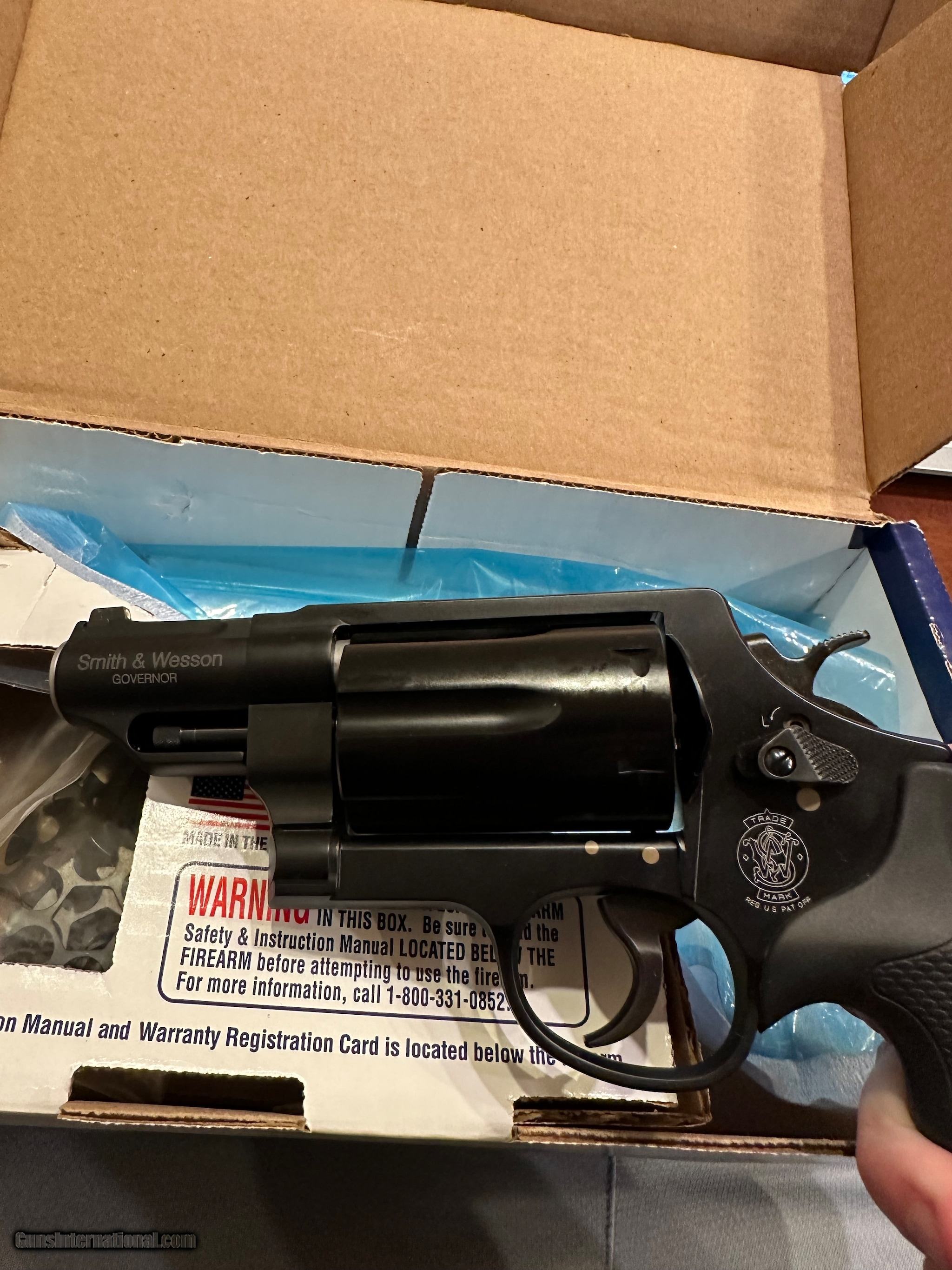 Description: Guns Listing ID: 1089751 Very lightly used Smith and Wesson Governor 45LC/45ACP/.410 2.5” with front night sight and 18 moon clips!!! This is an awesome value for this kit! Looks almost like new, been shot a couple times but not much at all. SOLD Manufacturer: SMITH & WESSON Model: GOVERNOR Caliber Info: .45 LC/.410 GA Condition: Used - Non-Certified Barrels: 2.8 BARREL |
