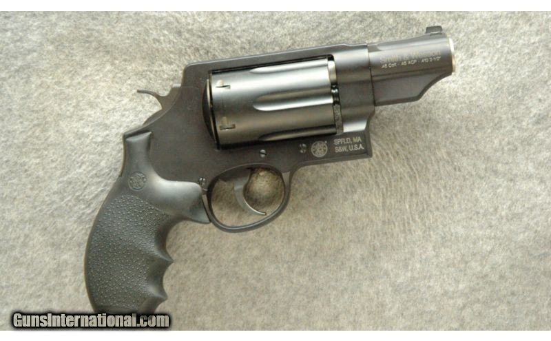 Description: SOLD Caliber Info: .45 Colt, .45 ACP and 2-1/2" .410 Shot Shells Metal Condition: Excellent, Few Light Marks from Handling and Use Bore Condition: Bright Barrels: 2 3/4 Triggers: Double And Single Action Stock: S&W Hard Rubber Grips Weight: 2 Lbs Sights: Fixed Rear, NIght Sight Insert Front Sight Extras: With hard case Item Location: La Vista, NE |