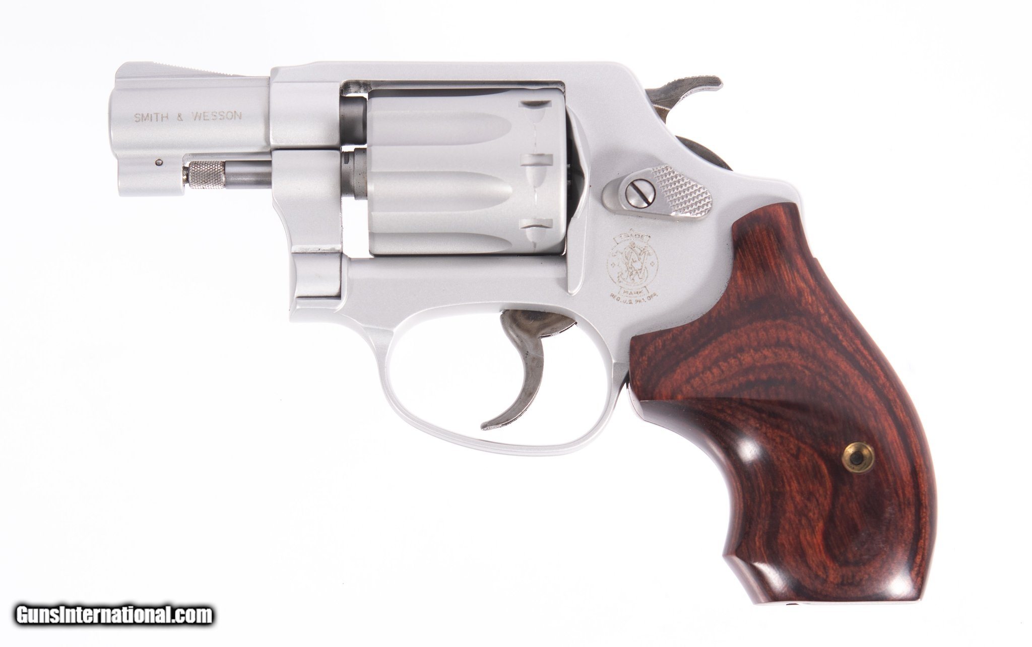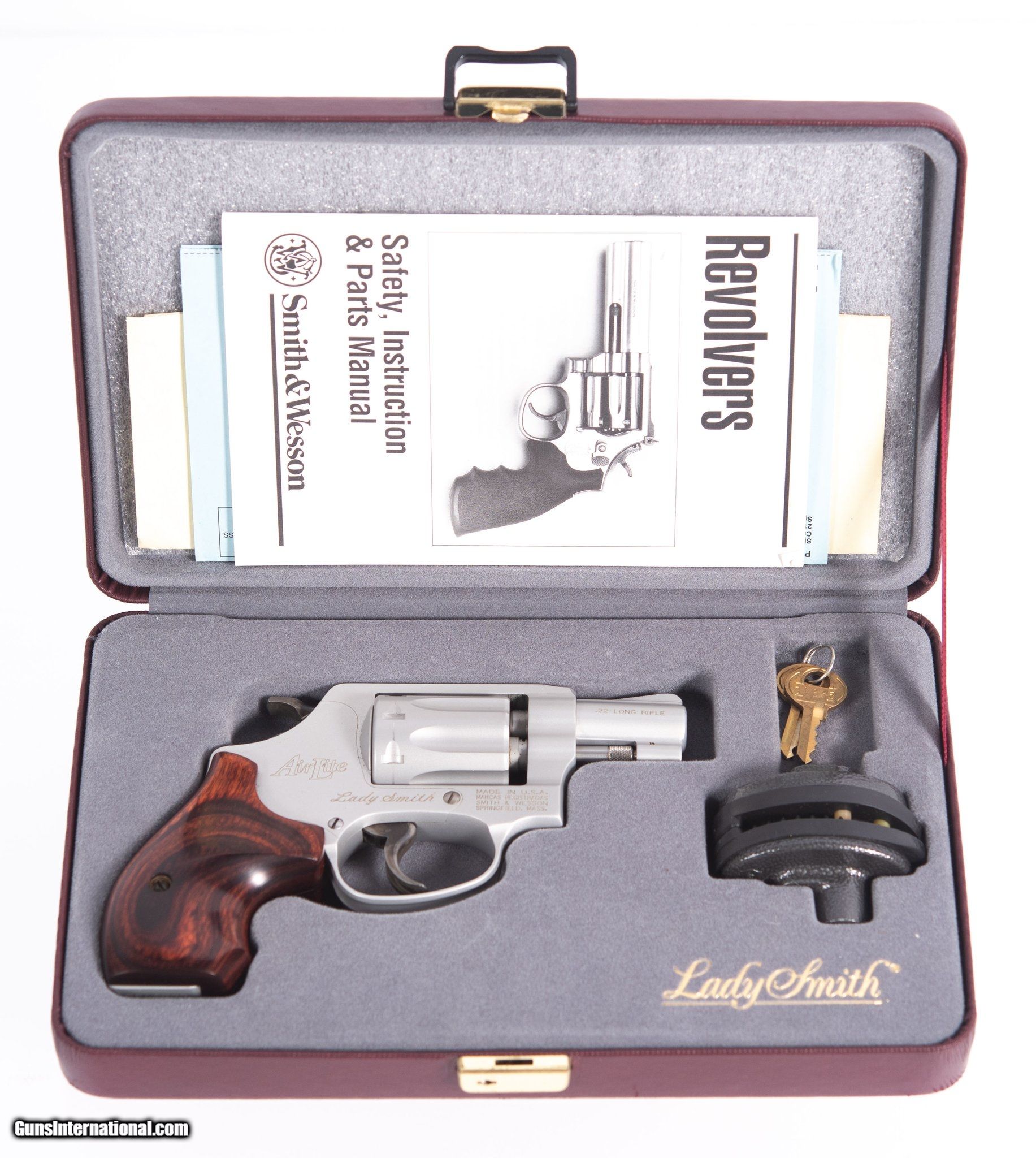 Description: Guns Listing ID: 1413592 This S&W Lady Smith revolver appears to be in functional condition and shows signs of lite use. This revolver comes with a Lady Smith leather hard case and the factory papers. Caliber: .22 Long Rifle Barrel: 2 Inches Bore Condition: Good Front Sight: Fixed Blade Rear Sight: Integral Notch Capacity: 8 Rounds Weight: 0.65 SOLD Manufacturer: SMITH & WESSON Model: Model 317 Caliber Info: .22 LR Condition: Used - Non-Certified Barrels: 2 BARREL Finish: STAINLESS/WOOD GRIPS |