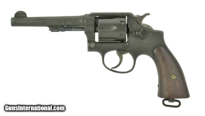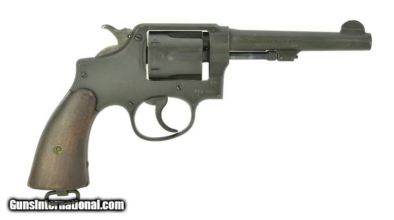Description: " Smith & Wesson M&P .38 S&W caliber revolver. Pre-war M&P Lend Lease gun, prior to Victory model. Has 5" barrel, parkerized finish and British markings. Very good plus condition with light wear. Bore and action are excellent. SOLD |