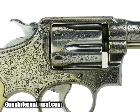 Description: " Smith & Wesson M&P .38 Special caliber revolver. Scarce factory engraved pre-war revolver. Grips have deeply and well carved initials. Gun is a very old refinish. Profusely and finely engraved, quality work probably by Young. Priced very reasonably. SOLD Curio/Relic: Yes |
