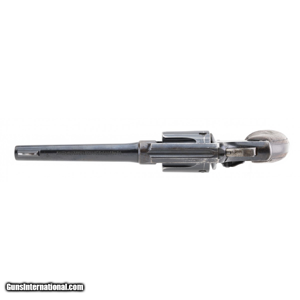 Pre-war 5"" blued model. Metal has approximately 60% original finish with patina and holster wear. Bore has strong rifling with pitting. Action works properly. Good overall condition.