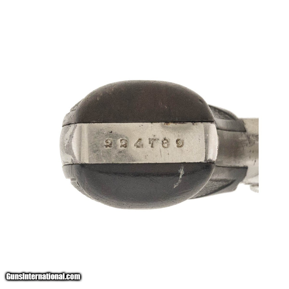 SN: 224789. Manufactured approximately 1915. Barrel is 4"". Action works properly. Bore has strong rifling with pitting. Metal has been cleaned and is forming a grey patina. Fair overall condition.