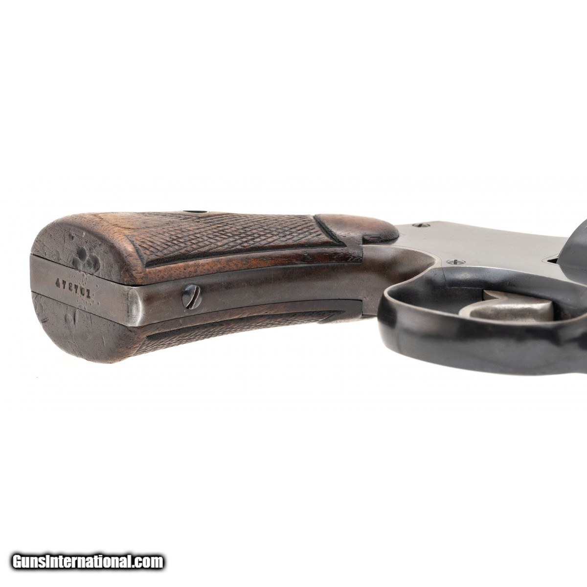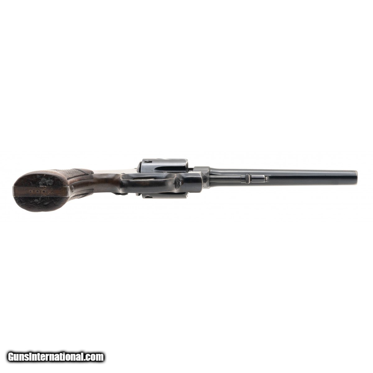 Description: " SN: 478701. 1920's production 38 Special with a 6"" barrel. Bore is very good. Blued revolver with about 80% original blue, with most of the wear on the grip frame. The hammer and trigger have excellent case colors. The grips are worn smooth on the right side, and the butt of the grip has some marks and wear. The rest of the gun is in very good condition. SOLD |
