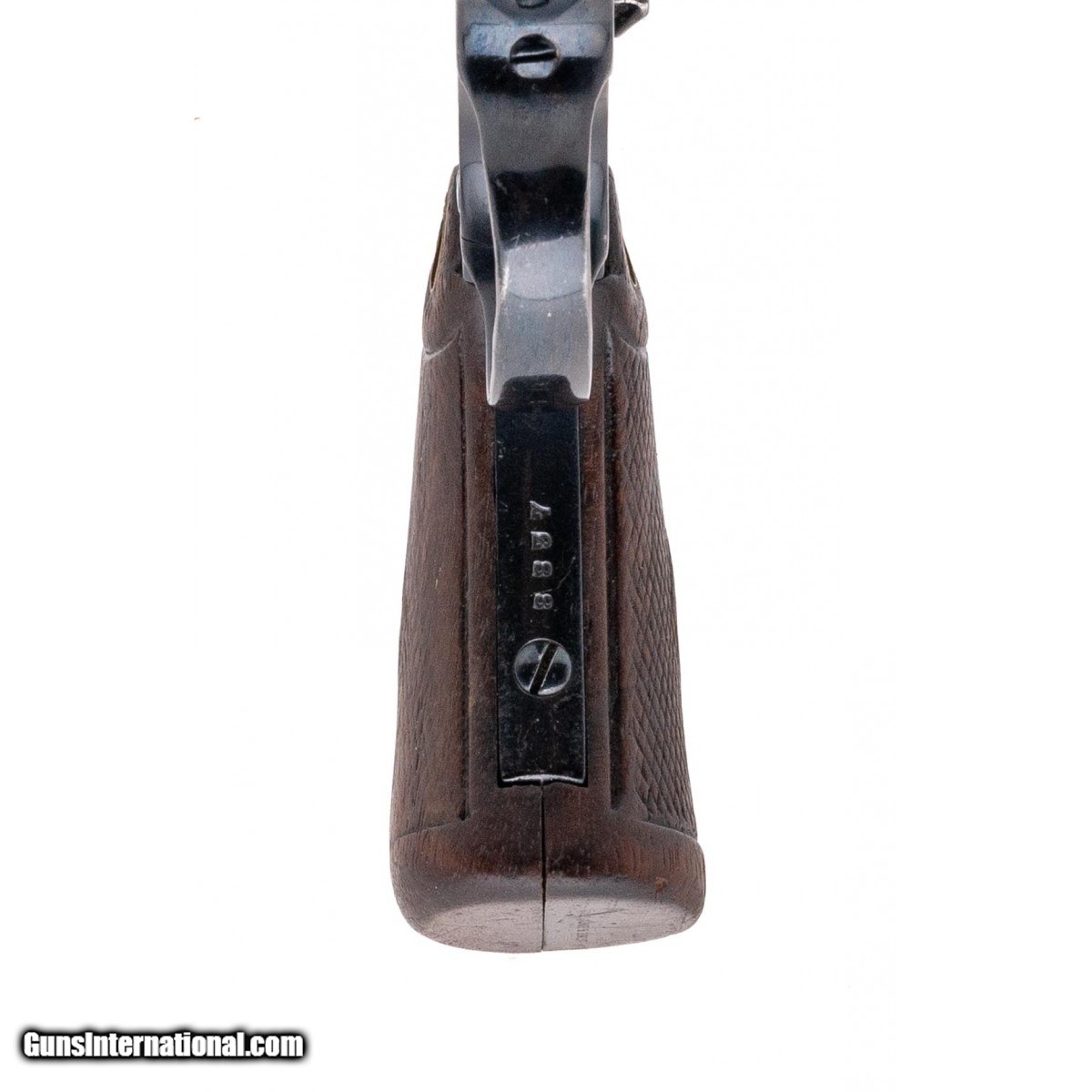 Description: " SN:8837. Made in 1917 38 S&W with a 4"" barrel. Bore is excellent. Double action revolver with 85% finish some wear on cylinder and muzzle. Original grips are in good condition with wear on checkering. Overall condition is good. SOLD |