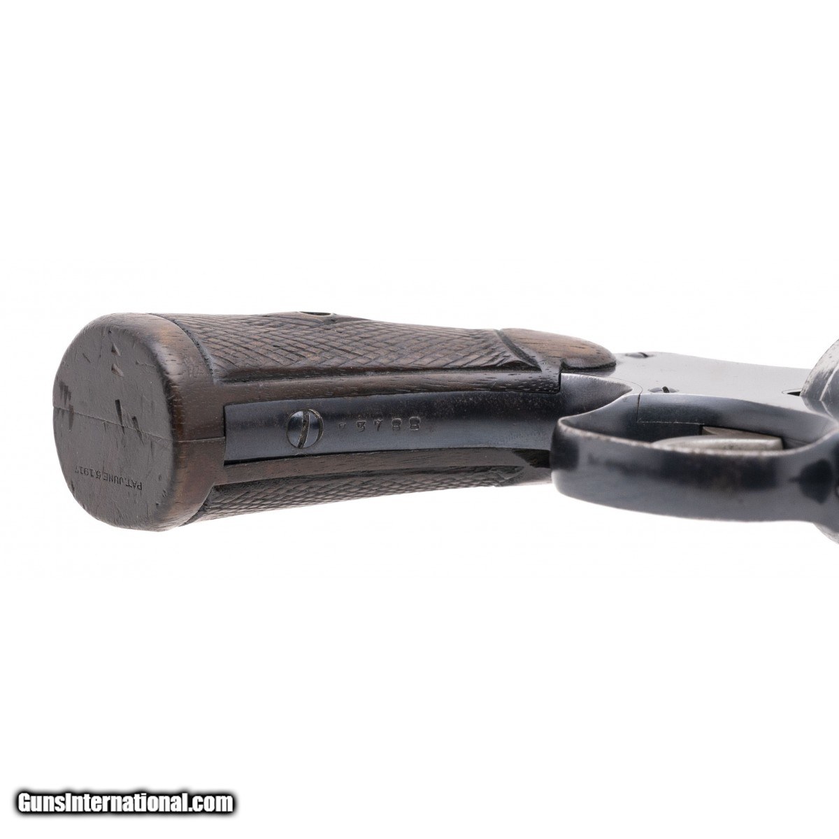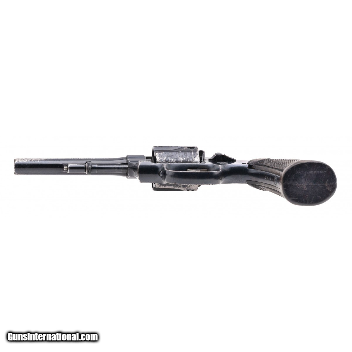 Description: " SN: 33788. 1930's vintage .38 S&W with a 4"" barrel. Bore is fair. DA revolver with about 80% blue finish. The grips are good with worn checkering. The action is stiff but functions. Overall good condition. (CONSIGNMENT) SOLD |
