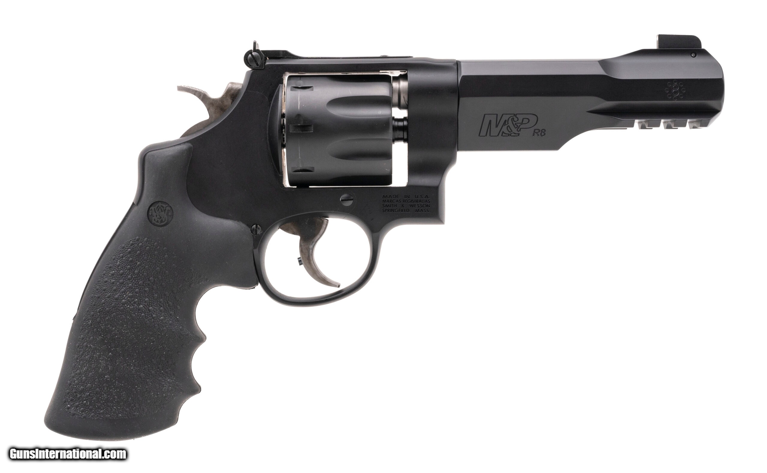 Description: "Smith & Wesson M&P R8 .357 Magnum with an 5"" barrel. Metal N-Frame Revolver. Matte Black Finish with Rubber Grips and Adjustable Sights, Accessory Rail, Performance Center Tuned Action. NEW. UPC: 022188702927. (STOCK PHOTO) SOLD |