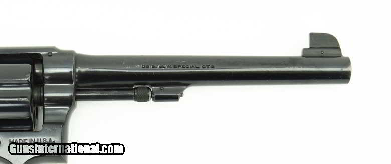 Smith & Wesson M&P .38 S&W Special caliber revolver. Pre-war Target 6” model with adjustable sights and high luster blue. Has about 96% blue, and that’s being conservative some would call it 98%. Bore is excellent, action is smooth. A great gun!