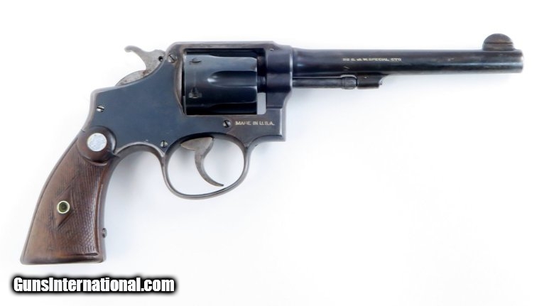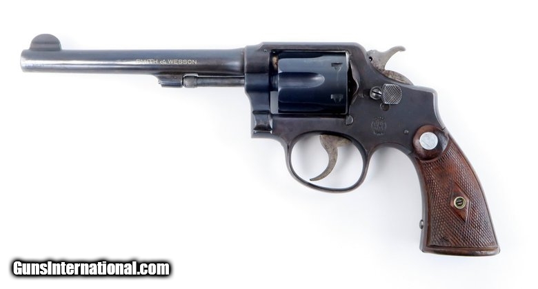 Description: Smith & Wesson Military & Police .38 Special caliber revolver. Pre-war 6” blue double action revolver. Shows some wear. Overall very good condition with excellent bore.