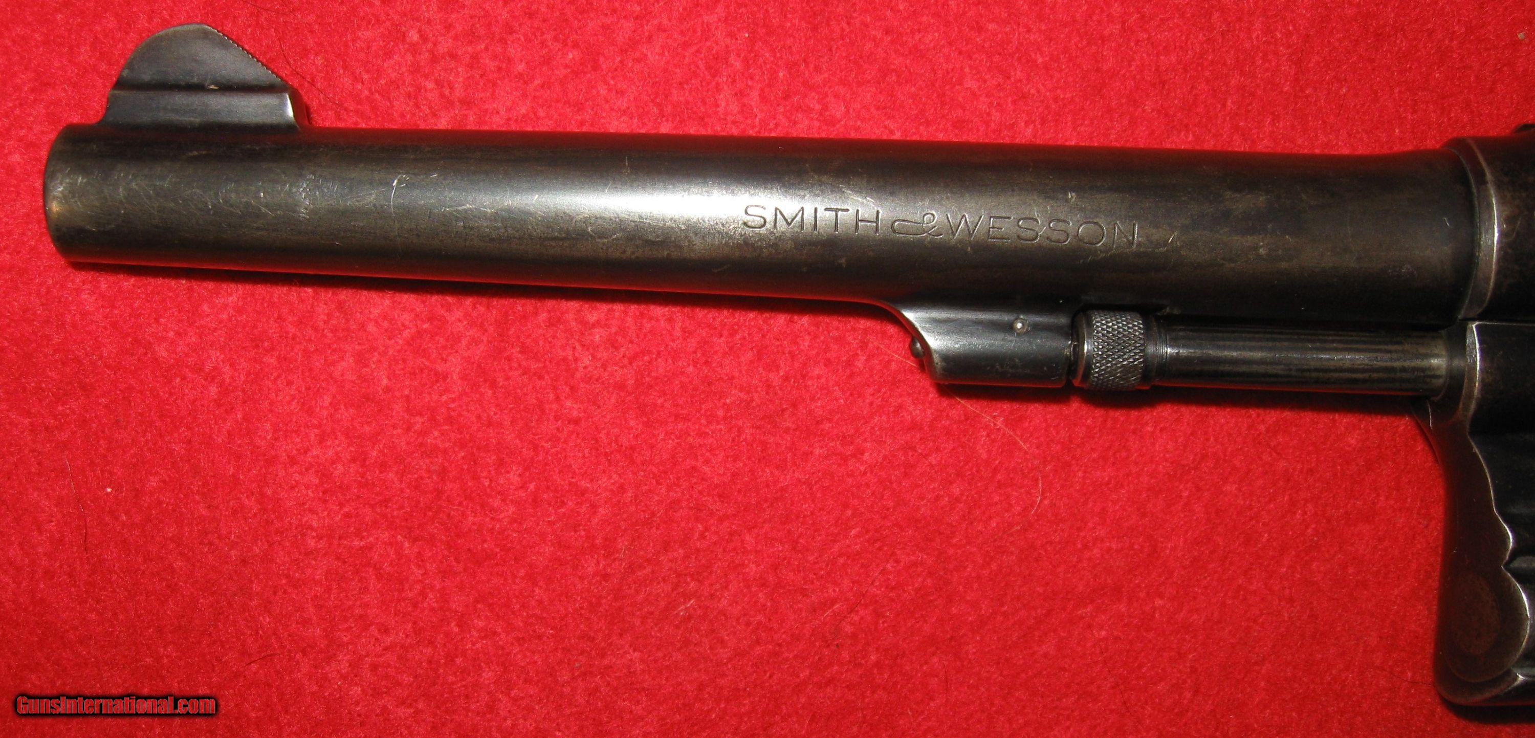 Description: THIS 38 SPECIAL S&W M&P WAS SHIPPED APRIL 2ND, 1946 TO UNION HARDWARE AND METAL COMPANY IN LOS ANGELES CA. IT IS SERIAL # S819909.THE FINISH HAS TURNED PARTIALLY BROWN AND HAS SCATTERED FINISH BLEMISHES (SEE PICTURES). GRIPS ARE WELL WORN AND NOT NUMBERED TO THE REVOLVER WITH A CHIP ON THE RIGHT GRIP (SEE PICTURES). IT HAS A 6" BARREL WITH AN EXCELLENT BORE. CYLINDERS ARE IN VERY GOOD CONDITION. THE CYLINDER HAS A SMALL AMOUNT OF PLAY AND IF COCKED BY HAND VERY SLOWLY DOESN'T QUITE LOCK UP. IF COCKED AT NORMAL SPEED LOCK UP IS FINE AND IT IS ALSO FINE IN DOUBLE ACTION. THERE IS JUST ENOUGH WEAR ON THE CYLINDER RELEASE LEVER PIN TO REQUIRE A FIRM PUSH TO OPEN CYLINDER. THE TRIGGER HAS BEEN WIDENED AND SMOOTHED BY A VERY COMPETENT GUNSMITH AS THE JOB IS VERY WELL DONE. I HAVE FIRED IT AT THE RANGE AND IT SHOOTS GREAT WITH A GREAT SINGLE AND DOUBLE ACTION TRIGGER PULL. A NICE EXAMPLE OF AN EARLY POST WAR SMITH. IT COMES WITH A VINTAGE HOLSTER. SHIPPING IS $25 MY FFL TO YOUR FFL SOLD Curio/Relic: Yes Manufacturer: SMITH & WESSON Model: .38 M&P POST WWII LONG ACTION Serial Number: S819909 Caliber Info: 38 SPECIAL Chambers: 6 Condition: VERY GOOD Metal Condition: VERY GOOD Wood Condition: GOOD-WORN Bore Condition: EXCELLENT Barrel Type: 6" ROUND Action: SINGLE/DOUBLE Triggers: ALTERED TO TARGET SHAPE Stock: WELL WORN GRIPS WITH CHIP Finish: BLUE TURNING BROWN -FINISH BLEMISHES-SEE PICTURES Sights: OPEN Manufacture Date: 4/24/46 Extras: FACTORY LETTER & VINTAGE HOLSTER |