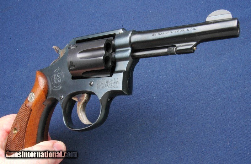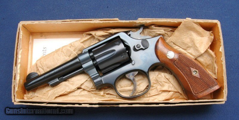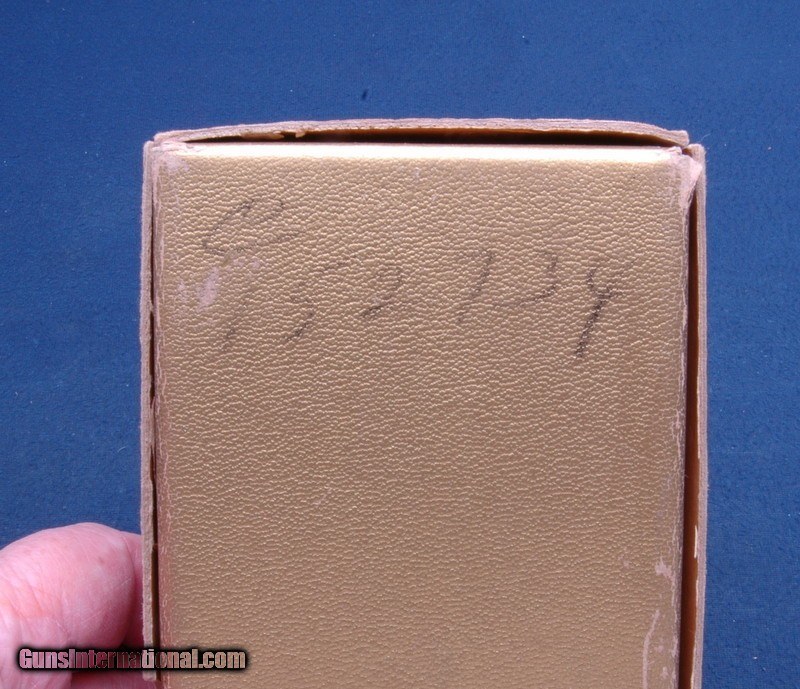 Description: So- what you see is what you get! Original box numbered to the gun, orig tissue paper and Helpful Hints brochure. Grips are numbered to the gun as well. An interesting fact- as we were looking at other listings to determine the right price, we found another one of these on . In the gold box just a few thousand numbers off. The lettering on the back of the gold box was done by the same hand as this one. So you know the box wasn't numbered by a random person with a grease pen. Totally legit, from the factory assembly line. It has been fired, but it is mint, mint, mint. $35 shipping to the lower 48, 3% surcharge for using a CC. If you choose to pay with a personal check, we will hold the item for up to 10 days to make sure that it clears. Please expedite such pymts as we will hold an item on your word for 5 days. SOLD Handgun Caliber: .38 Special |