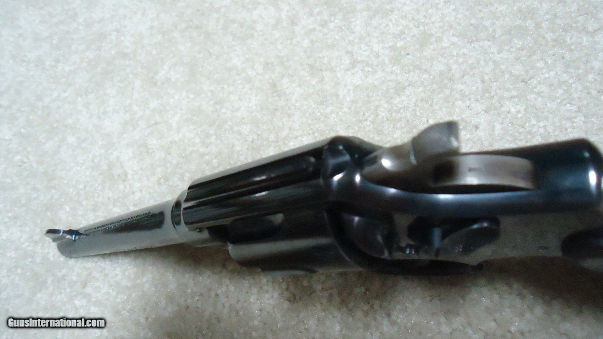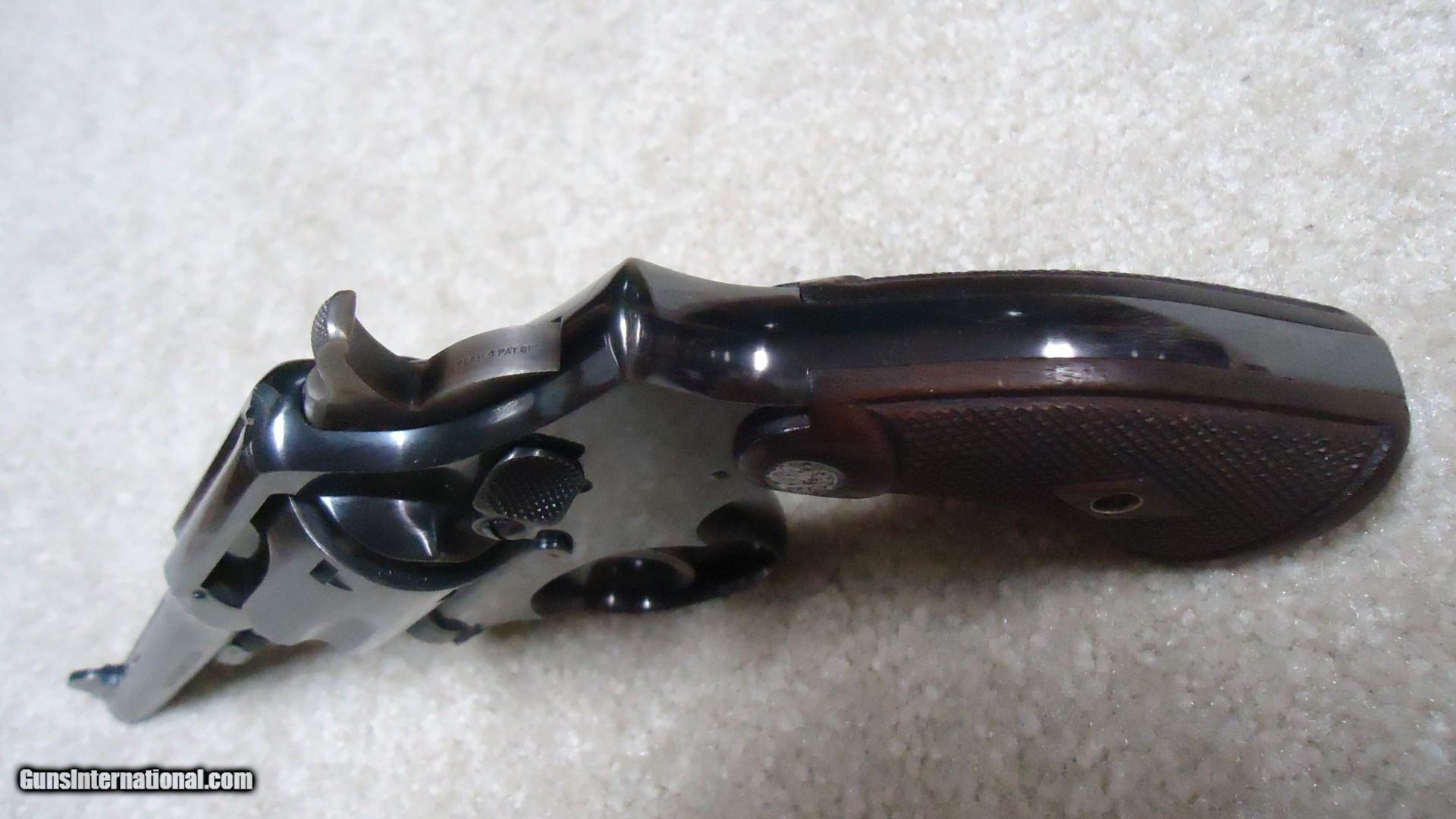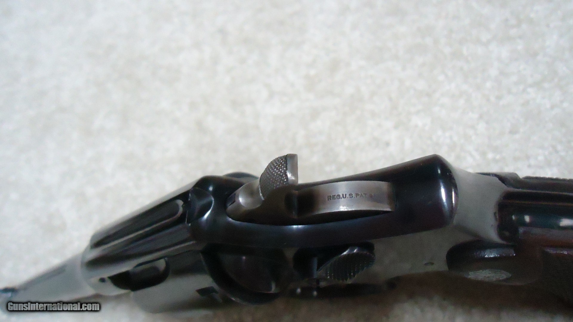 Description: NEAR MINT CONDITION PRE-WAR CLASSIC .38 HAND EJECTOR M&P 1905 4TH CHANGE, 5" BARREL, #678XXX. This was the bread & butter model for S&W and was found on the hips of most law enforcement officers across the country. In fact, it was the standard for just about everyone when the .38 Special was king. Serial numbers ended at 758296 in 1942 at the beginning of World War II. Judging from that, I would assume this one was made 1939-1940. As with all of these Great Depression Era S&Ws, fit and finish was impeccable. This one retains about all the high polish blue with perhaps a small spot of barely thinning on the back strap that you have to look carefully to see. The front face of the cylinder shows all the blue indicating this revolver was probably never fired. All crisp markings and excellent matching numbered diamond checkered medallion grips. Exc. case color on the hammer and trigger, perfect inside, barely a cylinder line. Just needs a box. This kind of craftsmanship will never be made again. These were made in large numbers with different barrel lengths and nickel or blue finish, but finding s blue example in this condition is now difficult. SOLD Curio/Relic: Yes Handgun Caliber: .38 Special Manufacturer: SMITH & WESSON Model: 38 H-E 1905 Serial Number: 678XXX Barrel Length: 5 Condition: NEAR NEW Bore Condition: EXCELLENT |